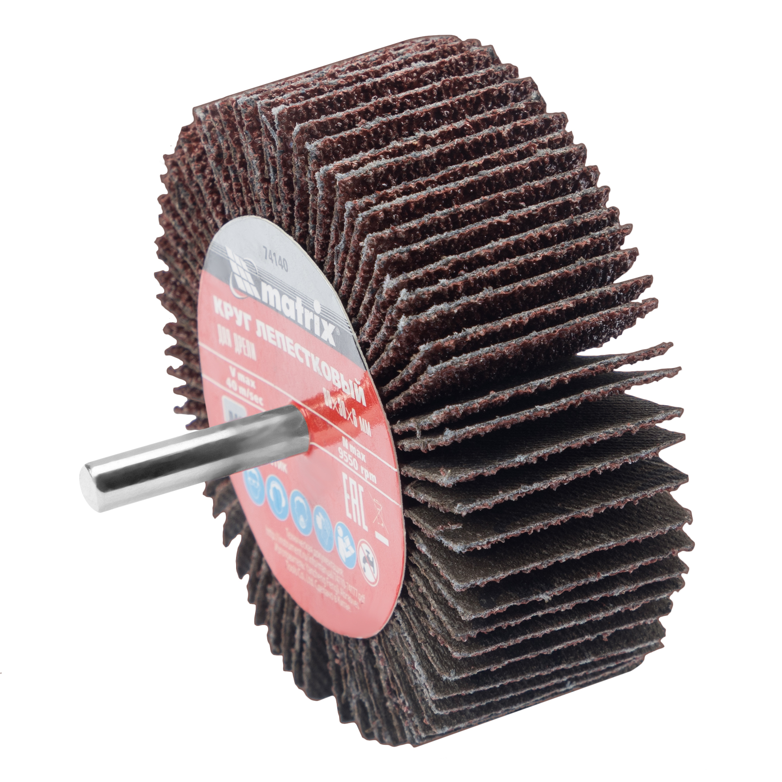 Лепестковый круг Matrix 74140 размером 80 х 30 х 6 мм, с зернистостью P 40, — оснастка для дрелей и прямых шлифовальных машинок с посадочным гнездом 6 мм, рассчитанная на скорость до 6000 об/мин. Круг применяется для грубой обработки древесины, металла и других материалов. Крупнозернистый абразив P 40 эффективно снимает толстые слои краски и ржавчины, зачищает сварные швы, удаляет заусенцы.
