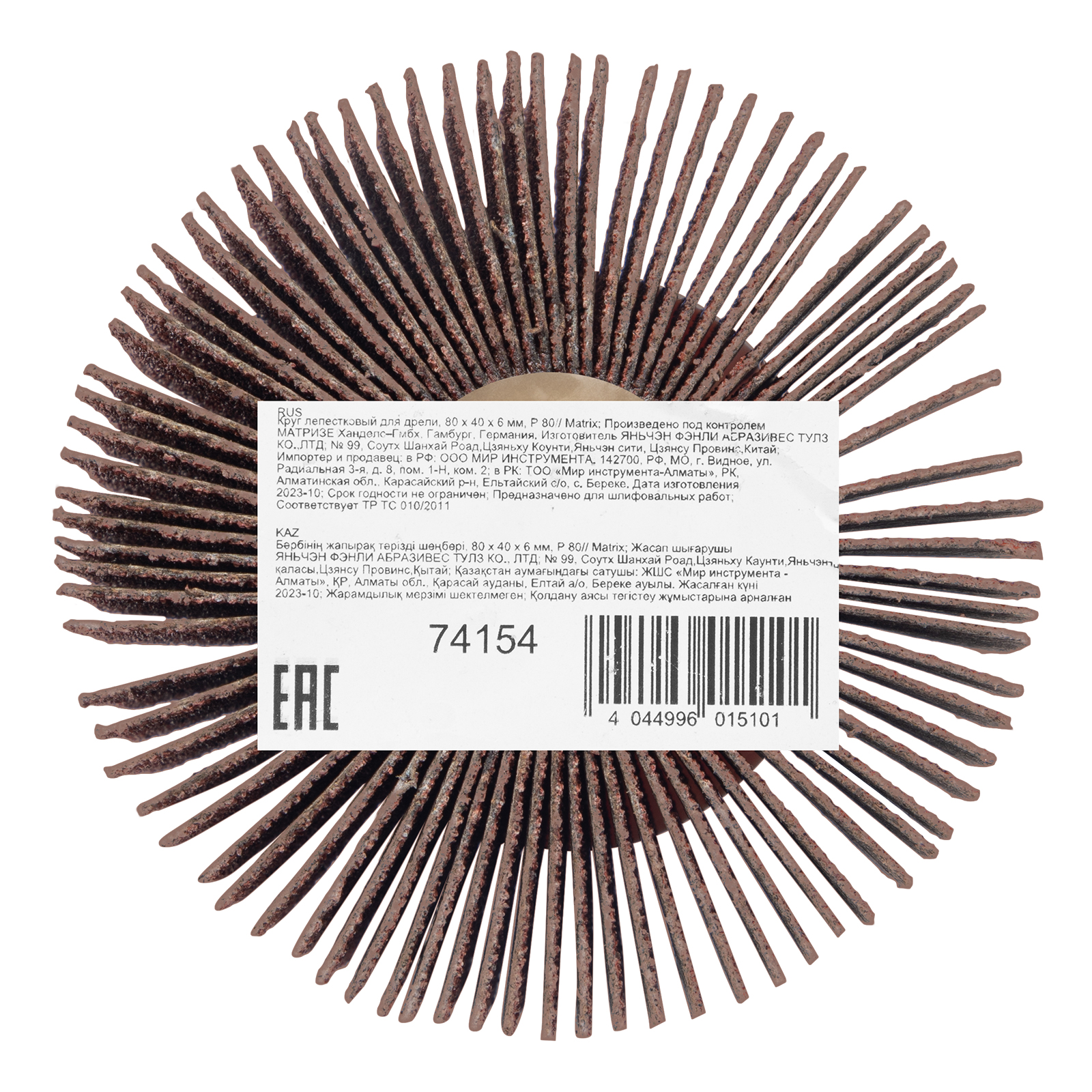 Лепестковый круг Matrix 74154 размером 80 х 40 х 6 мм, с зернистостью P 80, совместим с дрелями и прямыми шлифовальными машинами с посадочным диаметром 6 мм и максимальной скоростью вращения 6000 об/мин. Предназначен для радиального шлифования внутренних и наружных поверхностей. Абразив P 80 позволяет проводить промежуточную обработку древесины и металла — удалять заусенцы, слои лака, ржавчины или краски, зачищать сварные швы, готовить поверхности к чистовому шлифованию.