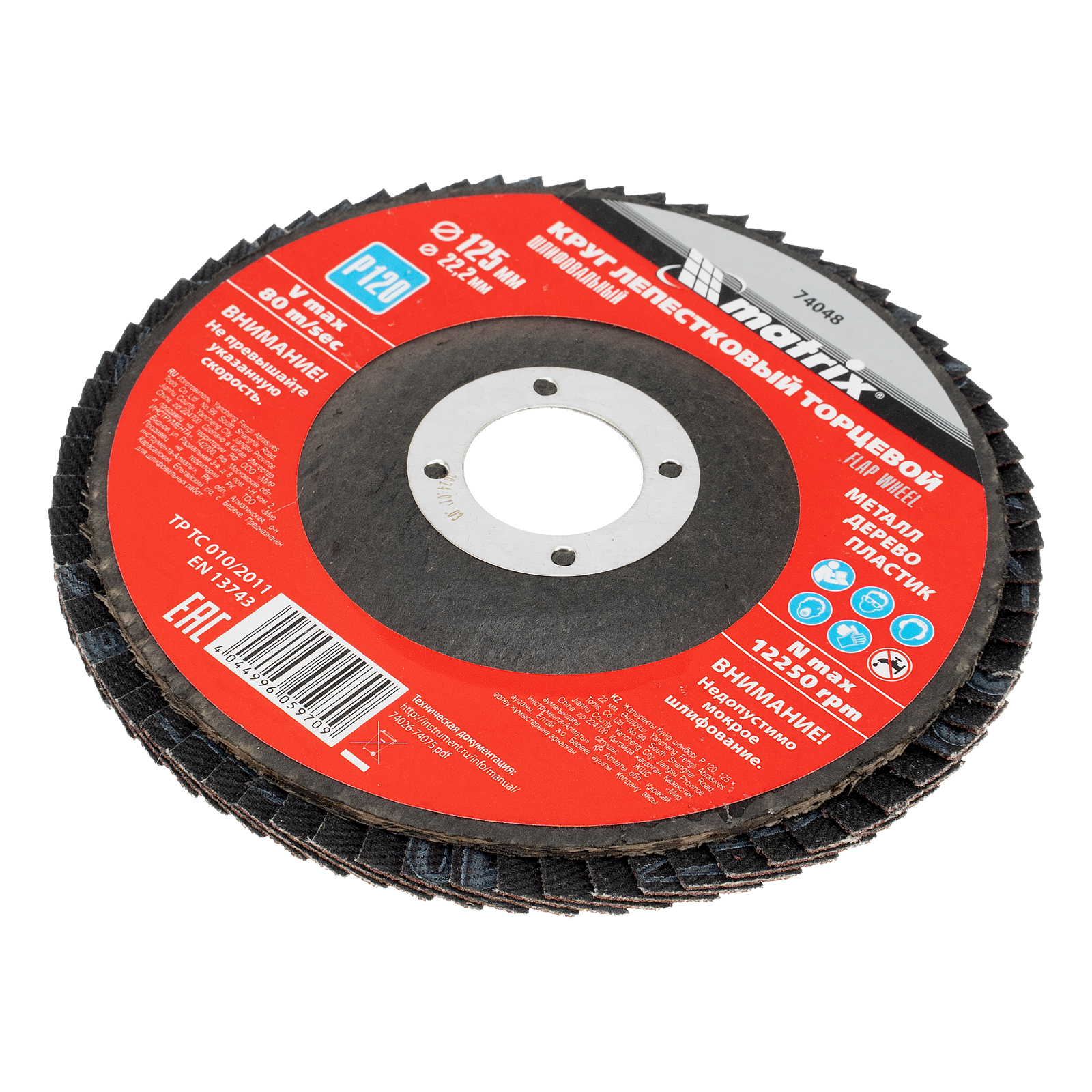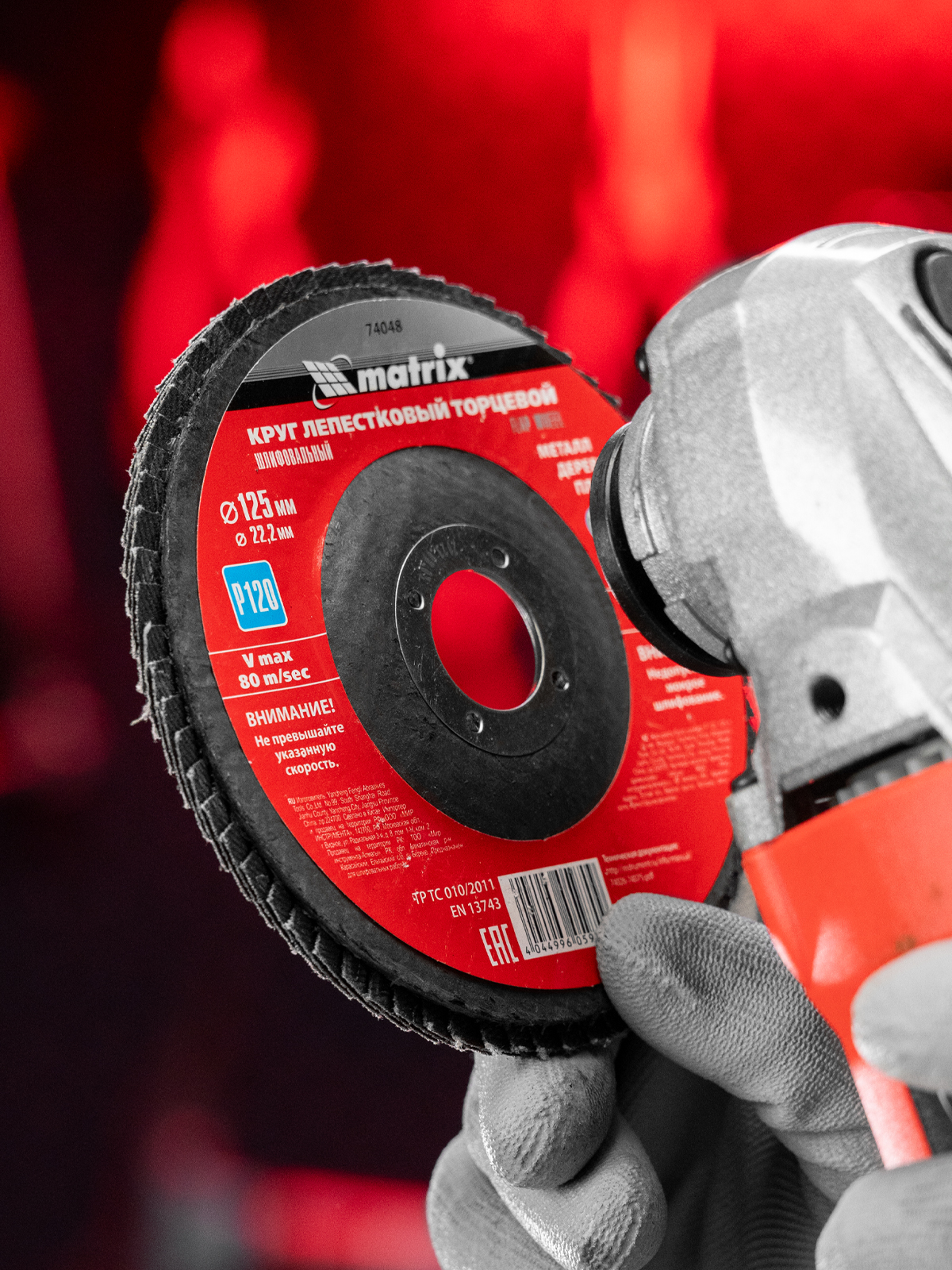 Круг лепестковый торцевой Matrix 74048 зернистостью Р120 и диаметром 125 мм за счет своей универсальности может использоваться для чистовой обработки практически любых поверхностей: деревянных, металлических, пластмассовых. Устанавливается на углошлифовальную машину с посадочным диаметром 22,2 мм. Круг эффективен для удаления небольших дефектов с поверхностей, зачистки сварных швов, снятия тонкого слоя ЛКМ, ржавчины и т.д.