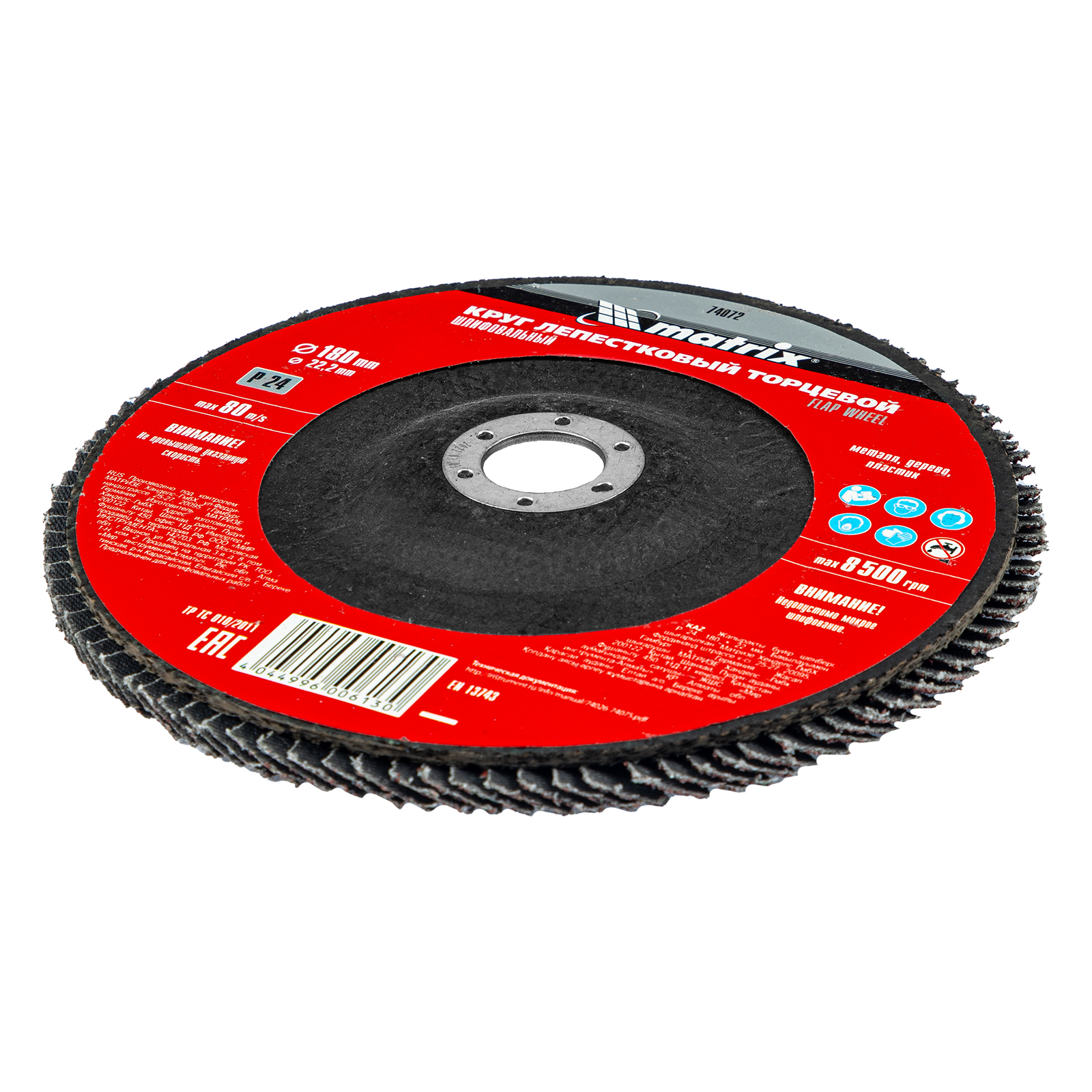 Круг лепестковый торцевой Matrix 74072 зернистостью Р24 и диаметром 180 мм за счет своей универсальности может использоваться для грубой (черновой) обработки практически любых поверхностей: деревянных, металлических, пластмассовых. Устанавливается на углошлифовальную машину с посадочным диаметром 22,2 мм. Эффективно удаляет дефекты с поверхностей, зачищает сварные швы, снимает толстый слой ЛКМ, ржавчины и т.д.
