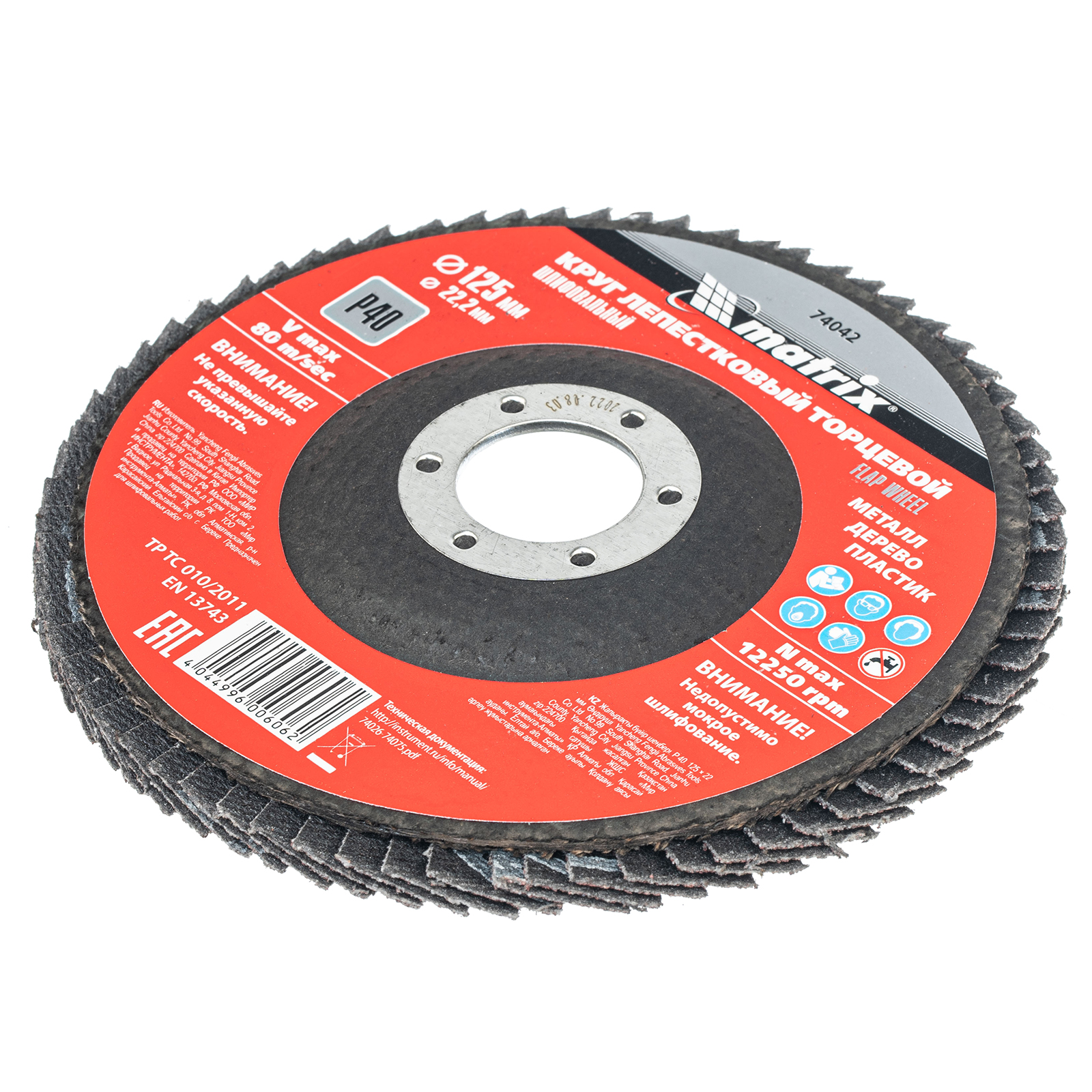 Набор Matrix 740424 включает в себя 10 лепестковых торцевых кругов зернистостью P 40 и размером 125 х 22,2 мм. Универсальные круги используются в качестве оснастки для УШМ (болгарок) с посадочным диаметром 22,2 мм. Набор оптимально подходит для грубой (черновой) обработки деревянных, металлических, пластмассовых поверхностей: удаления различных дефектов, зачистки сварных швов, снятия толстого слоя лака, краски, ржавчины и заусенцев.
