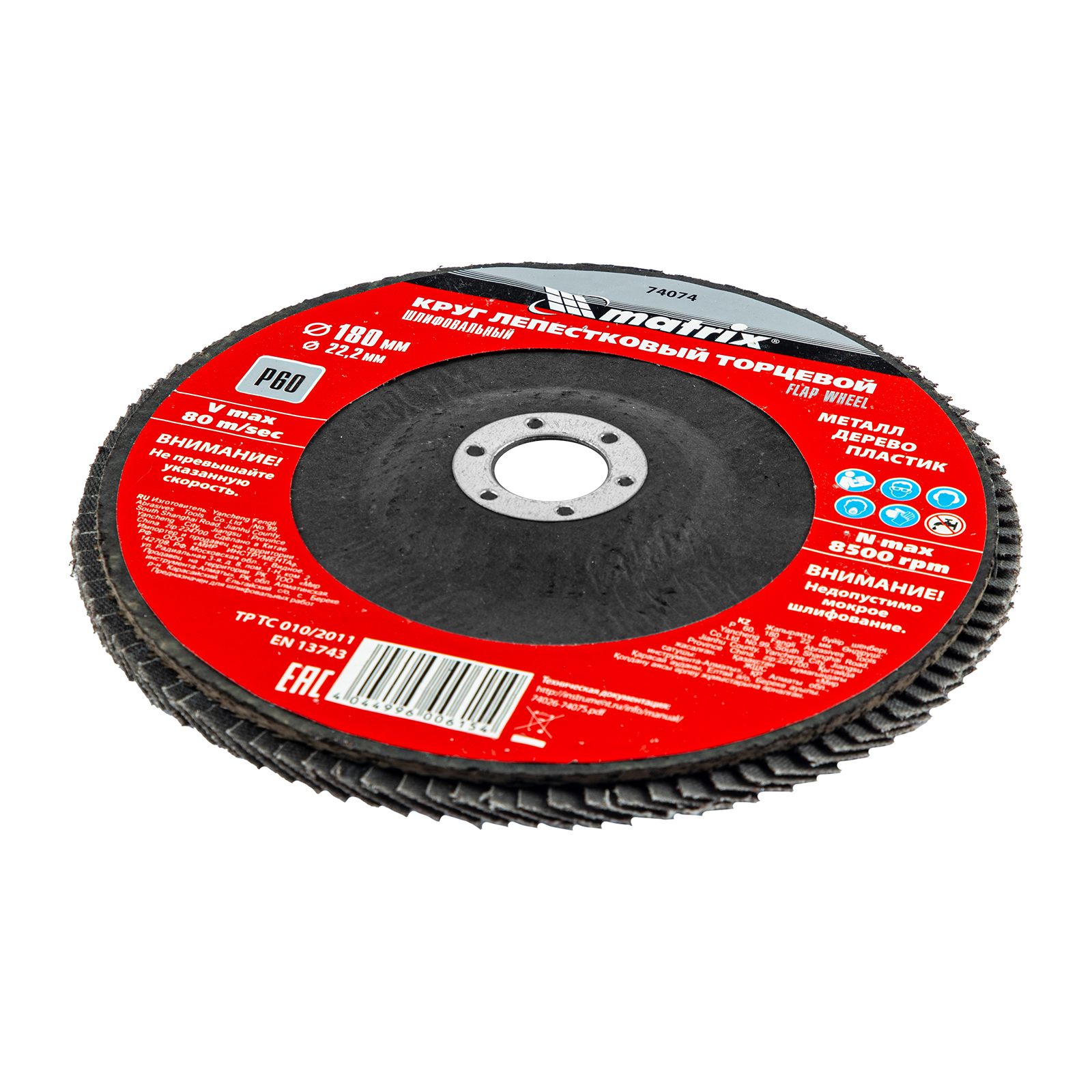 Круг лепестковый торцевой Matrix 74074 зернистостью Р60 и диаметром 180 мм за счет своей универсальности может использоваться для грубой (черновой) обработки практически любых поверхностей: деревянных, металлических, пластмассовых. Устанавливается на углошлифовальную машину с посадочным диаметром 22,2 мм. Эффективно удаляет дефекты с поверхностей, зачищает сварные швы, снимает толстый слой ЛКМ, ржавчины и т.д.