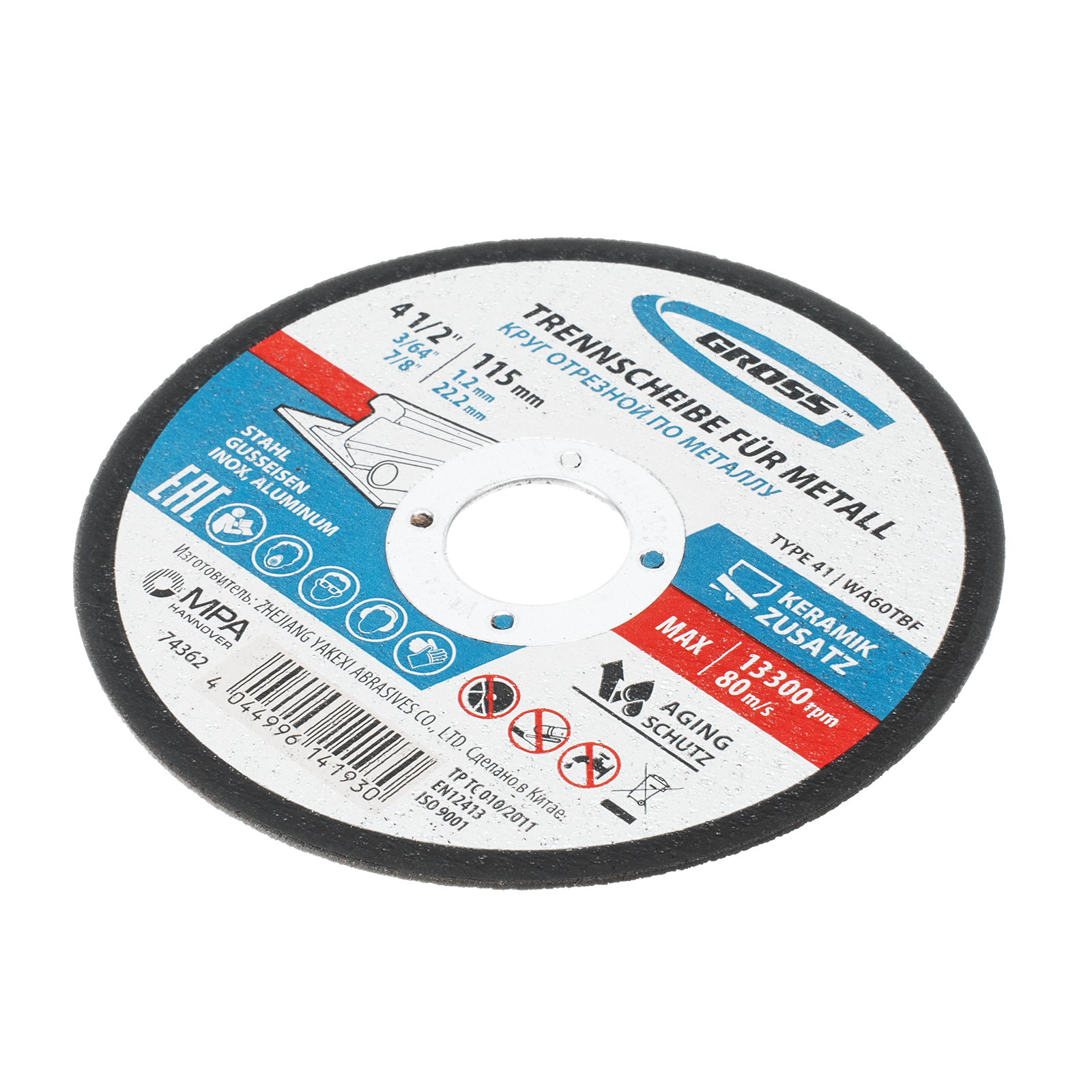 Отрезной круг по металлу Gross SWA60TBF 74362 размером 115 х 1,2 х 22,2 мм рассчитан на интенсивный рез углеродистой и нержавеющей стали, алюминия, чугуна. Устанавливается на УШМ соответствующего типоразмера и не требует частой замены, подходит для профессиональной эксплуатации с высокими нагрузками.