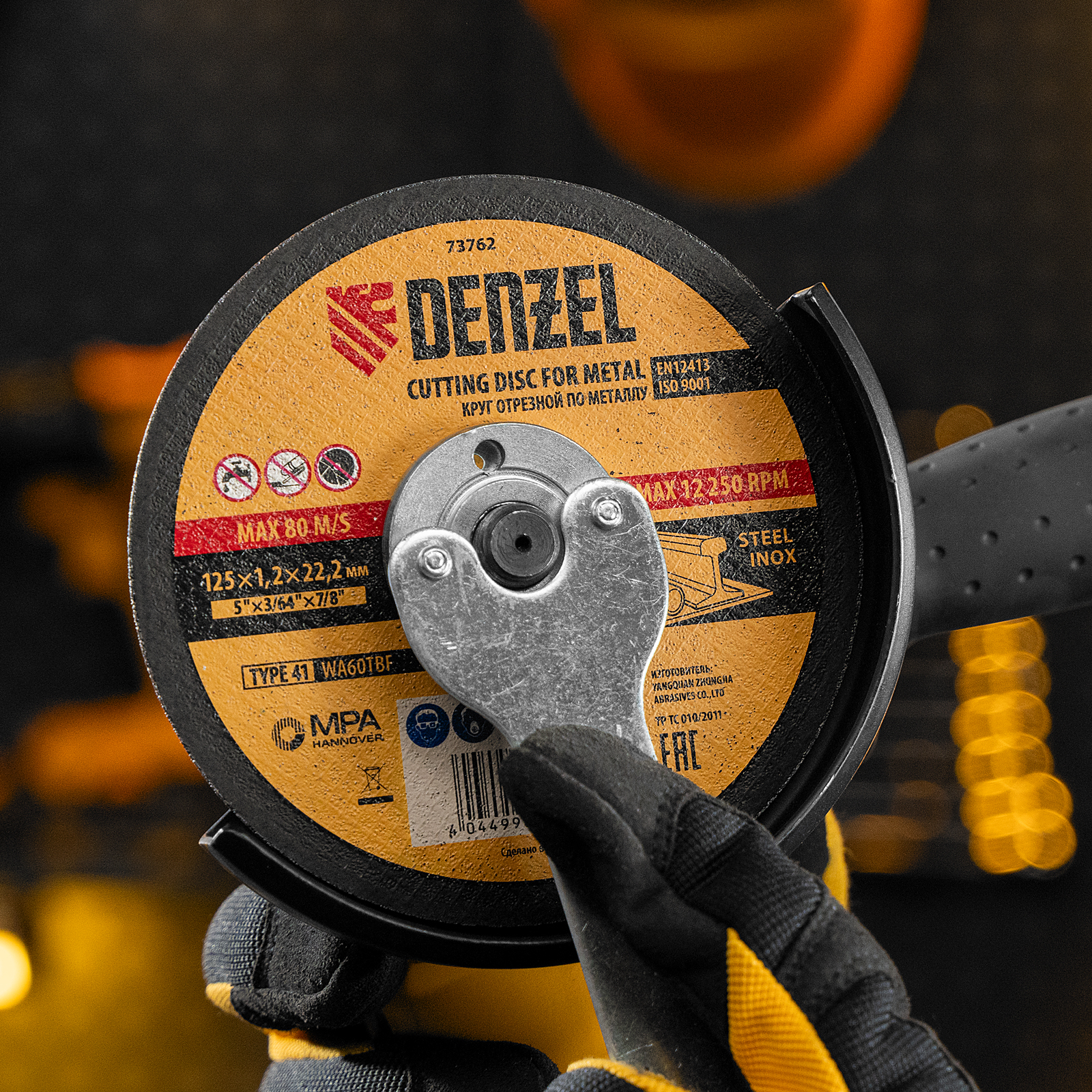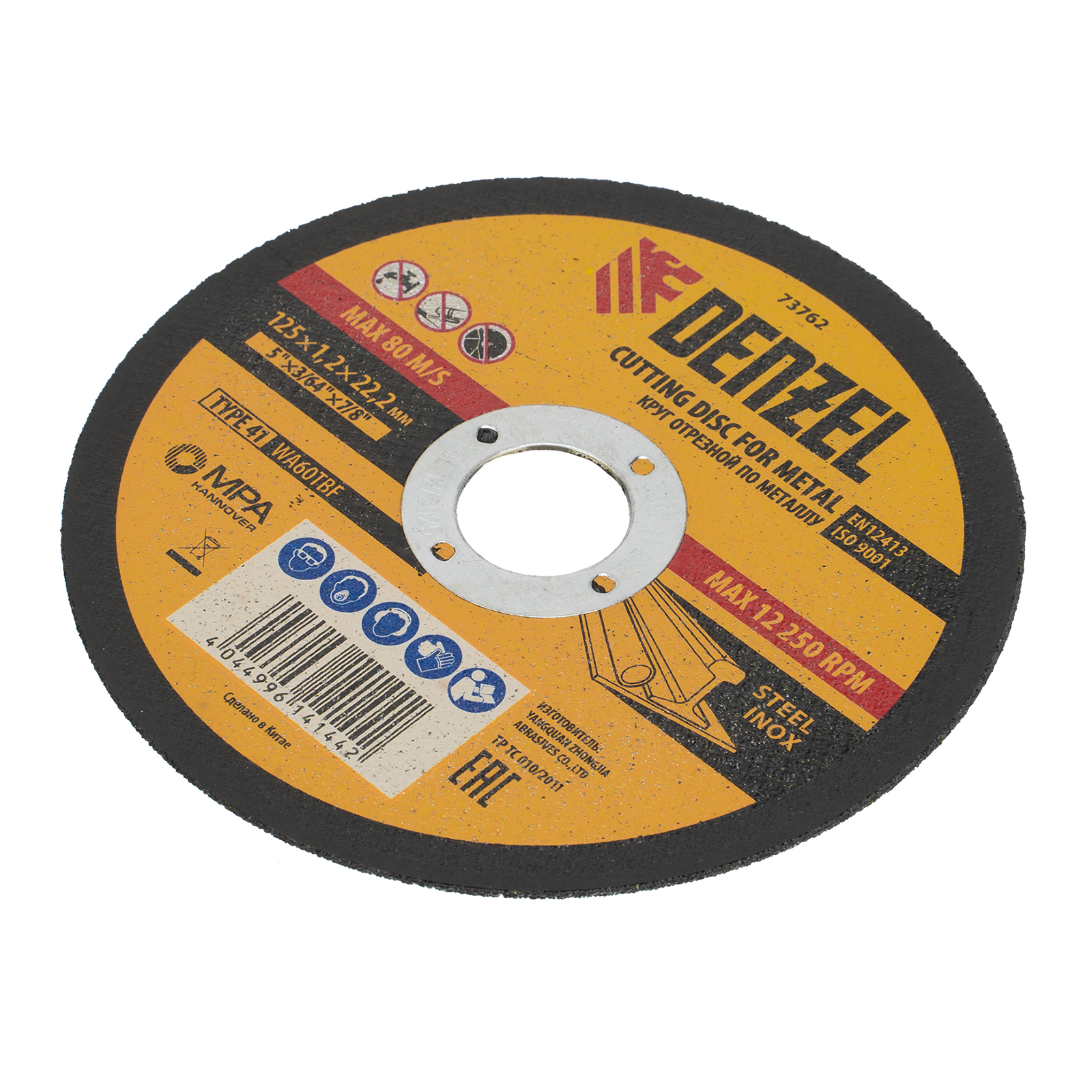 Отрезной круг по металлу Denzel WA60TBF 73762 размером 125 х 1,2 х 22,2 мм рассчитан на интенсивную работу с УШМ. Подходит для резки углеродистой и нержавеющей стали. Круг можно использовать не только в быту, но и для решения профессиональных задач.