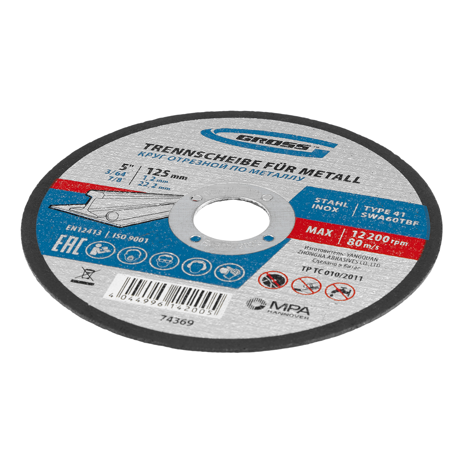 Отрезной круг по металлу Gross SWA60TBF 74369 размером 125 х 1,2 х 22,2 мм рассчитан на интенсивный рез углеродистой и нержавеющей стали, алюминия, чугуна. Устанавливается на УШМ соответствующего типоразмера и не требует частой замены, подходит для профессиональной эксплуатации с высокими нагрузками.