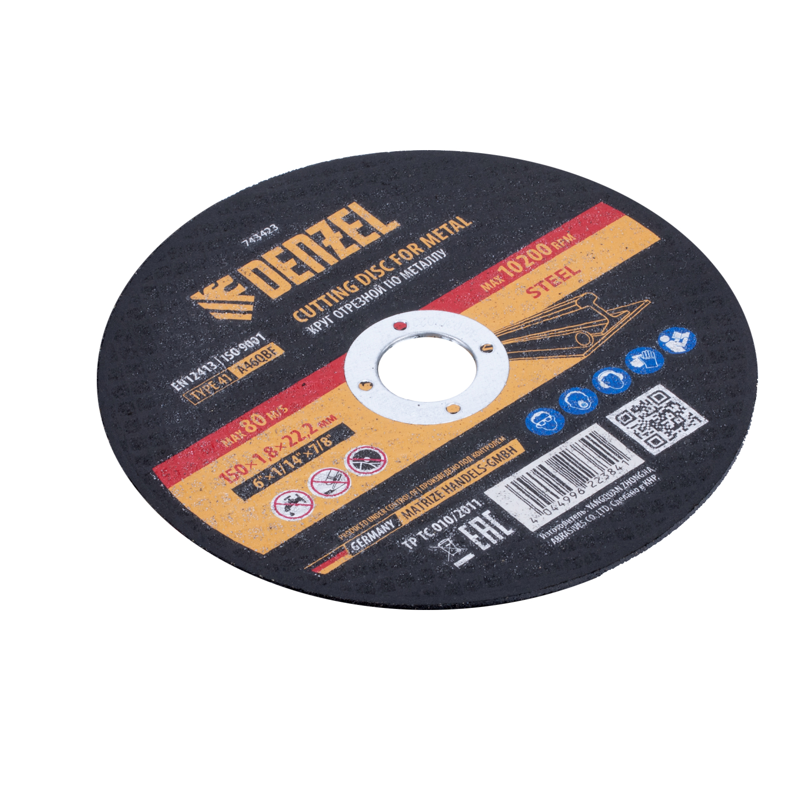 Круг отрезной по металлу Denzel 743423 (A46QBF) размером 150 х 1,8 х 22,2 мм оптимально подходит для реза углеродистых сталей. Используется на УШМ с посадочным диаметром 22,2 мм. Круг рассчитан на профессиональное и бытовое использование.
