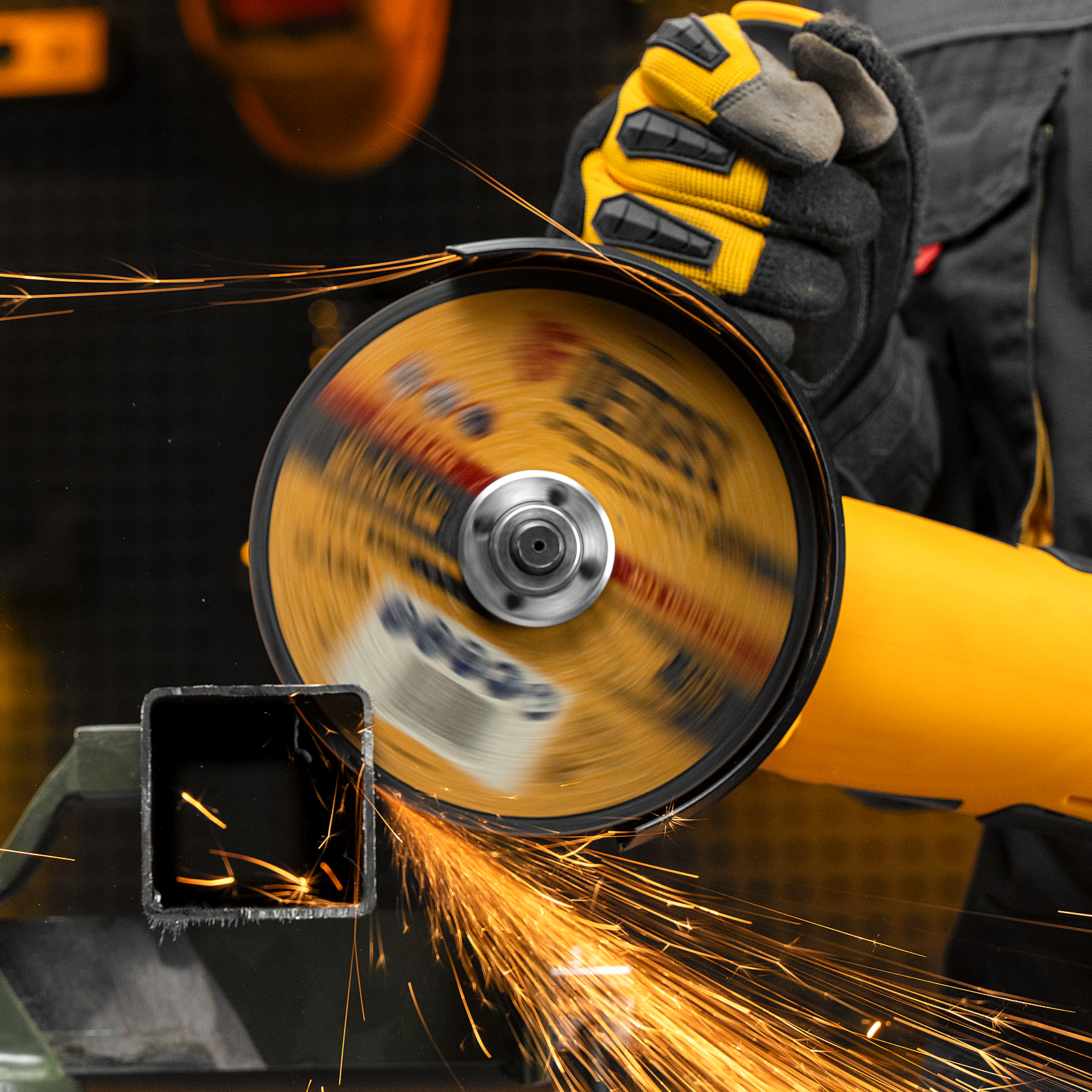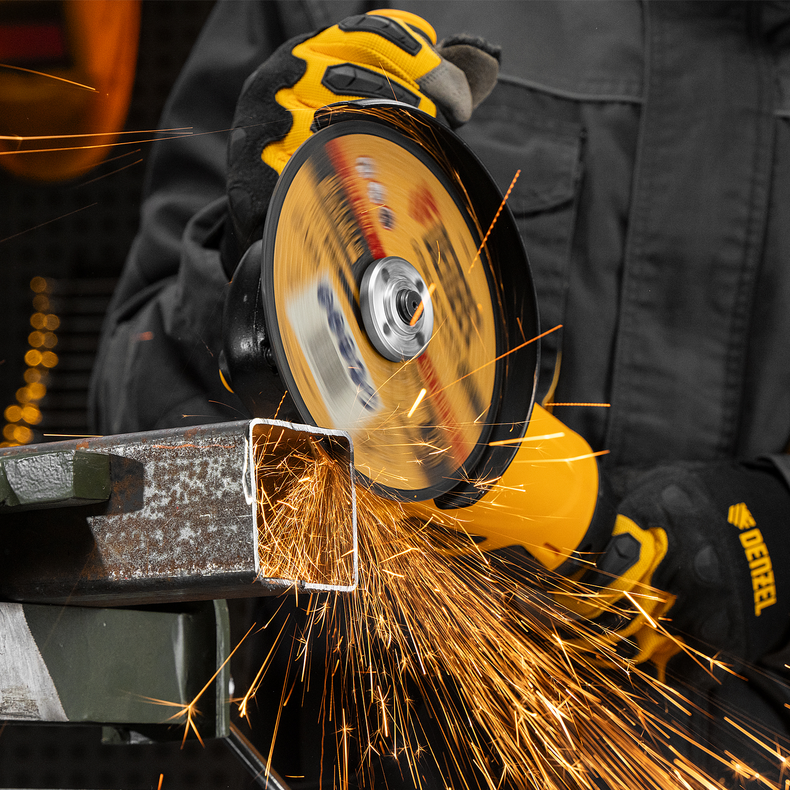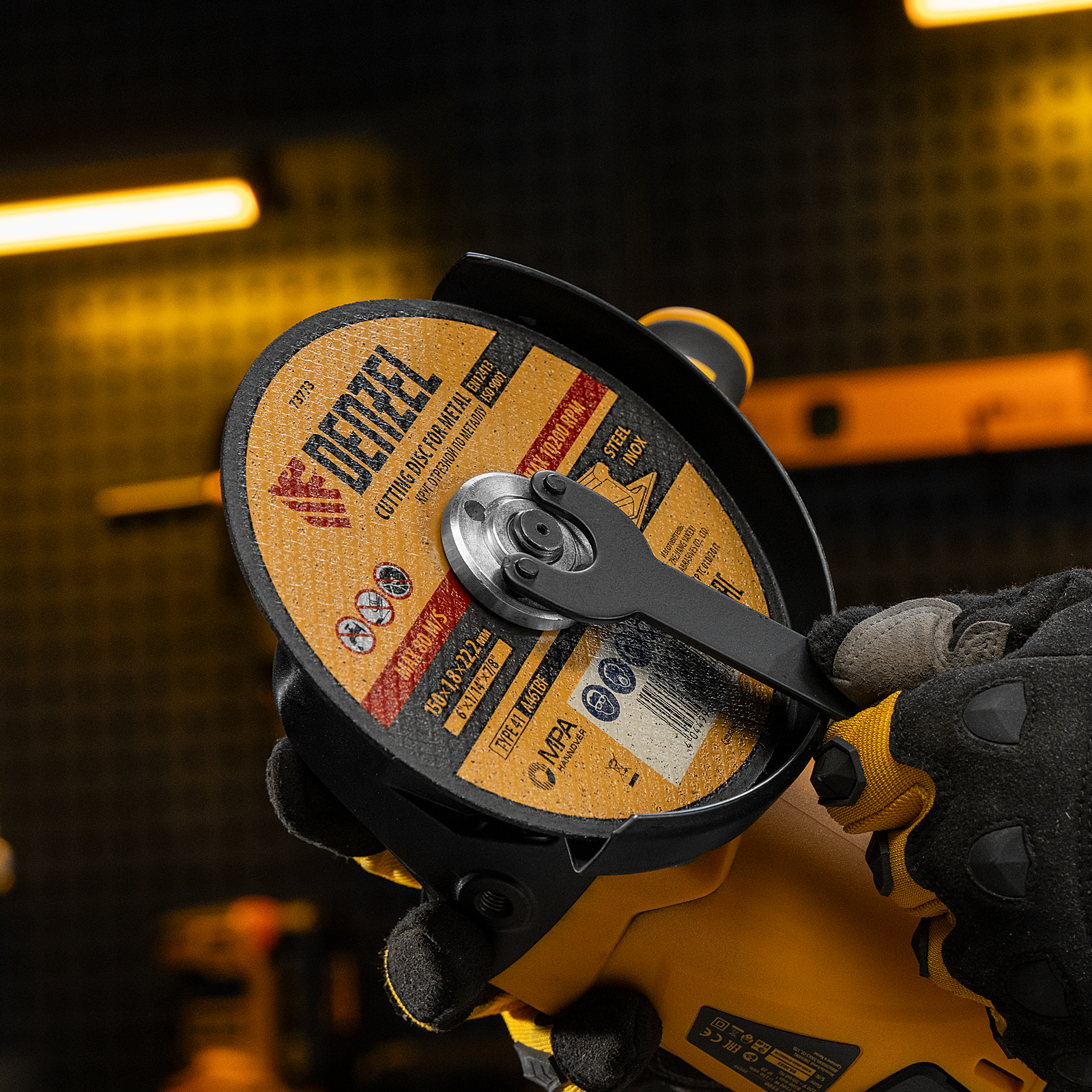 - Высокий ресурс — благодаря толщине 1,8 мм и средней по плотности структуре круг стабильно режет сталь даже при больших объемах работ.