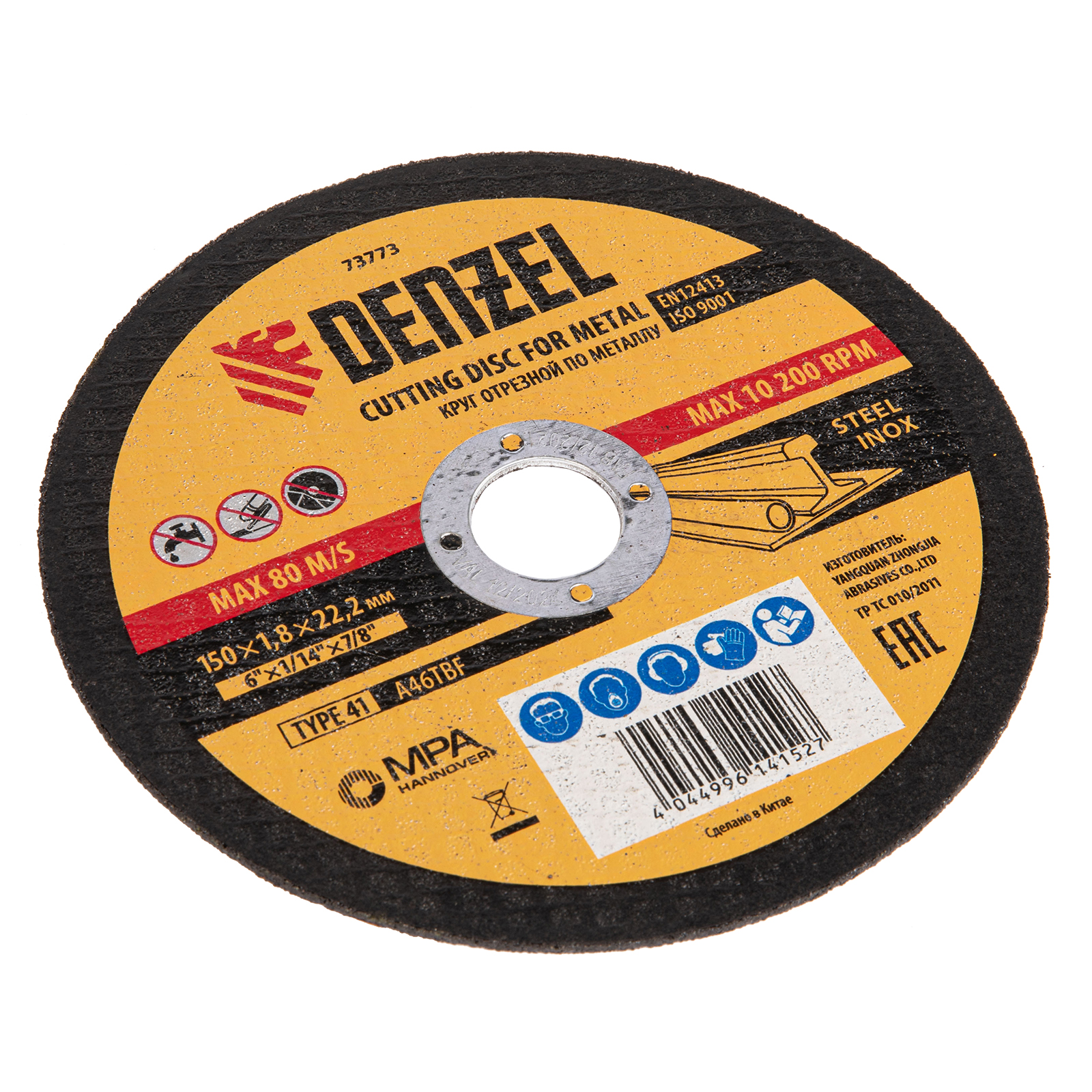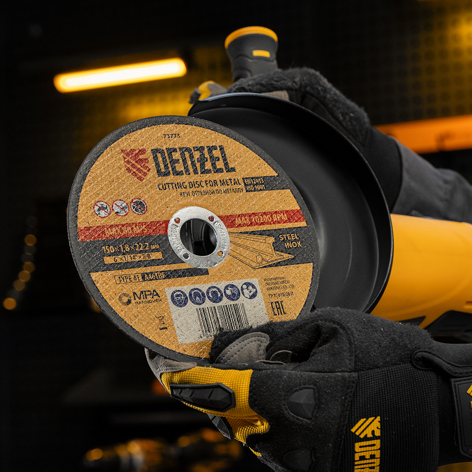 Отрезной круг по металлу Denzel A46TBF 73773 размером 150 х 1,8 х 22,2 мм рассчитан на интенсивную работу с УШМ. Подходит для резки углеродистой и нержавеющей стали. Круг можно использовать не только в быту, но и для решения профессиональных задач.