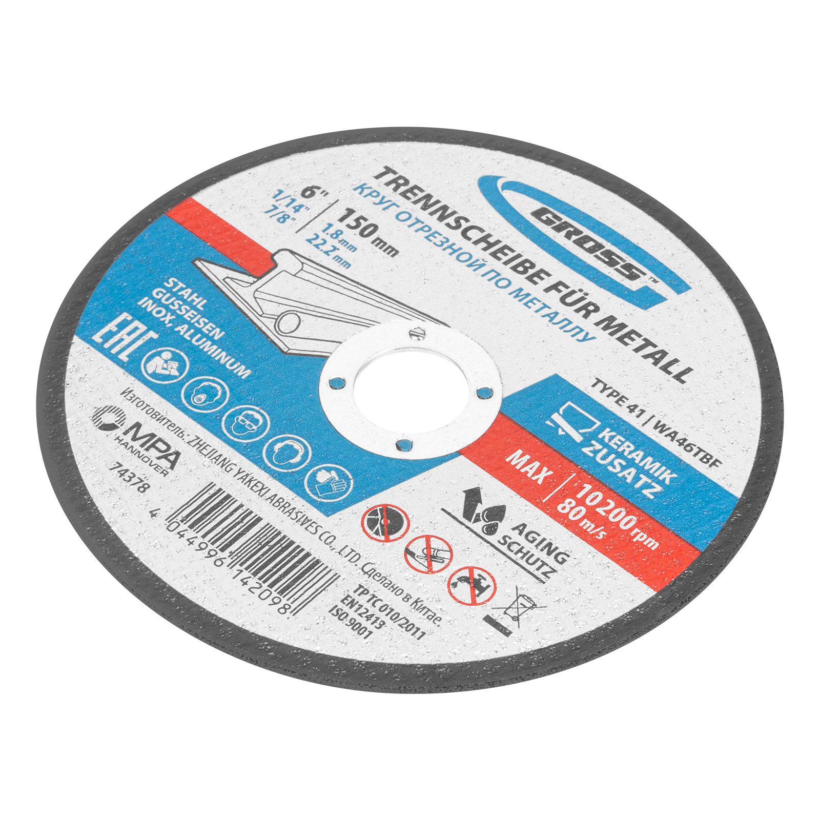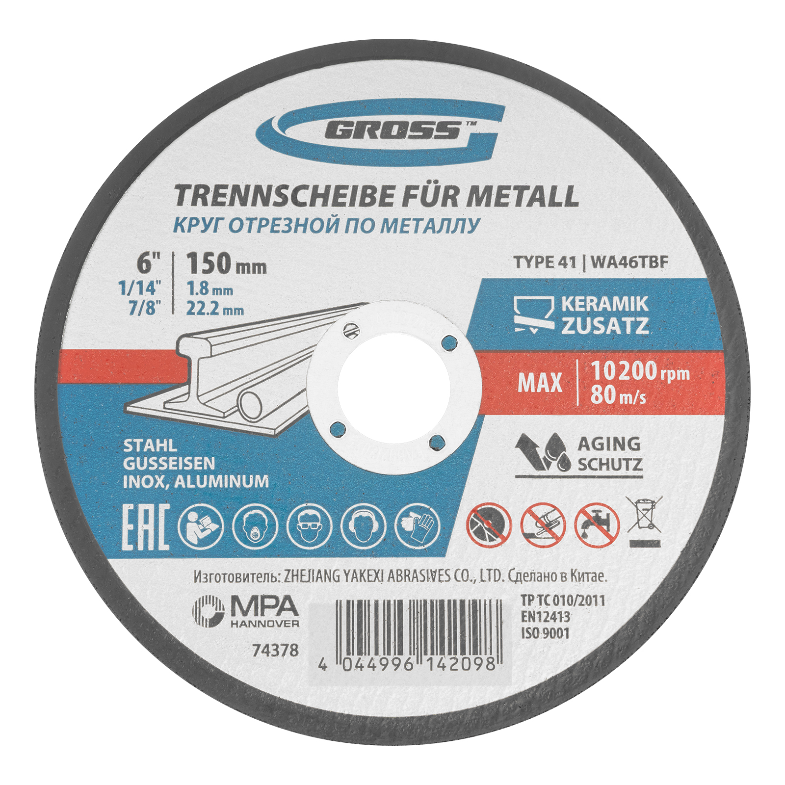 Отрезной круг по металлу Gross WA46TBF 74378 диаметром 150 мм и толщиной 1,8 мм устанавливается на фланец углошлифовальной машины с посадочным размером 22,2 мм. Предназначен для сухого резания углеродистых и нержавеющих сталей, а также алюминия и чугуна. Рекомендованная максимальная частота вращения составляет 10200 об/мин. Круг выдерживает высокие нагрузки и подходит для профессионального использования.