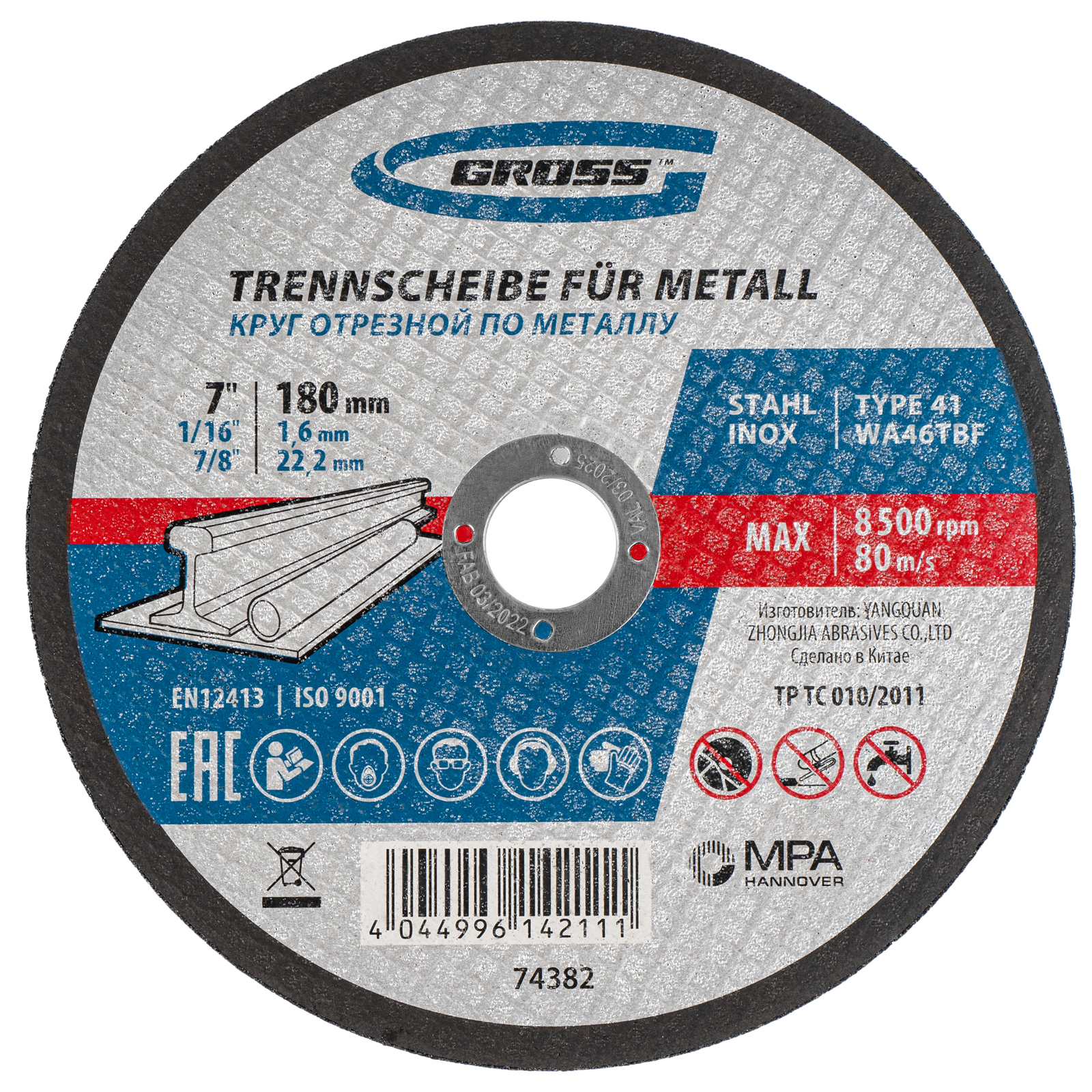 Отрезной круг по металлу Gross WA46TBF 74382 размером 180 х 1,6 х 22,2 мм рассчитан на интенсивный рез углеродистой и нержавеющей стали, алюминия, чугуна. Устанавливается на УШМ соответствующего типоразмера и не требует частой замены, подходит для профессиональной эксплуатации с высокими нагрузками.