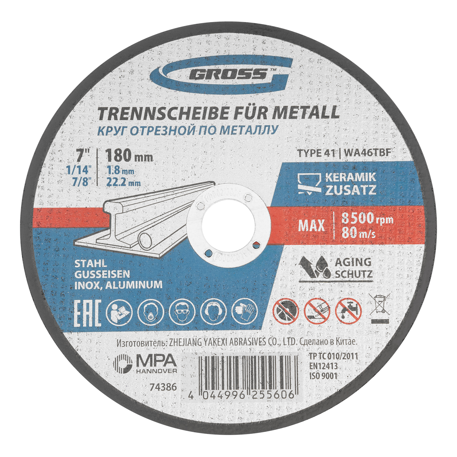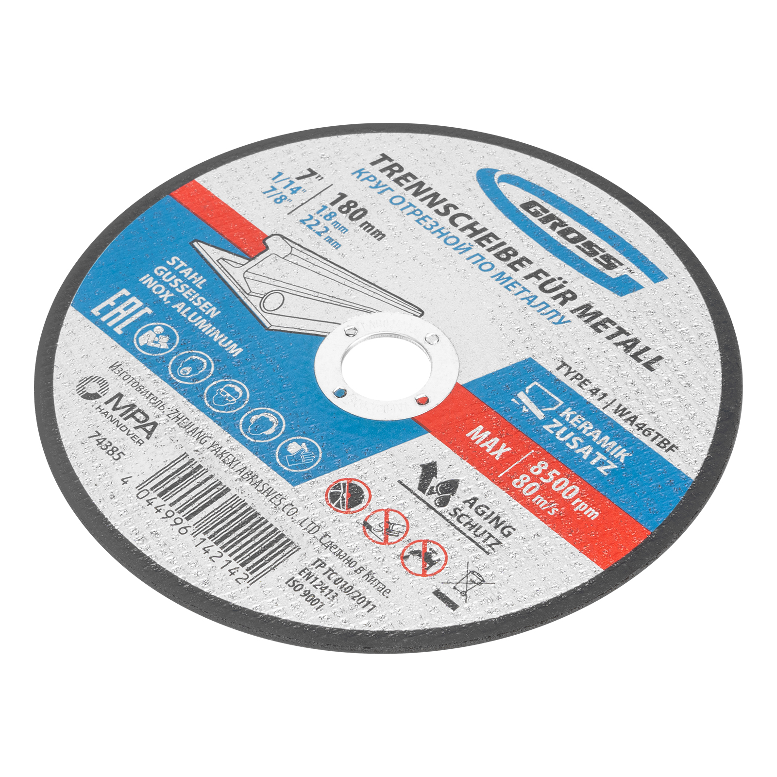 Отрезной круг по металлу Gross WA46TBF 74385 диаметром 180 мм и толщиной 1,8 мм устанавливается на фланец углошлифовальной машины с посадочным размером 22,2 мм. Предназначен для сухого резания углеродистых и нержавеющих сталей, а также алюминия и чугуна. Рекомендованная максимальная частота вращения составляет 8500 об/мин. Круг выдерживает высокие нагрузки и подходит для профессионального использования.