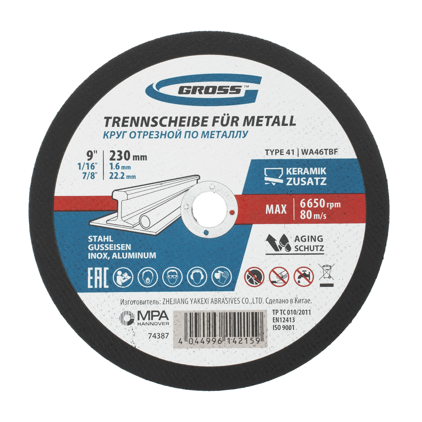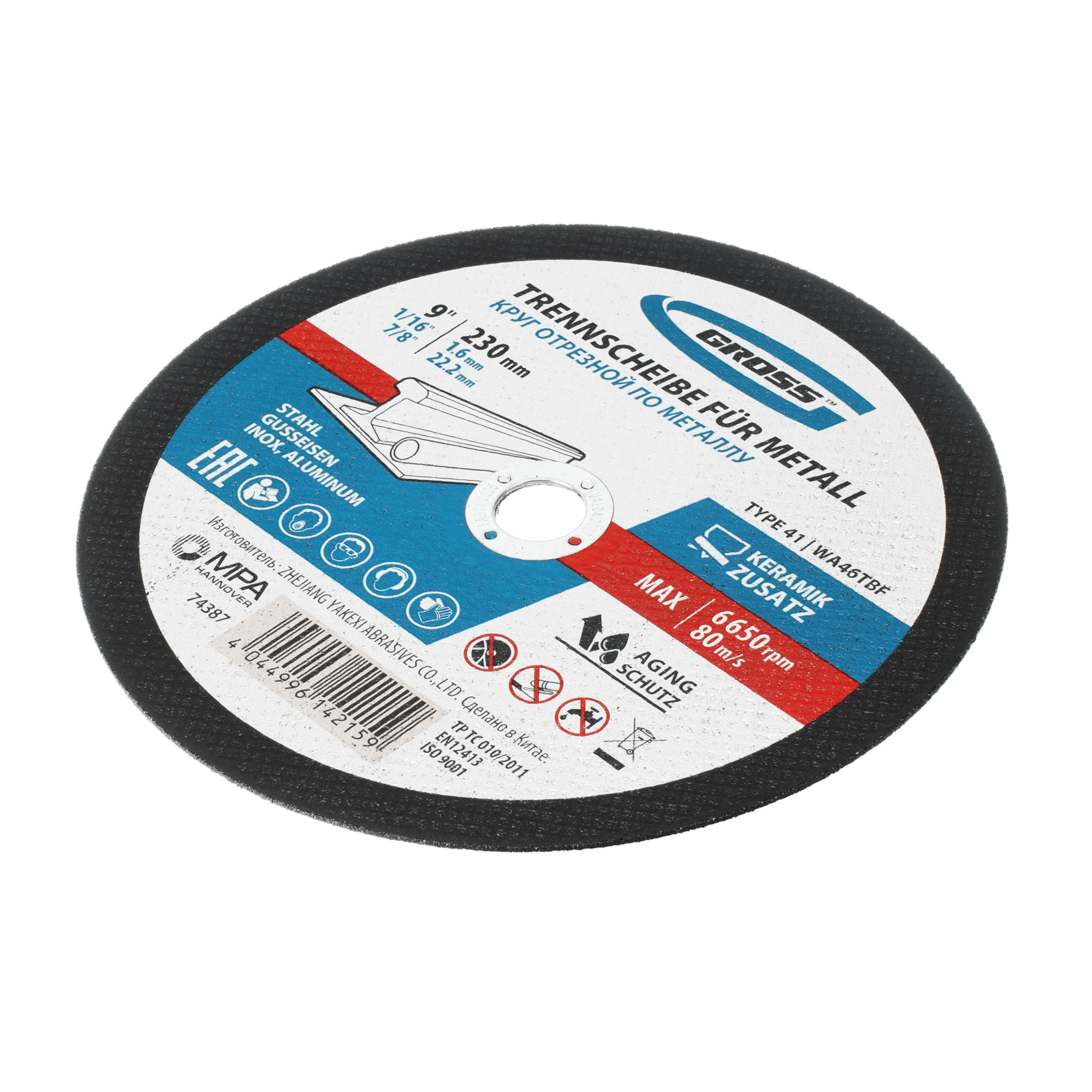 Отрезной круг по металлу Gross WA46TBF 74387 размером 230 х 1,6 х 22,2 мм рассчитан на интенсивный рез углеродистой и нержавеющей стали, алюминия, чугуна. Устанавливается на УШМ соответствующего типоразмера и не требует частой замены, подходит для профессиональной эксплуатации с высокими нагрузками.