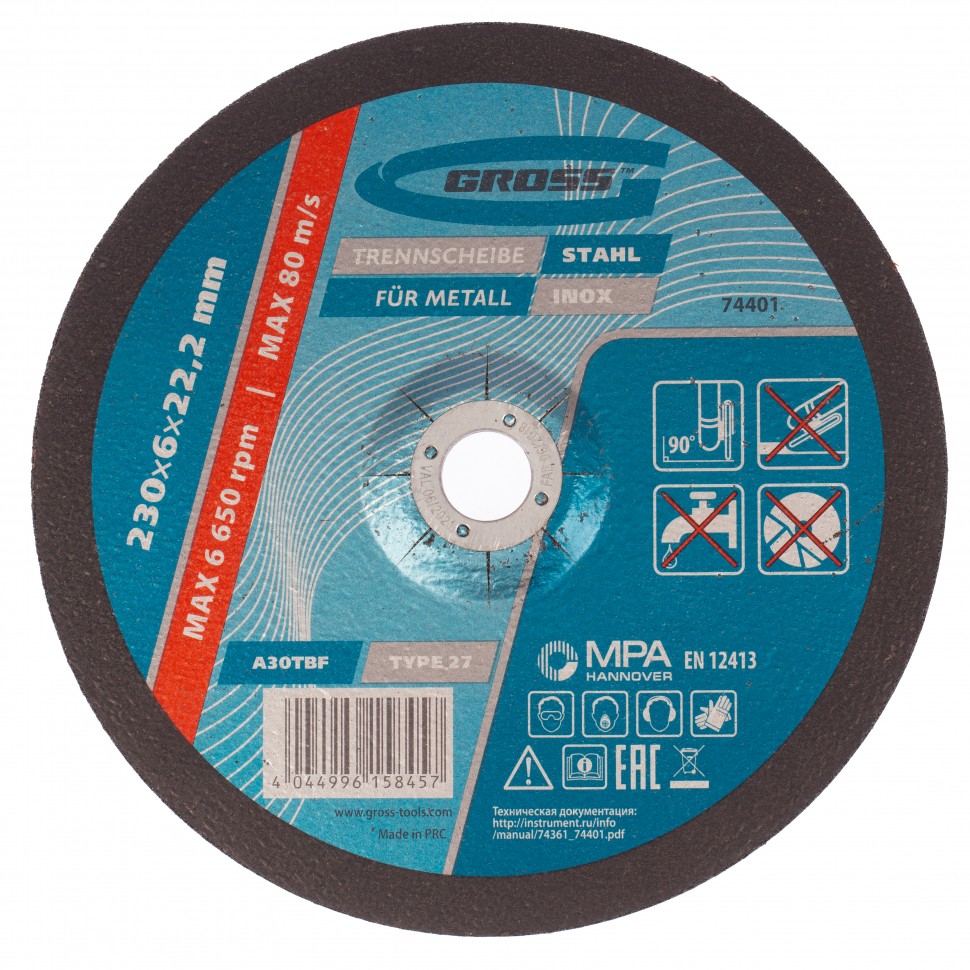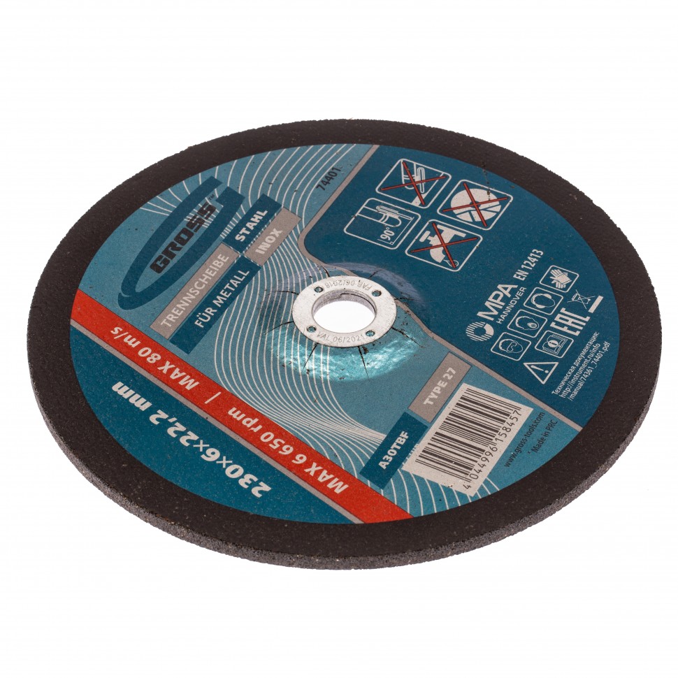 Шлифовальный круг по металлу Gross WA24TBF 74401 размером 230 х 6,0 х 22,2 мм применяется для интенсивной сухой обработки нержавеющих, углеродистых сталей и металлических поверхностей. Устанавливается на фланец УШМ с посадочным диаметром 22,2 мм. Круг эффективен для зачистки сварных швов, снятия заусенцев, окалины и ржавчины. Подходит для профессионального использования.