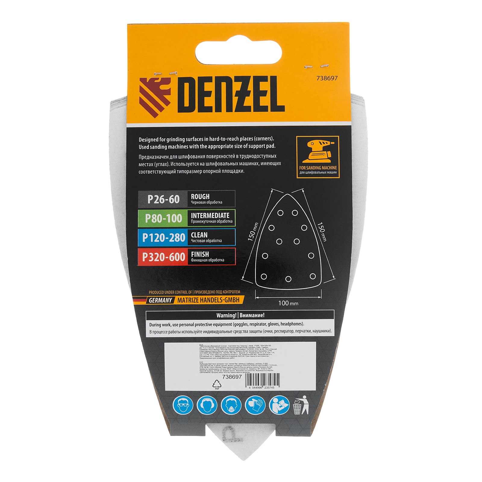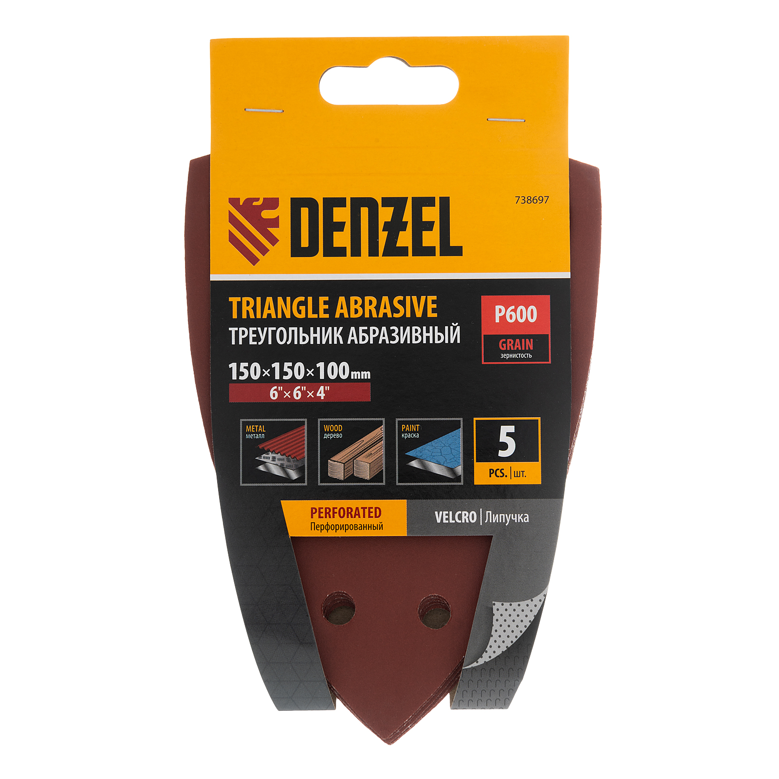 Абразивный перфорированный треугольник на ворсовой подложке «под липучку» Denzel 738697 размером 150 х 150 х 100 мм, 5 шт. в упаковке, имеет зернистость P 600 и предназначен для финишной обработки металлических, деревянных и других деталей. Позволяет устранять с поверхности мельчайшие шероховатости, удобен для работы в углах и других труднодоступных местах. Треугольник совместим с плоскошлифовальной машиной Denzel 27614, также подходит для установки на другие шлифмашины с размером рабочей платформы 150 х 150 х 100 мм.