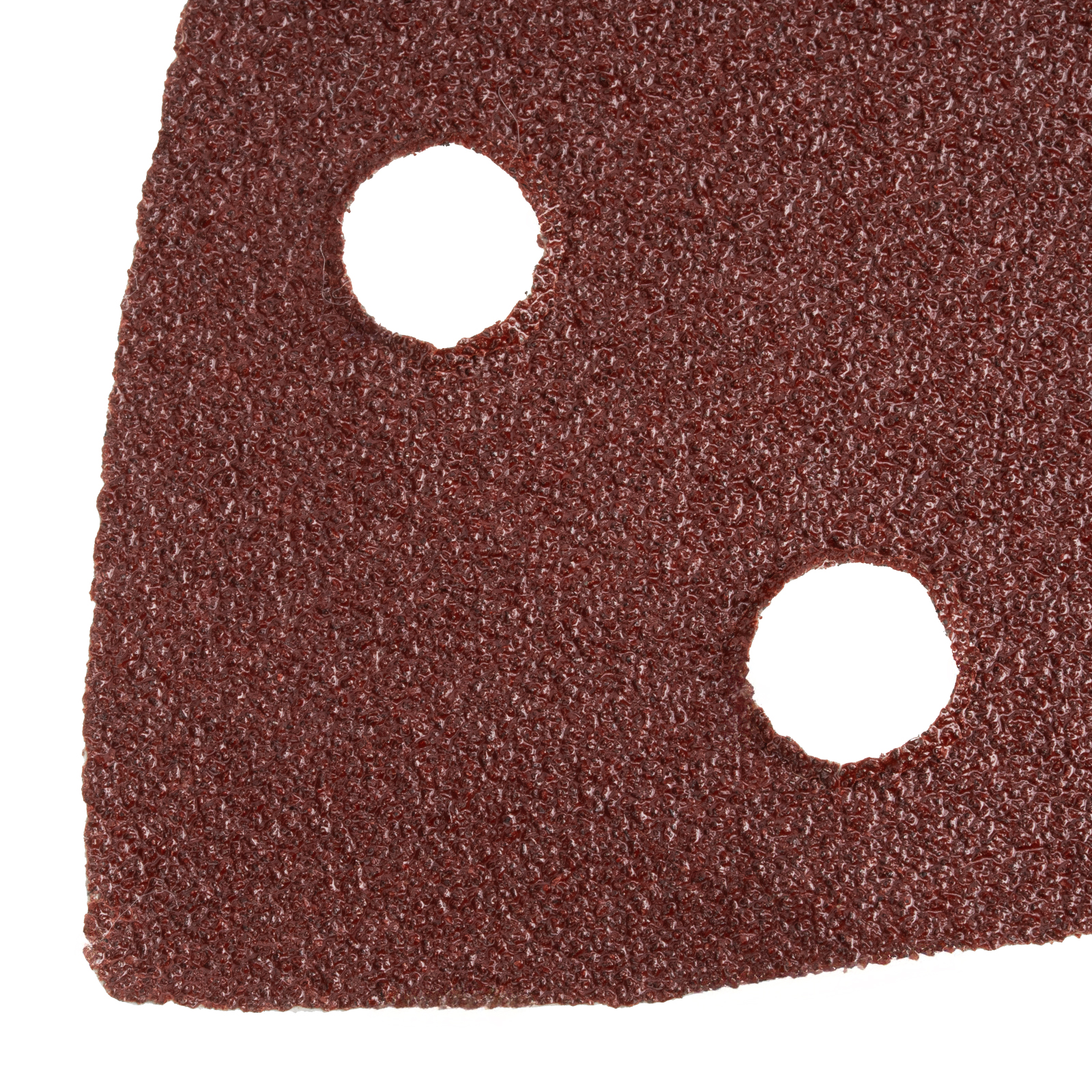 - Эффективность — перфорация улучшает отвод пыли, позволяя обрабатывать материалы без риска их повреждения, а также увеличивая срок службы треугольника.