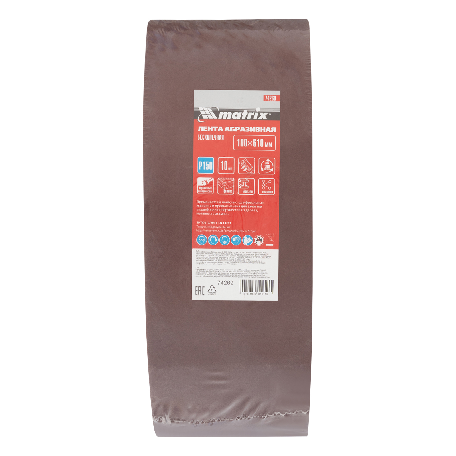 Бесконечная абразивная лента Matrix 74269 с зернистостью P 150, 10 шт. в упаковке, устанавливается на ленточную шлифовальную машину, совместимую со сменными элементами размером 100 х 610 мм. Применяется для финишной обработки деревянных и металлических поверхностей.