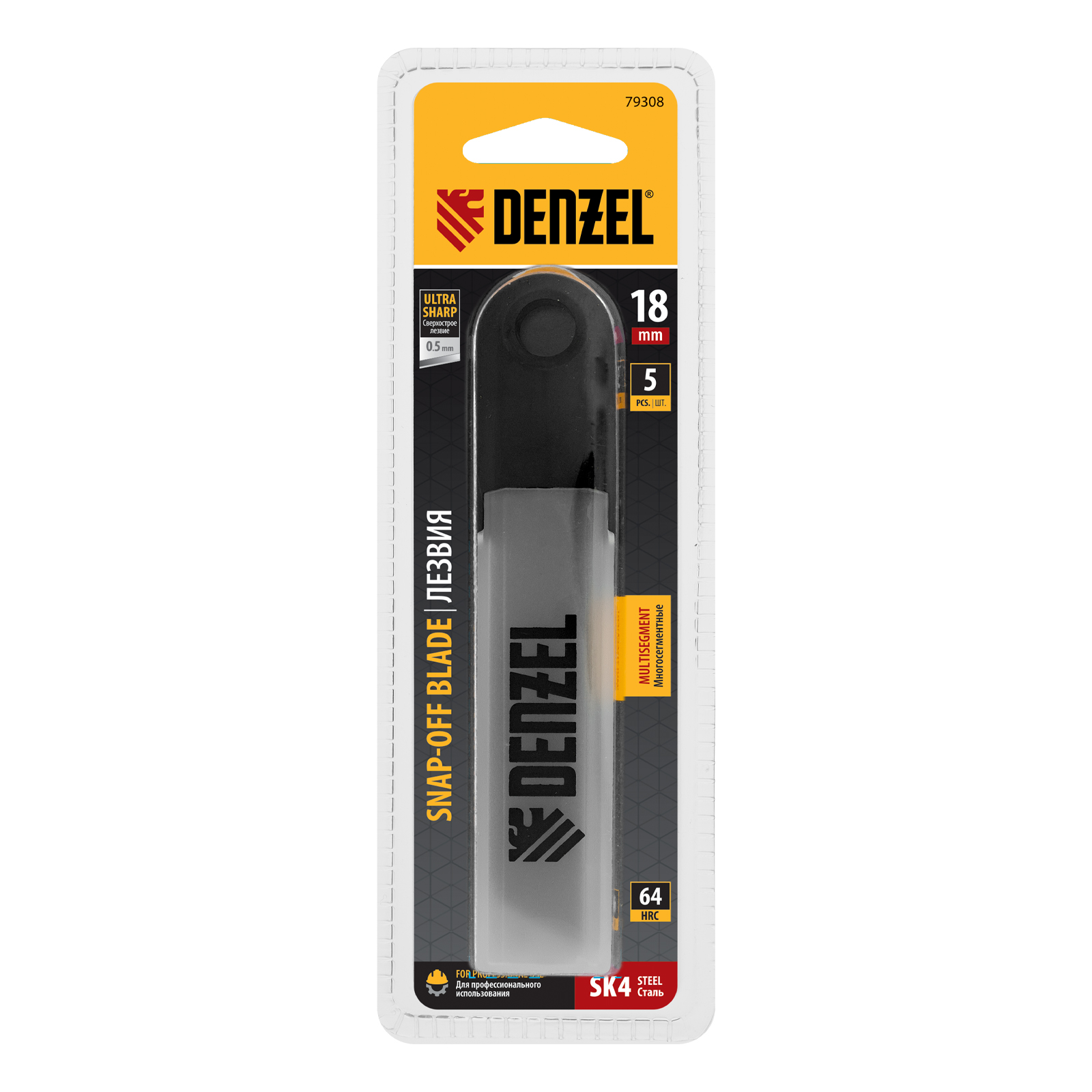 Суперострые многосегментные лезвия Denzel 79308 шириной 18 мм, изготовленные из стали SK4 толщиной 0,5 мм, 5 шт. в упаковке, — сменные рабочие элементы для монтажных ножей соответствующего типоразмера. Подходят для разрезания твердых материалов, линолеума, пластика, гипсокартона, а также картона, пленки, обоев. Обеспечивают легкий рез. Отличаются повышенной прочностью и долговечностью по сравнению с аналогами других торговых марок. Лезвия могут применяться для проведения строительных и отделочных работ, а также в бытовых целях.
