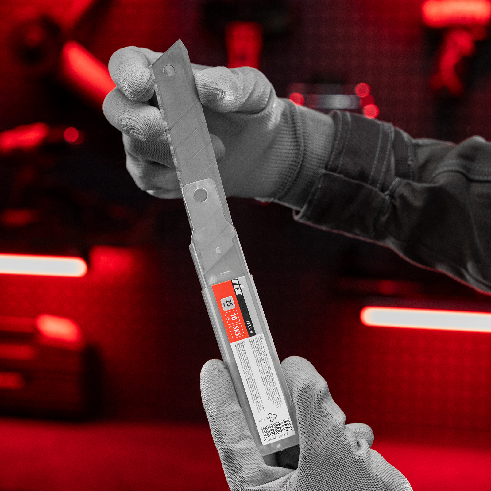 Лезвия Matrix 793378 из стали SK5, шириной 25 мм и длиной 125 мм, 10 шт. в упаковке, — сменные режущие элементы для монтажных ножей соответствующего типоразмера. Режут бумагу, пленку, картон, а также плотные материалы: линолеум, пластик, гипсокартон. Используются во время проведения строительных и отделочных работ, также полезны в быту.