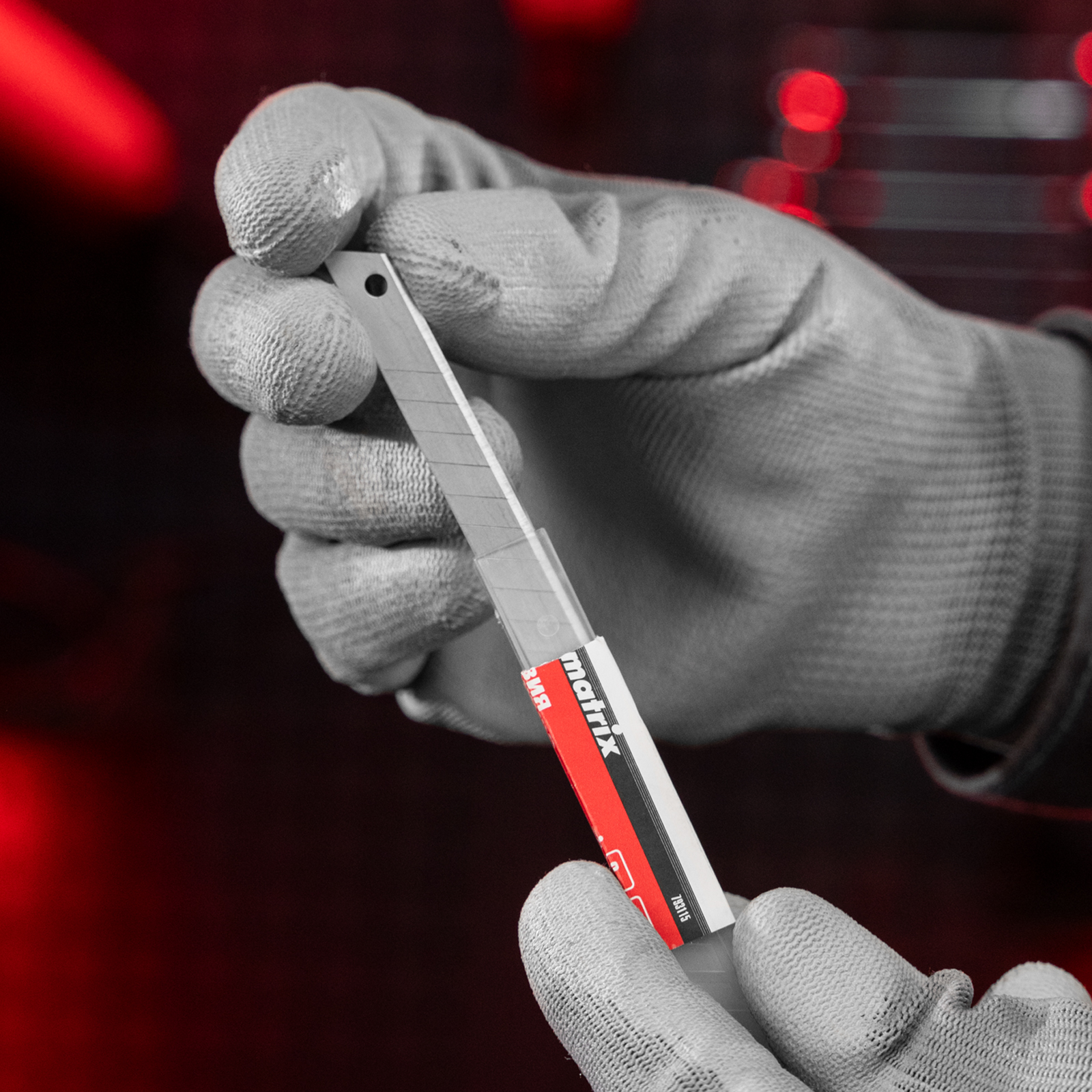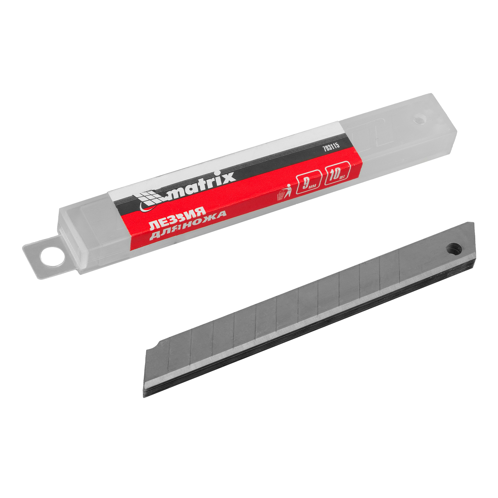 Лезвия Matrix 793115 шириной 9 мм и длиной 85 мм — сменные рабочие элементы для монтажных ножей. Подходят для разрезания картона, линолеума, пленки, обоев. Лезвия остро заточены и хорошо гнутся, могут применяться в бытовых целях, а также во время строительства и ремонта.