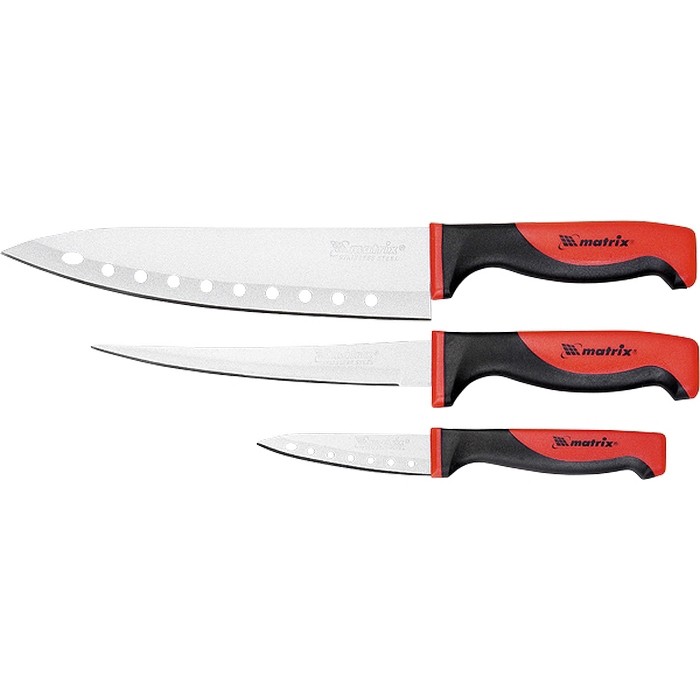 - Большой и малый поварские ножи также оснащены технологическими отверстиями по длине лезвия, что существенно облегчает рез, увеличивает его эффективность и исключает прилипание продуктов.