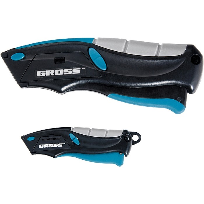 Набор ремонтно-монтажных ножей Gross 78876 состоит из двух предметов — ножа длиной 170 мм с 5 запасными лезвиями и ножа длиной 100 мм с 2 сменными полотнами. Оба инструмента оснащены автоматической системой выброса и возврата лезвия, имеют трехкомпонентные рукоятки. Ножи используются при выполнении ремонтных, отделочных работ, пригодятся для занятий творчеством и решения бытовых задач. Набор позволяет подобрать инструмент с оптимальной шириной рабочего полотна в зависимости от толщины разрезаемого материала.