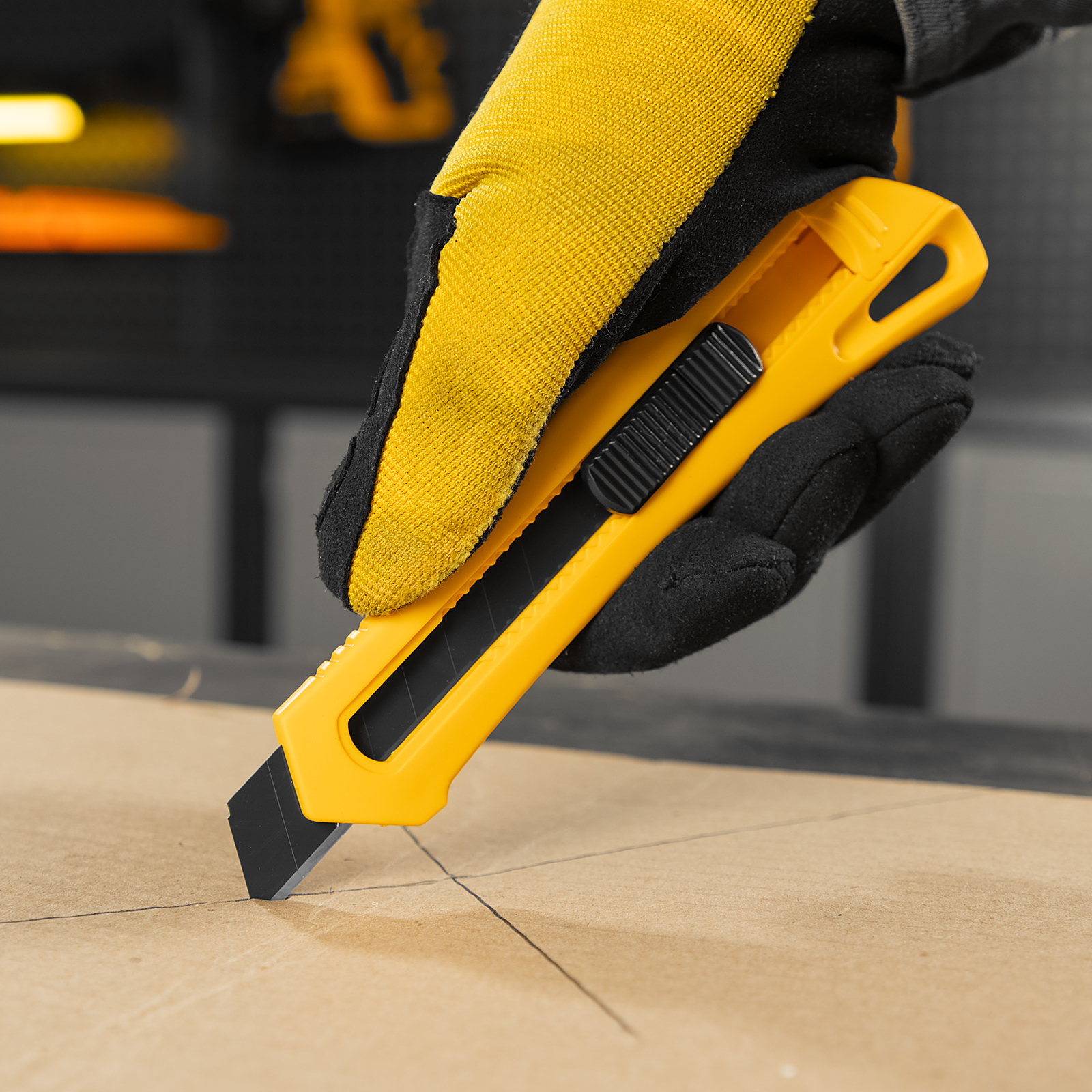 - Удобное использование — нажимной фиксатор удерживает лезвие в нужном положении.