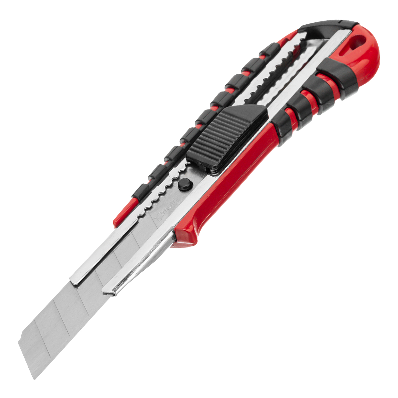 Нож Matrix 78938 с выдвижным лезвием шириной 18 мм, металлической направляющей и эргономичной двухкомпонентной рукояткой пригодится в мастерской, для бытового использования, проведения ремонтных работ, а также для рукоделия. Он с легкостью разрезает бумагу, картон и более плотные материалы, например, кожаные изделия.