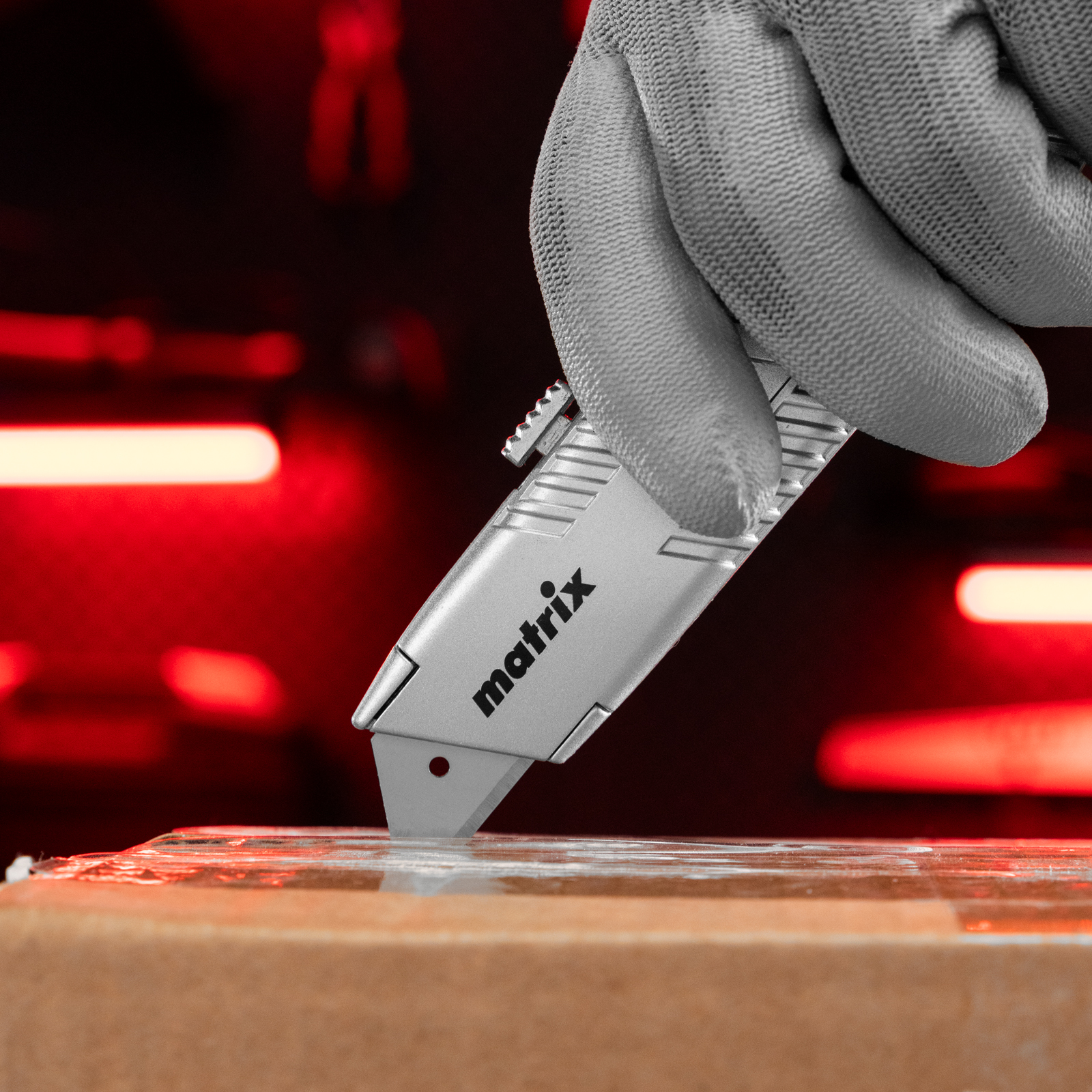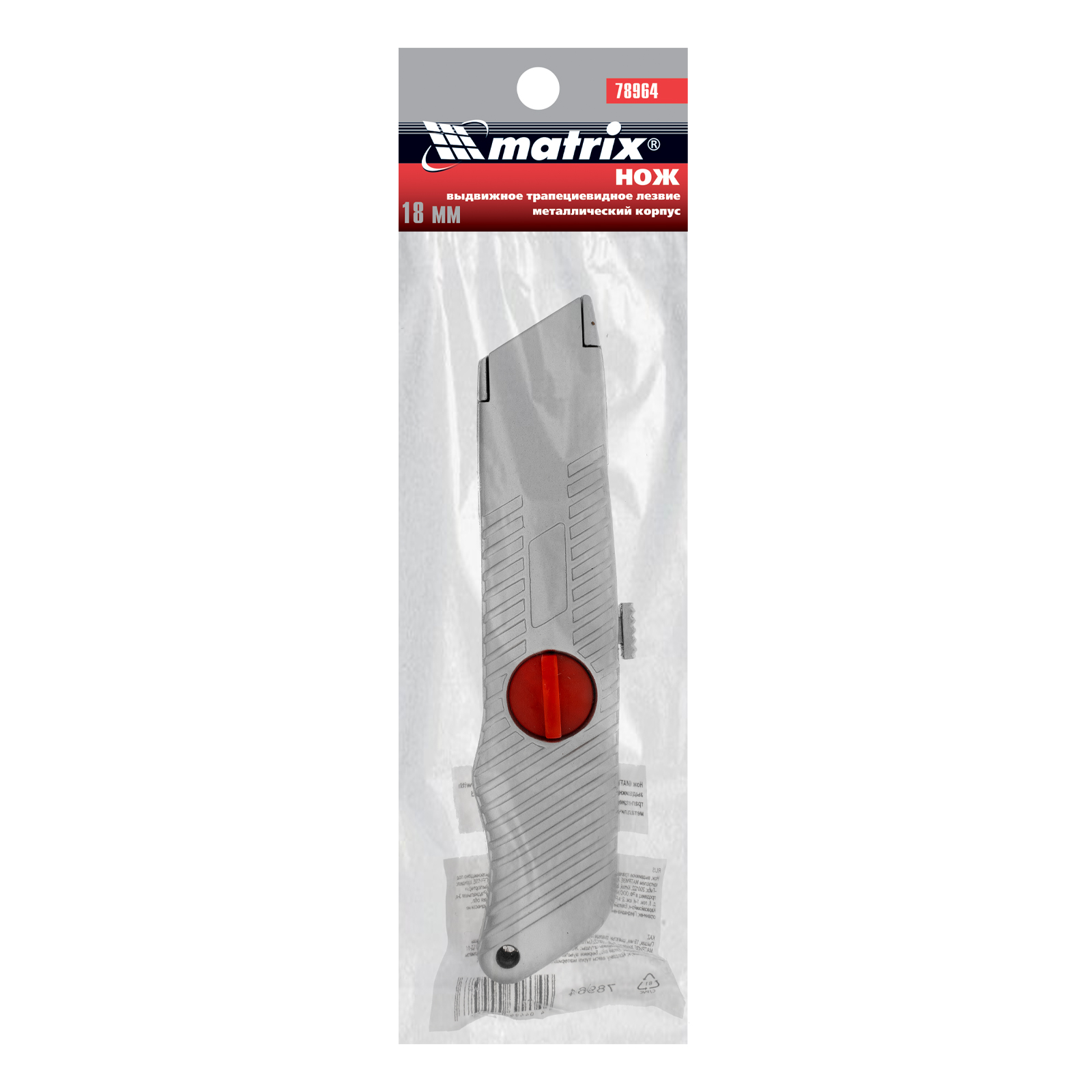 Нож Matrix 78964 в металлическом корпусе, с выдвижным трапециевидным лезвием, применяется при резке бумаги, картона, кожи, а также для раскройки линолеума или обоев. Инструмент успешно справляется с этой работой благодаря стальному лезвию шириной 19 мм. Используется в профессиональной сфере и в быту.