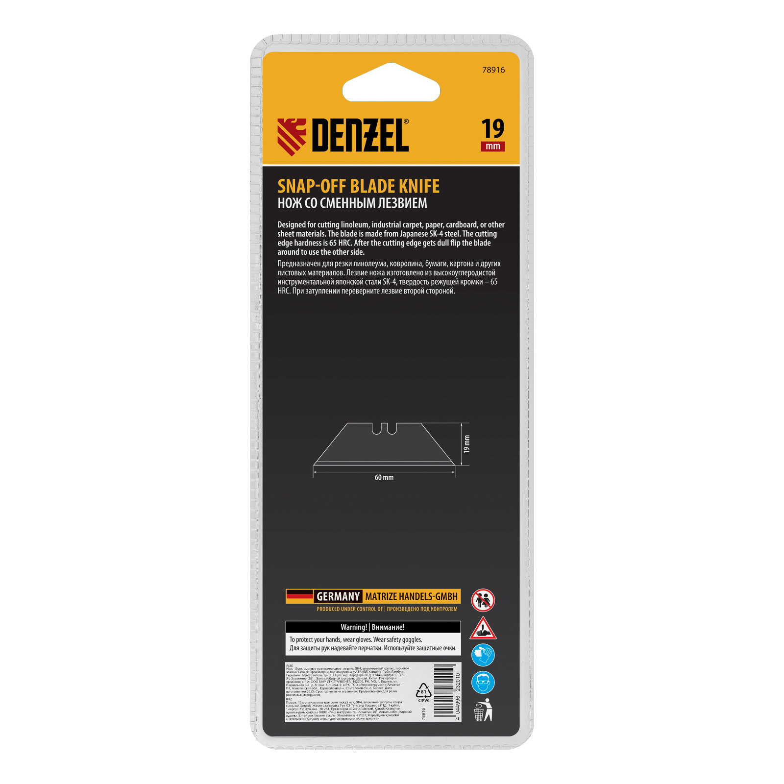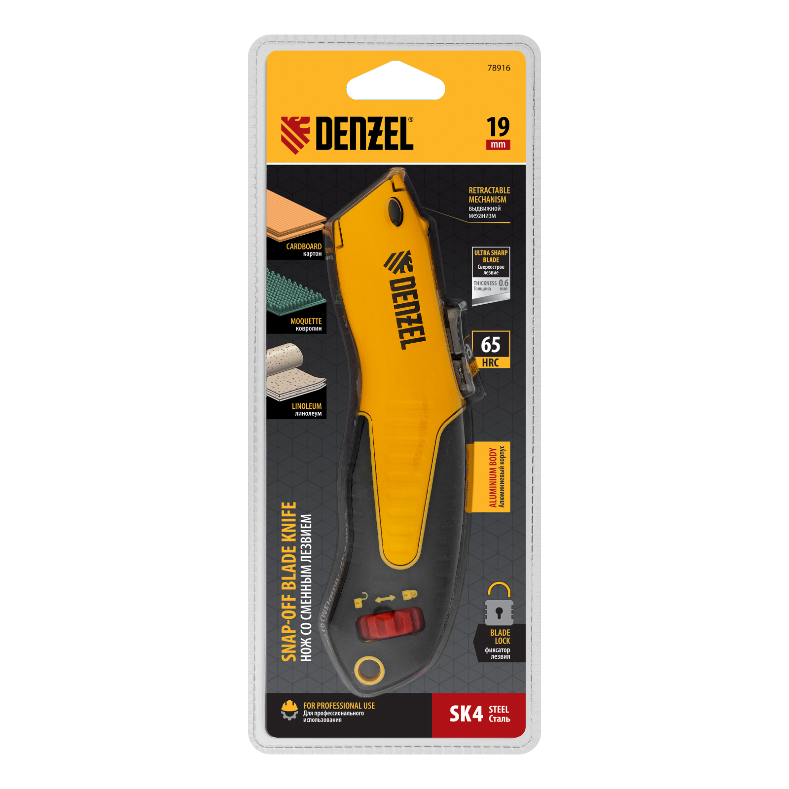 Нож Denzel 78916 выполнен в алюминиевом корпусе, оснащен сменным трапециевидным лезвием шириной 19 мм, изготовленным из стали SK4 по технологии UltraSharp, и торцевым зажимом. Сверхострое выдвижное лезвие легко режет бумагу, картон, кожу и другие нетвердые материалы. Нож станет незаменимым помощником на строительной площадке, на кухне, в офисе.