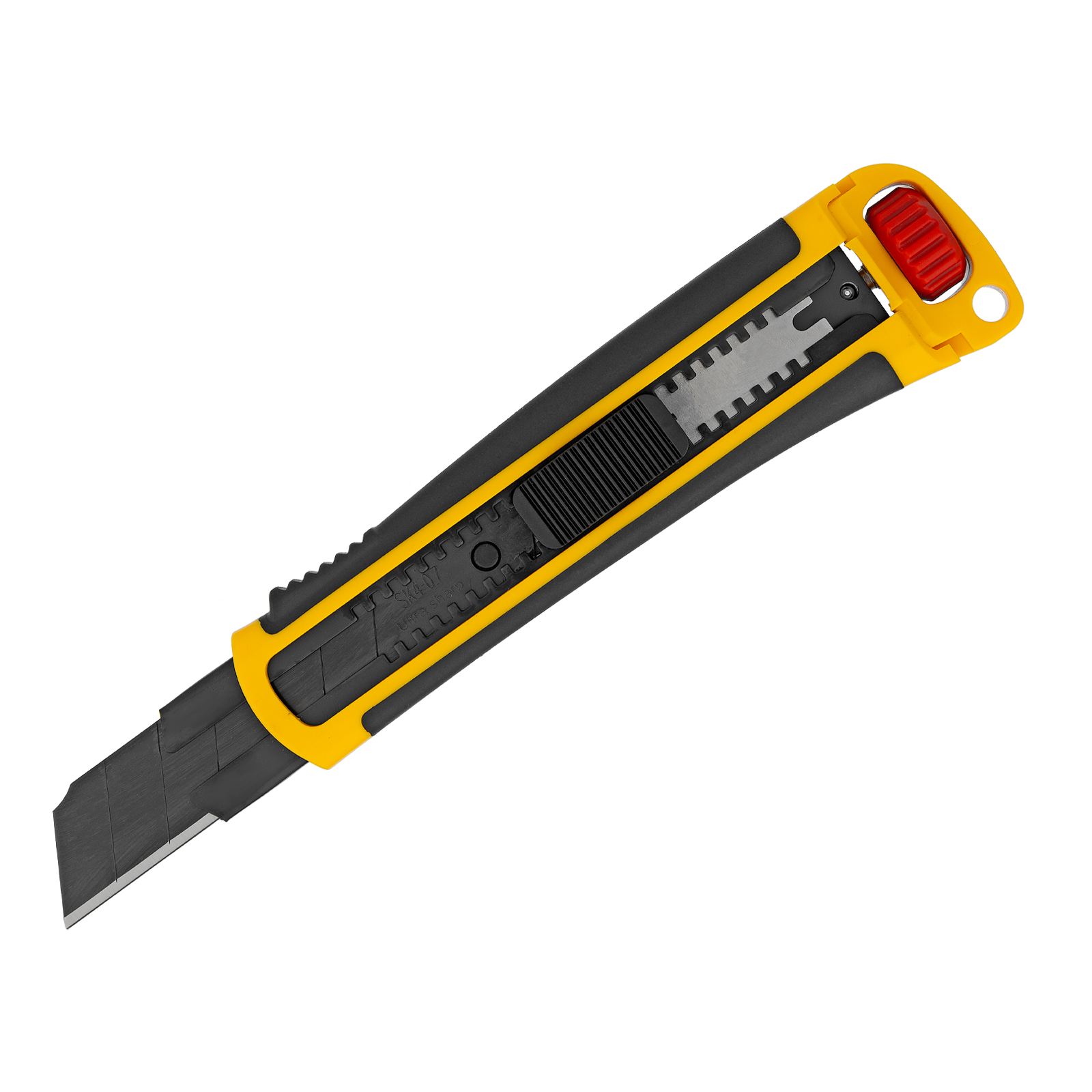 - Повышенная прочность — за счет увеличенного количества материала корпуса (ABS + TPR) можно работать со значительным усилием без риска поломки ножа.
