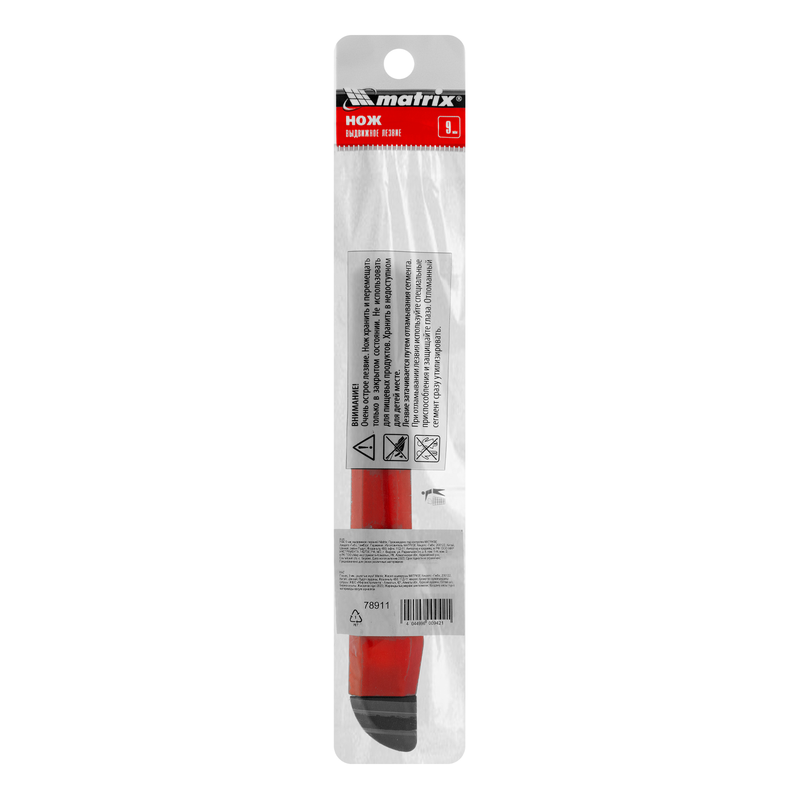 Нож Matrix 78911 с выдвижным лезвием шириной 9 мм способен резать картон, обои, скотч, бумагу и другие материалы, не требующие больших усилий. Будет полезен во время ремонта, при вскрытии упаковок, а также пригодится для решения бытовых задач. Благодаря выдвижному лезвию можно установить оптимальную длину режущей части в зависимости от толщины материала.