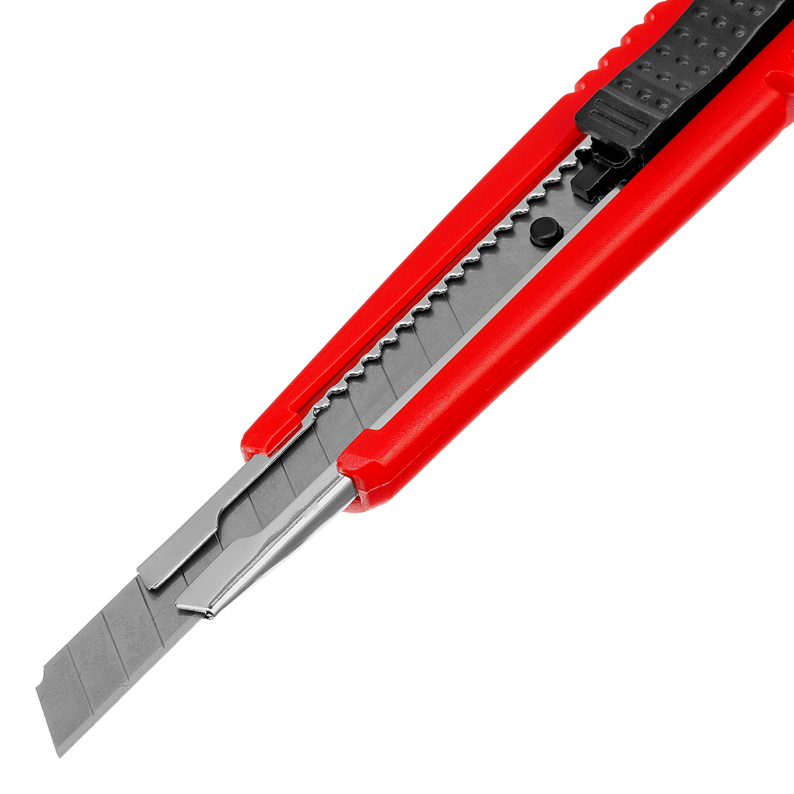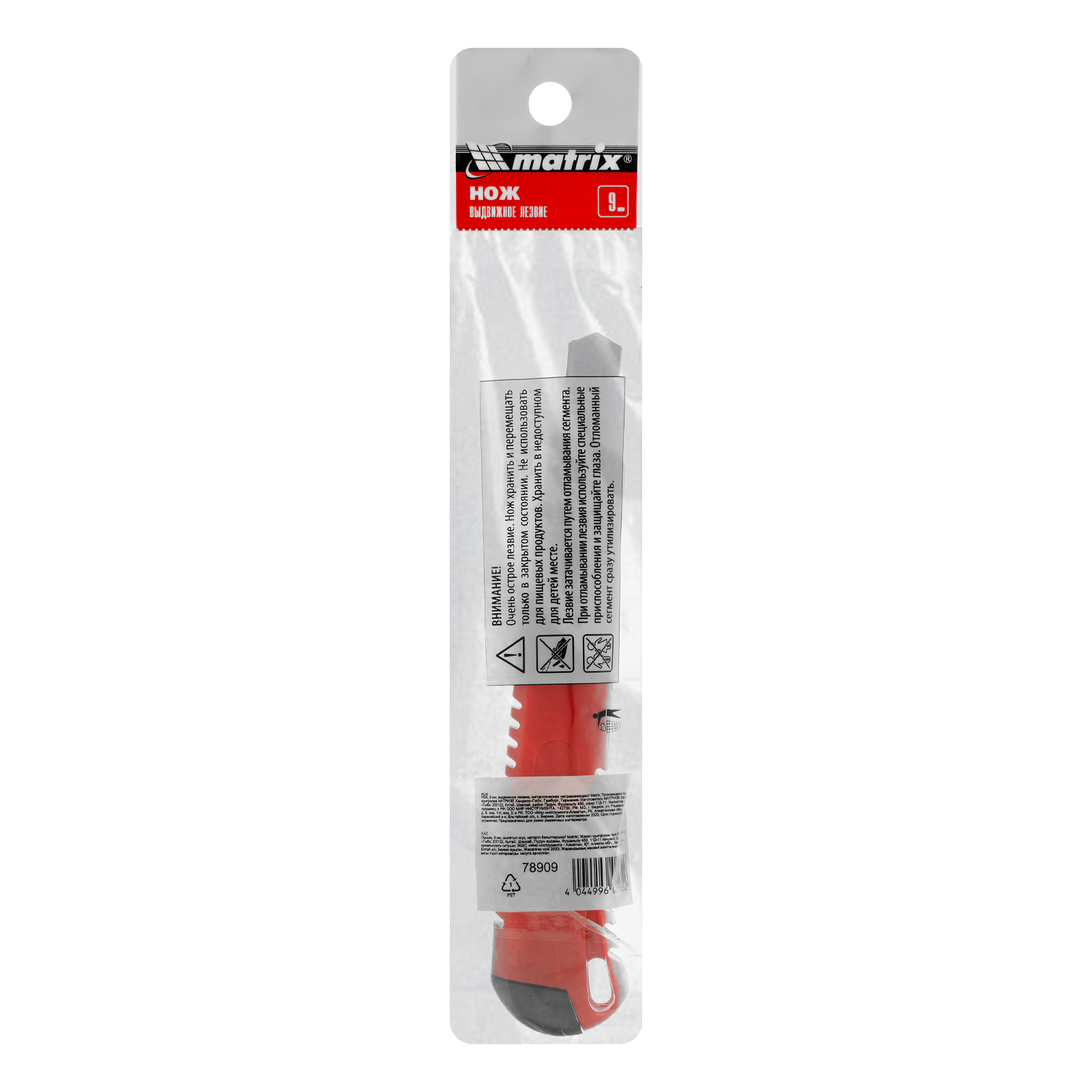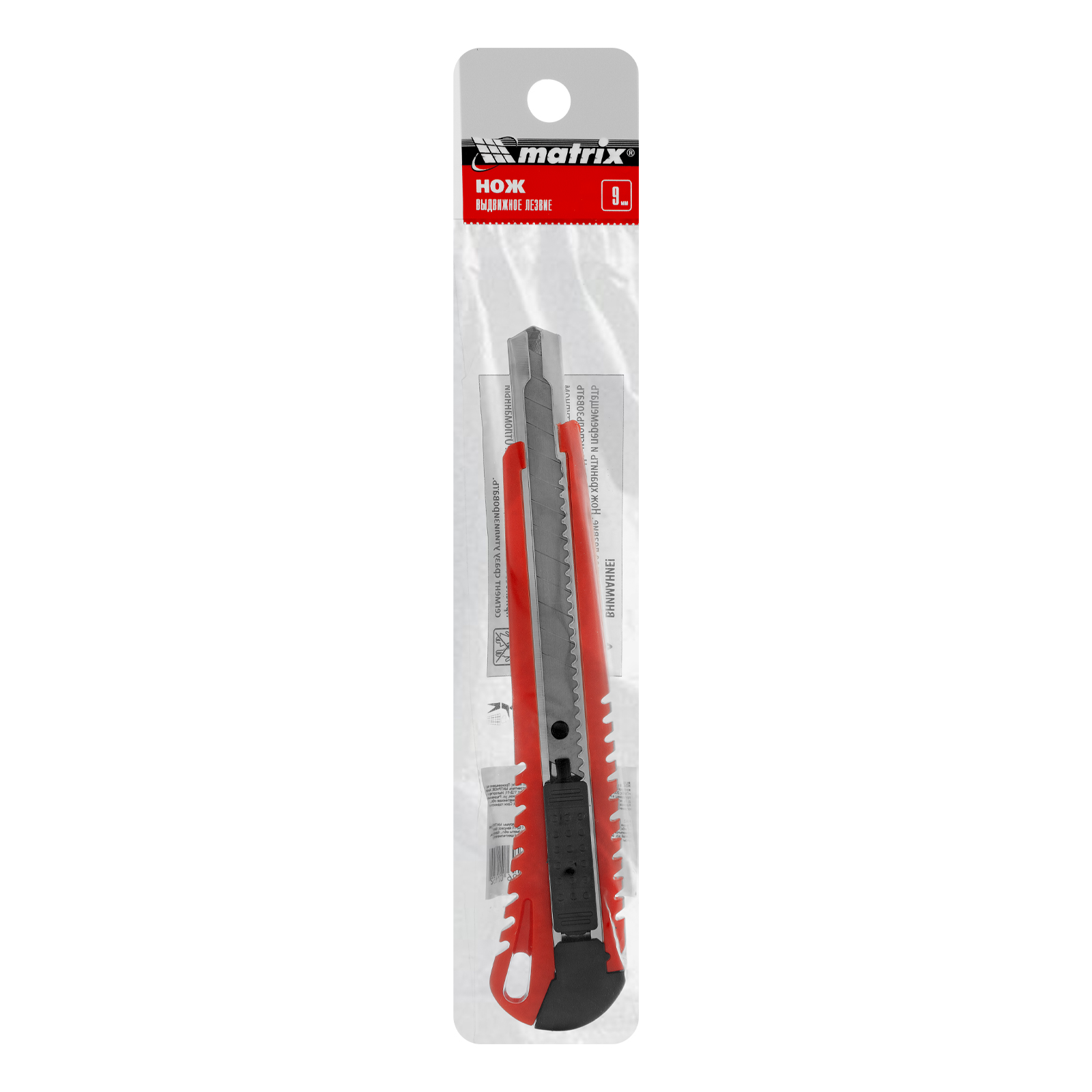 Нож Matrix 78909 с выдвижным лезвием шириной 9 мм и металлической направляющей подходит для профессионального и бытового использования. С его помощью можно разрезать картон, бумагу, скотч, кожу или обои. Инструмент прослужит долго, т.к. металлическая направляющая увеличивает его прочность.