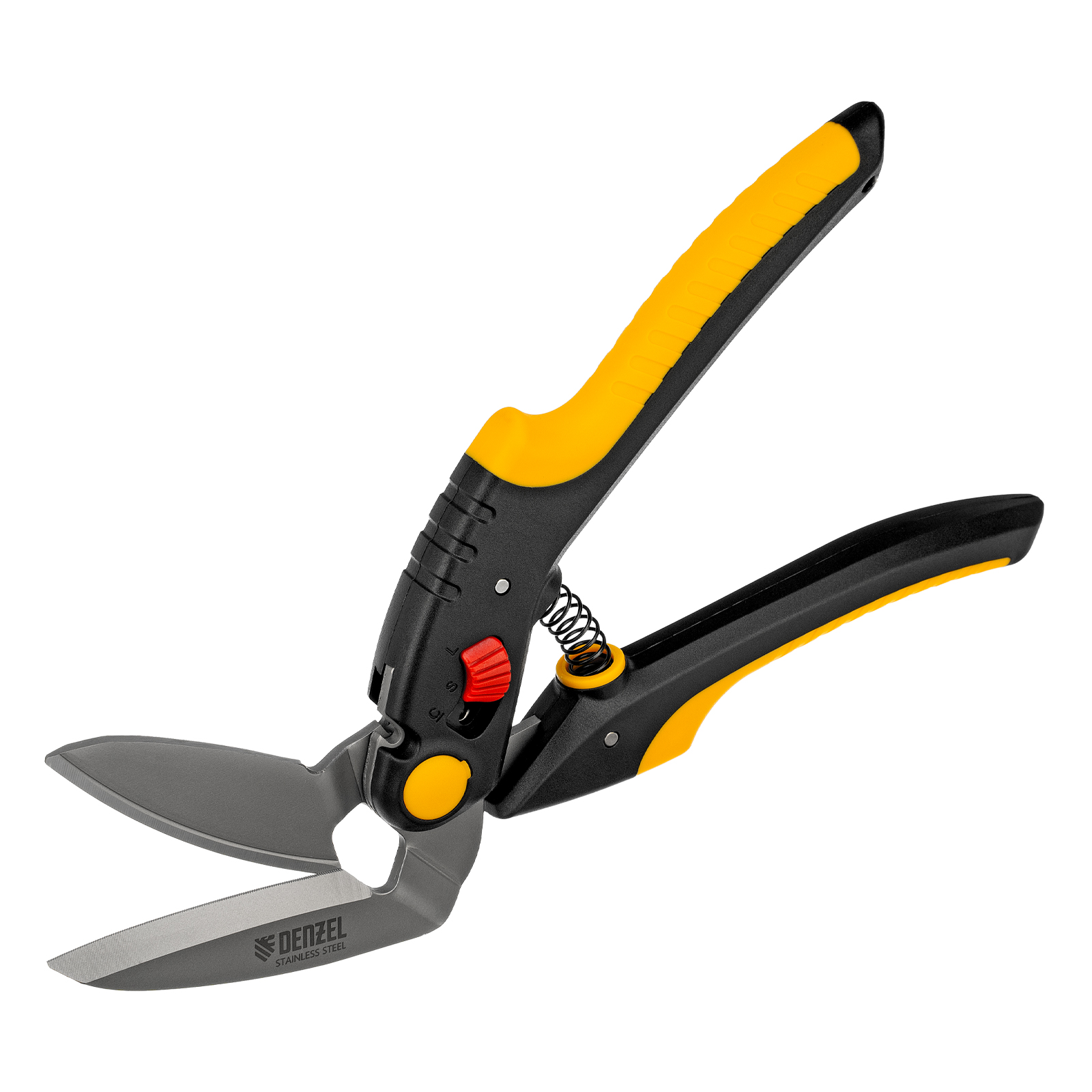 - Безопасность — фиксатор удерживает рукоятки в нерабочем положении, поэтому ножницы не раскроются при хранении или транспортировке.