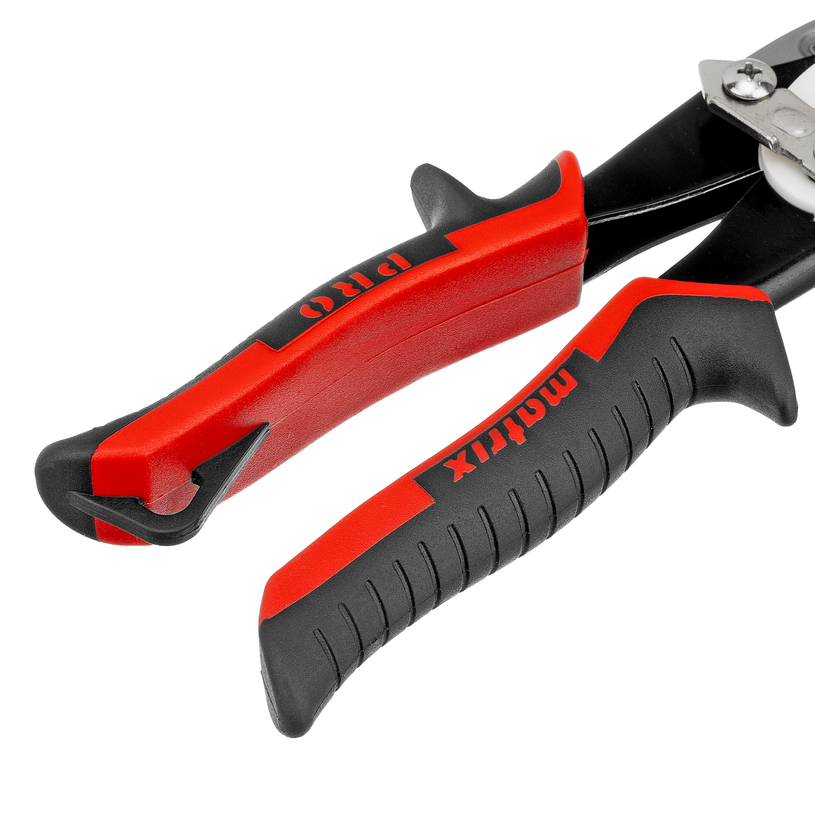 Ножницы по металлу Matrix PRO 78322 длиной 250 мм, из стали CrMo, с двухкомпонентными рукоятками, предназначены для прямого реза листовых и профильных металлических заготовок, в том числе стали толщиной до 1,2 мм и нержавеющей стали толщиной до 0,8 мм. Двойной рычажный механизм позволяет прикладывать значительное усилие при резке толстого материала. Для удобства работы на корпусе имеется маркировка с указанием направления резания. Ножницы будут полезны в профессиональной и домашней мастерской.