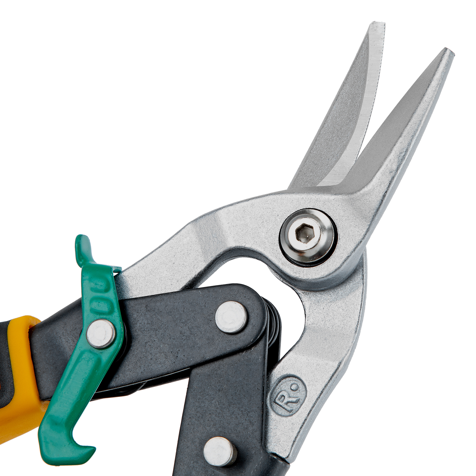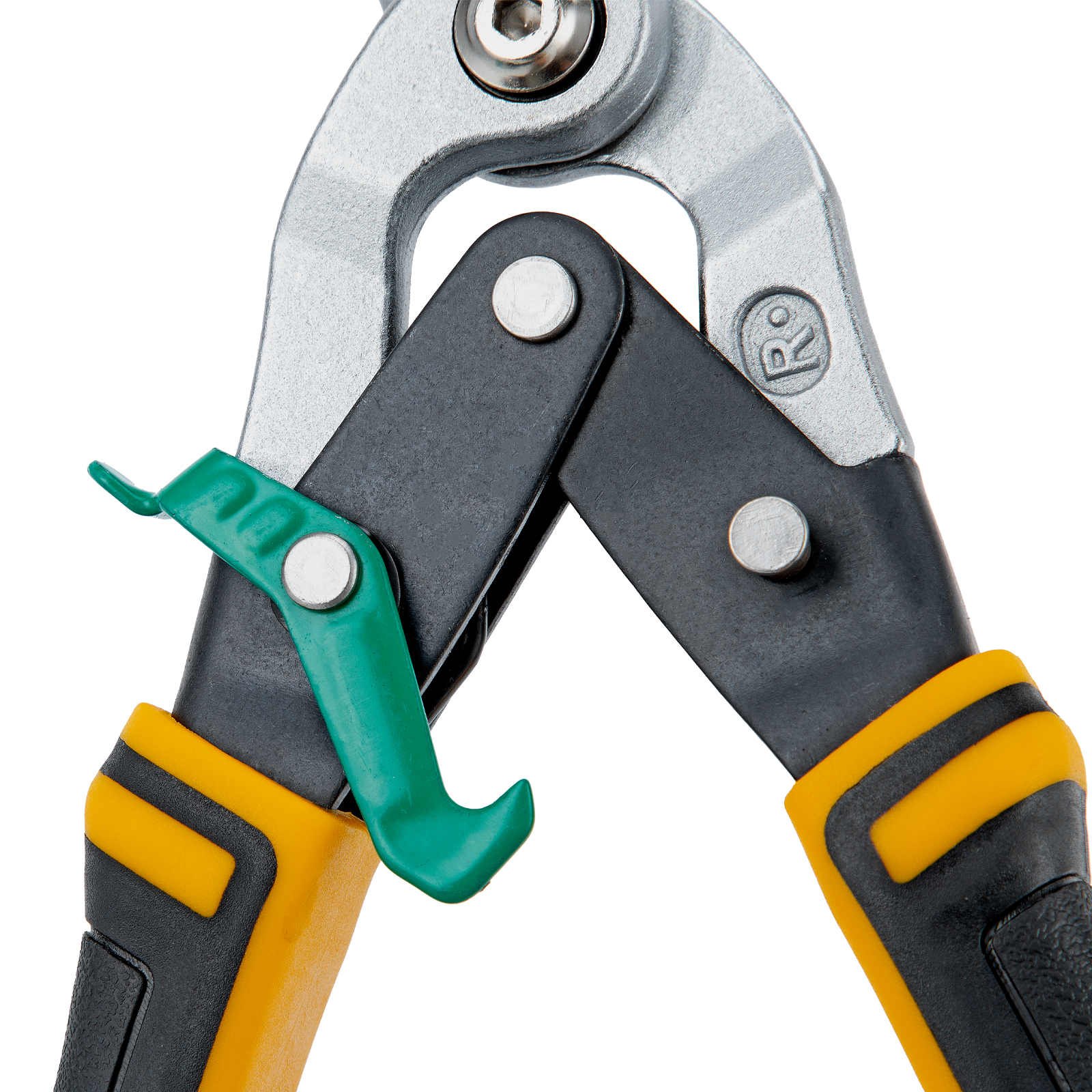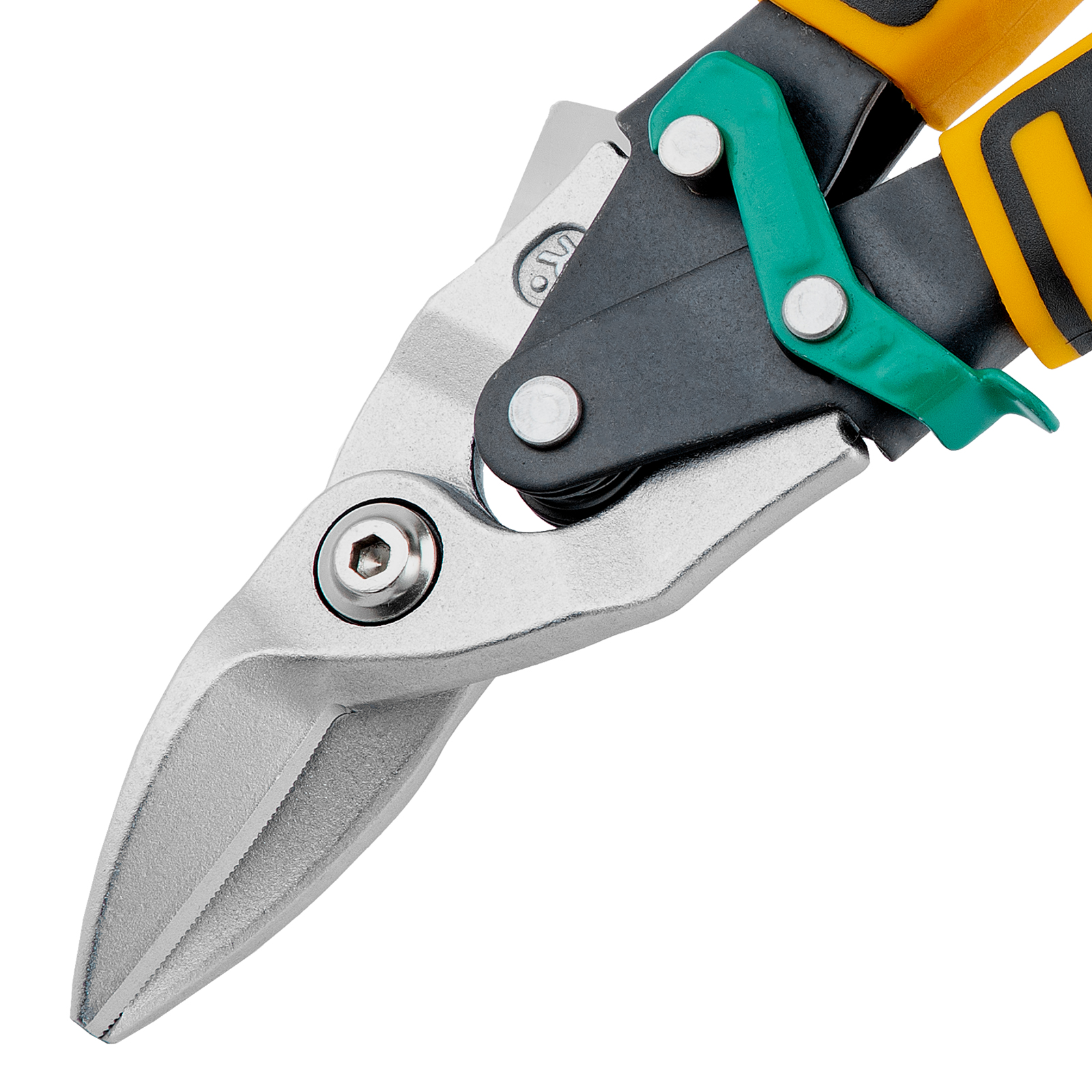 Ножницы по металлу Denzel 78371 общей длиной 270 мм, из стали-CrMo, с трехкомпонентными рукоятками, предназначены для прямого и правого реза листовых металлических заготовок и металлопрофиля толщиной до 1,2 мм. Инструмент с усиленной конструкцией осевого шарнира рассчитан на профессиональное использование. Ножницы используются для проведения строительных, кровельных и слесарных работ.