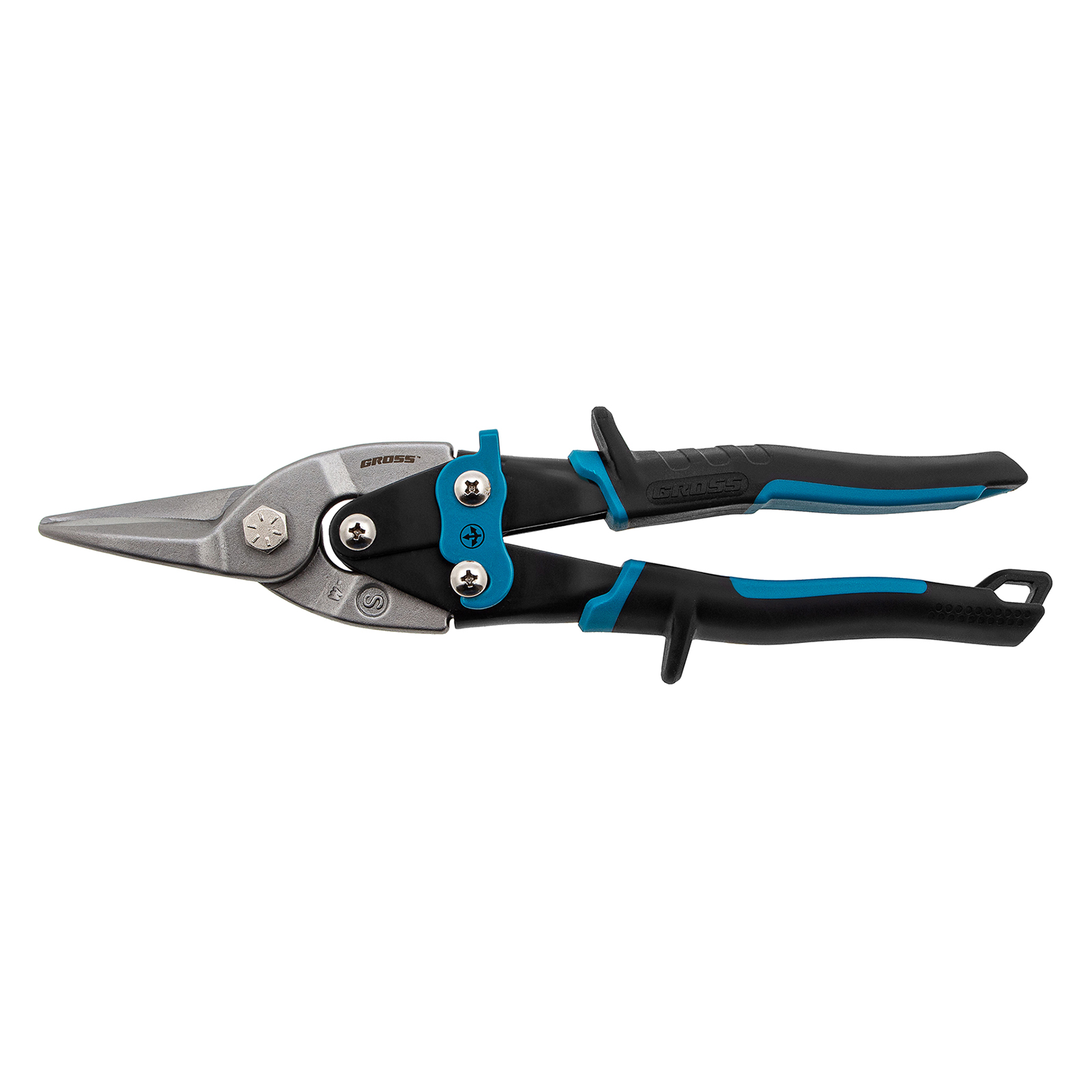 Ножницы по металлу Gross PIRANHA 78325 длиной 250 мм, из стали CrMo, с двухкомпонентными рукоятками, предназначены для точного прямого реза по листовым заготовкам. Двойной рычажный механизм уменьшает нагрузку на руку при резке толстого металла. Ножницы справляются с холоднокатаной сталью толщиной до 1,2 мм и с нержавеющей сталью толщиной до 0,7 мм. Инструмент используется для проведения профессиональных слесарных работ.