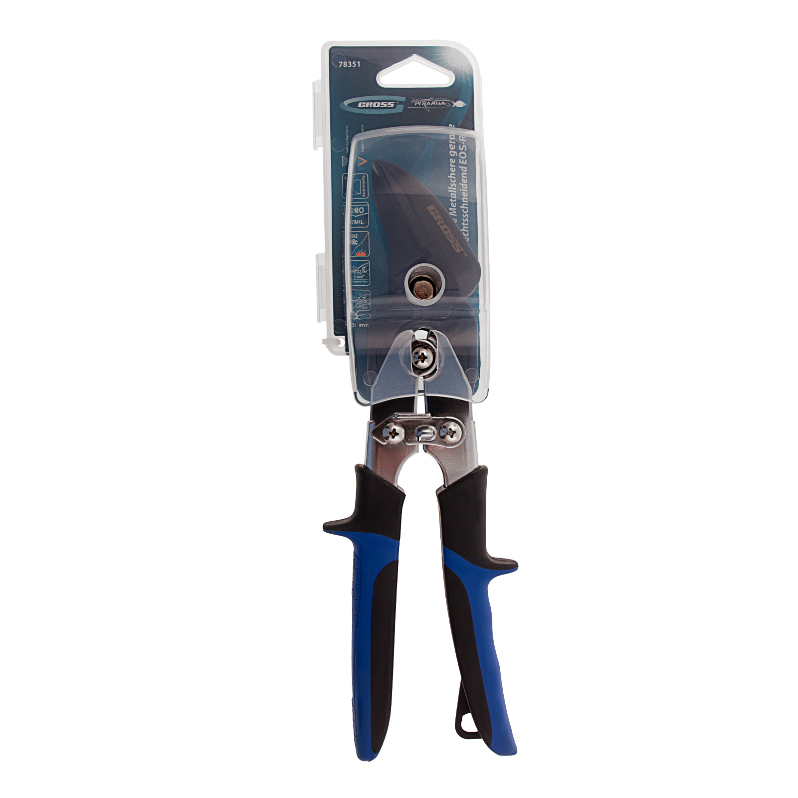 Усиленные ножницы по металлу Gross PIRANHA 78351 длиной 255 мм, из стали CrMo, с двухкомпонентными рукоятками, предназначены для прямого и криволинейного правого реза по листовым заготовкам. Режут металл разных марок толщиной до 1,2 мм, а также нержавеющую сталь толщиной до 0,94 мм. Двойной рычажный механизм уменьшает нагрузку на руку, передавая при этом значительное усилие. Ножницы используются при проведении строительных, монтажных работ, будут полезны и в быту.