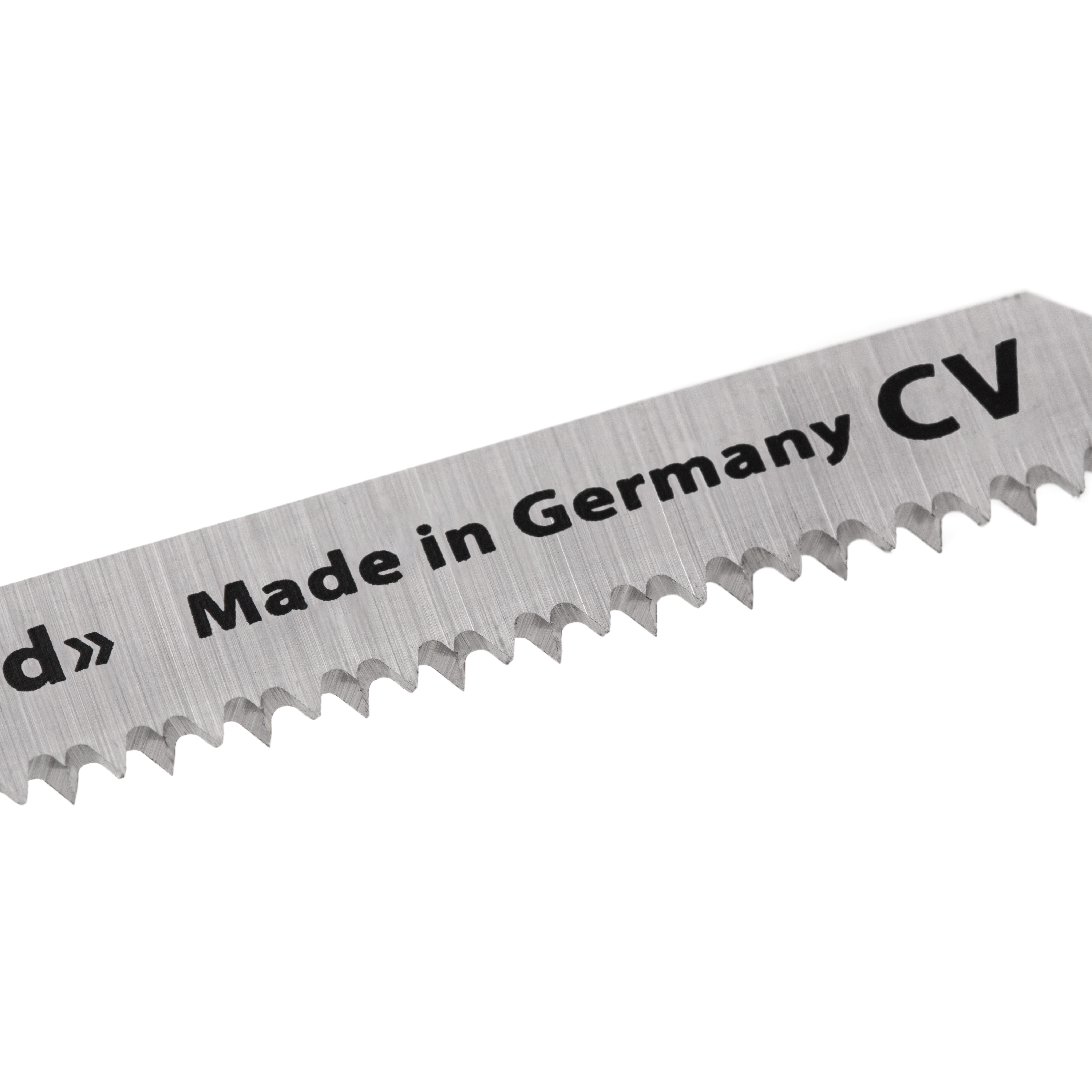 - Максимально чистый рез — полотна изготовлены в Германии на высокотехнологичном производстве, подверглись лазерной раскройке профиля, автоматизированной заточке и шлифовке.