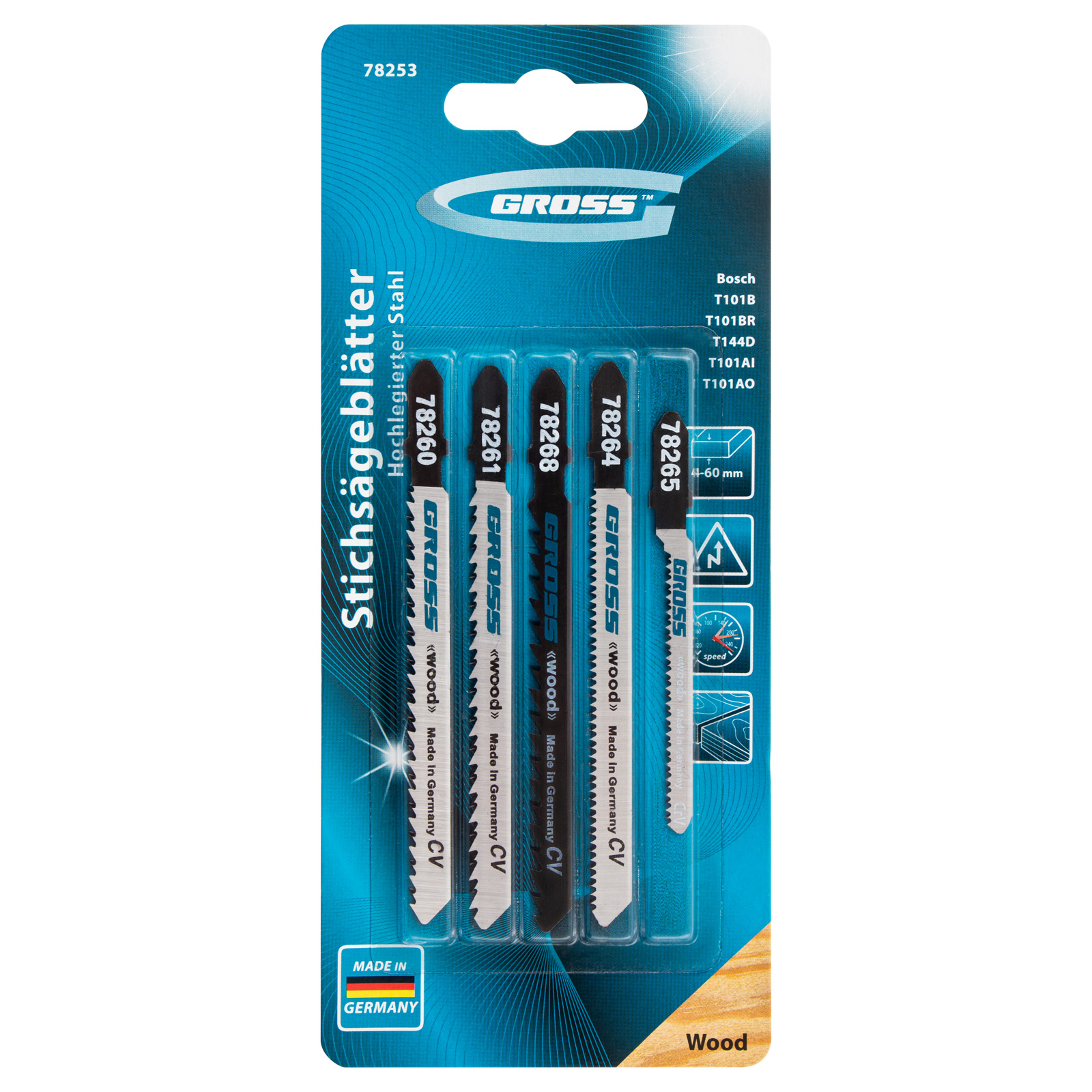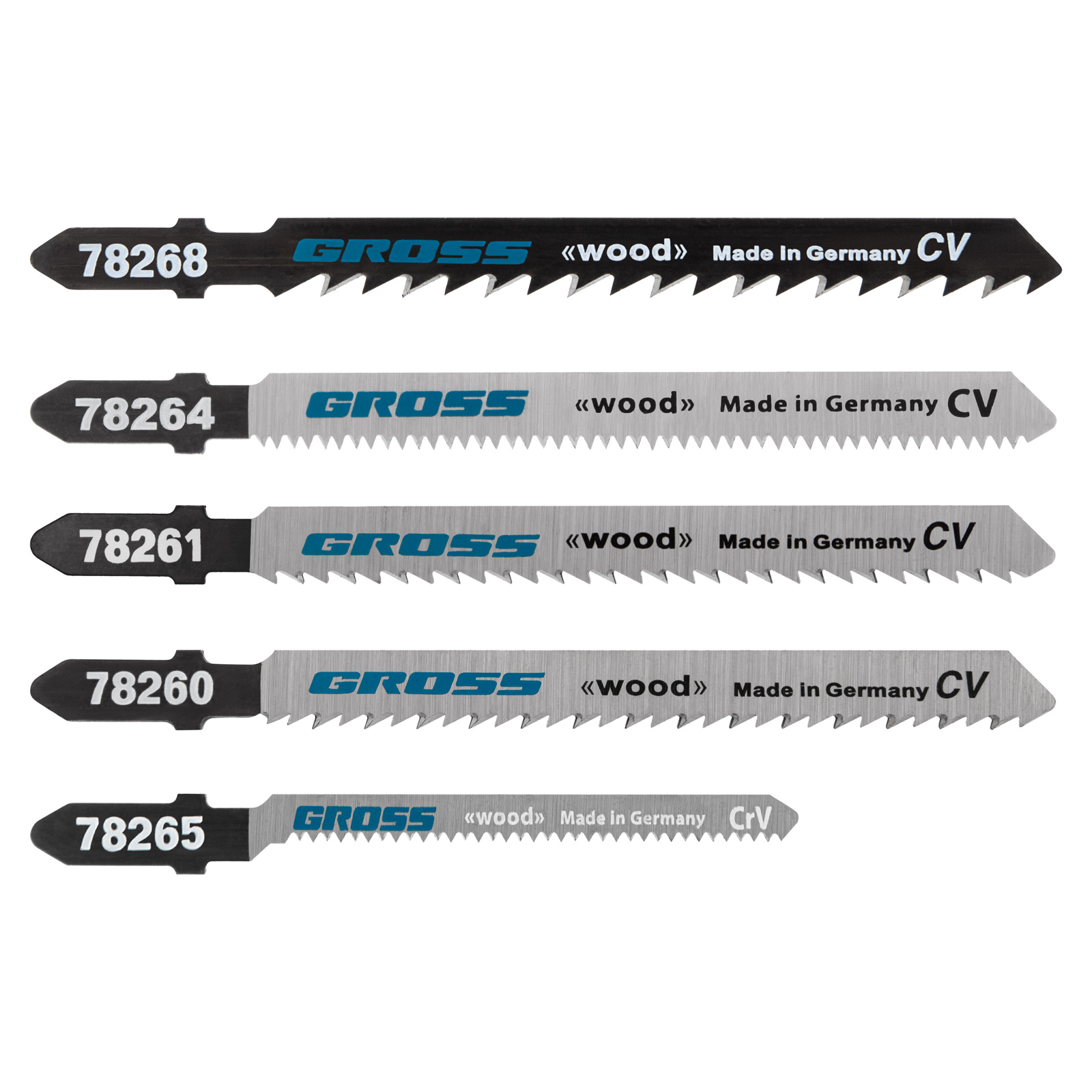 Набор полотен для электролобзика Gross 78253, 5 шт., предназначен для распила деревянных изделий, ДСП и ДВП. Все режущие элементы в наборе имеют отшлифованную под конус боковую поверхность полотна, поэтому оставляют аккуратную и ровную кромку на месте распила. Набор пригодится частным мастерам и профессионалам на стройке и в мастерской.
