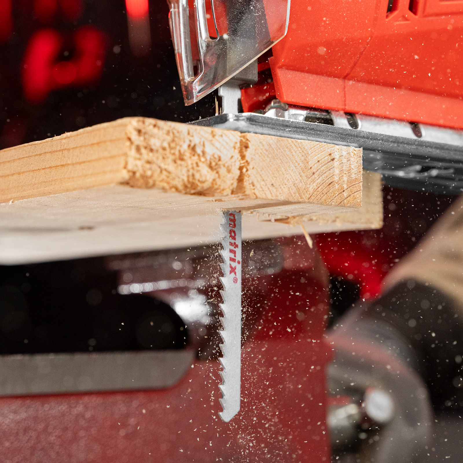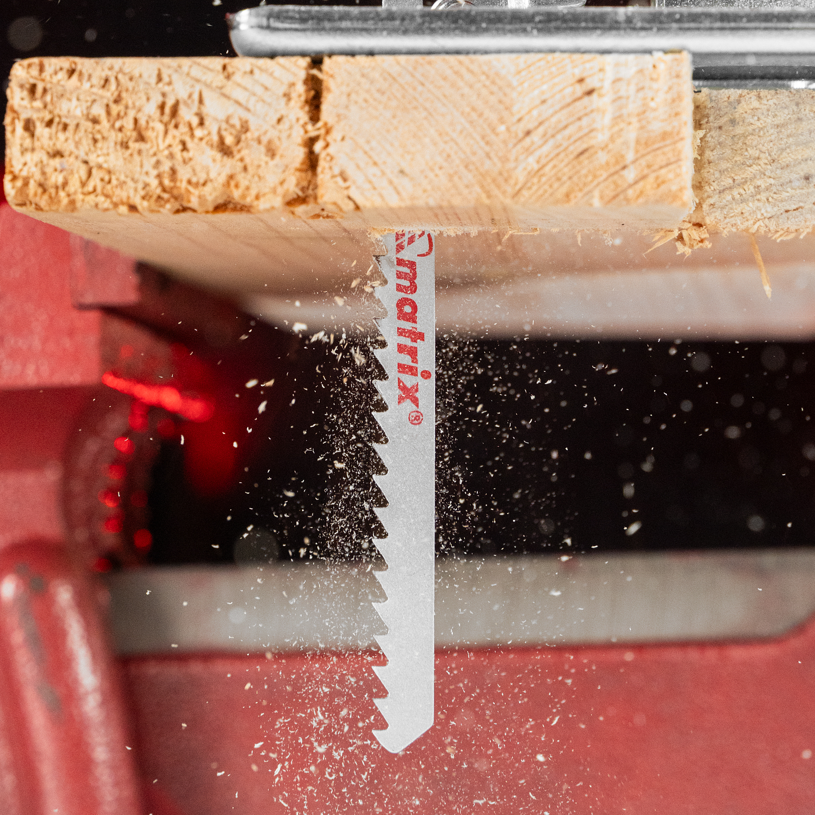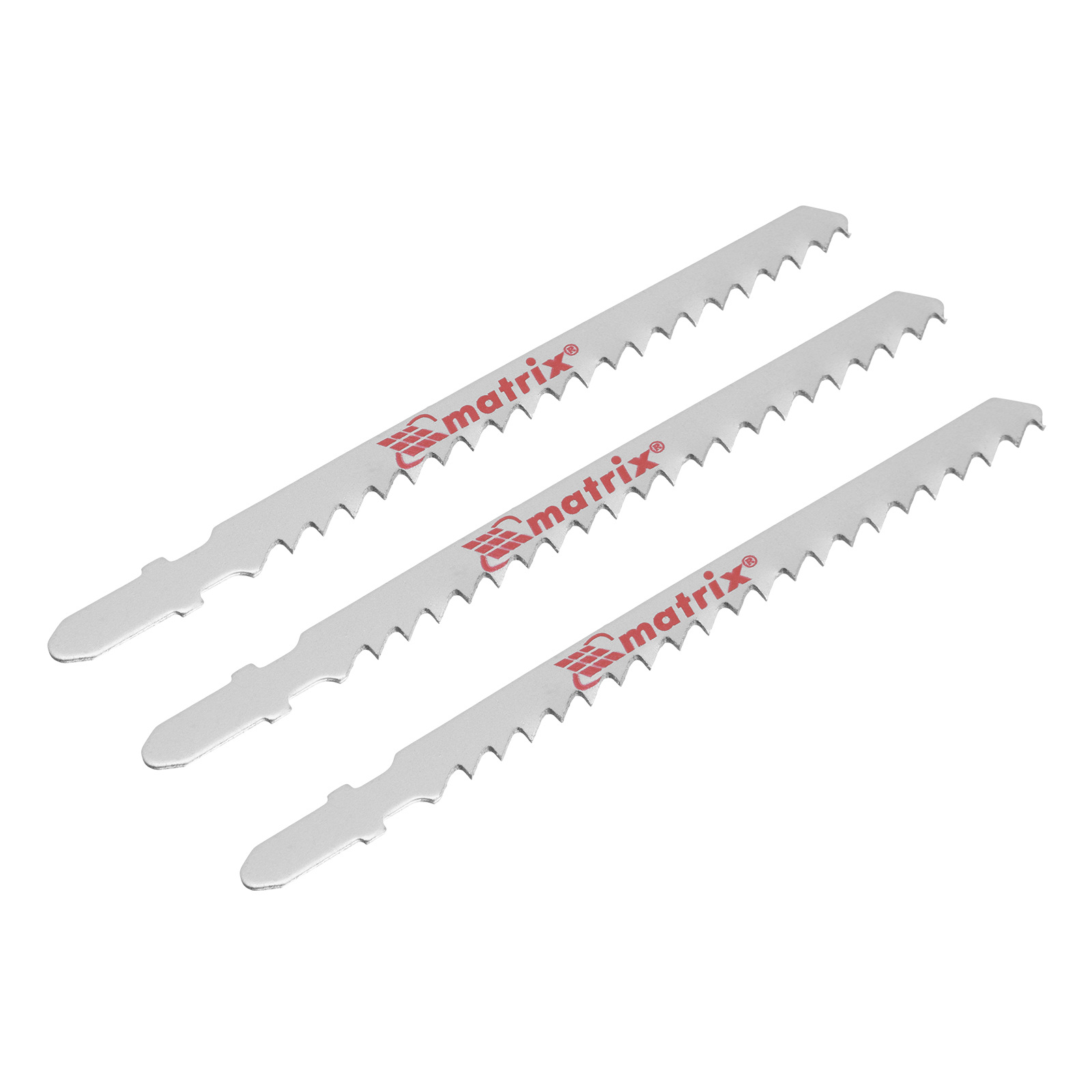 Полотна для электролобзика по дереву Matrix 78142 с рабочей длиной 90 мм и шагом зубьев 4 мм, из стали HCS, с EU-хвостовиком, 3 шт. в упаковке, — элементы оснастки электрического пильного инструмента. Применяются для распила древесины, фанеры, ДСП и пластика. Классическая разводка зубьев позволяет уменьшить нагрев полотен и повысить скорость пиления. Полотна подходят для профессионального использования и применения в домашних условиях.