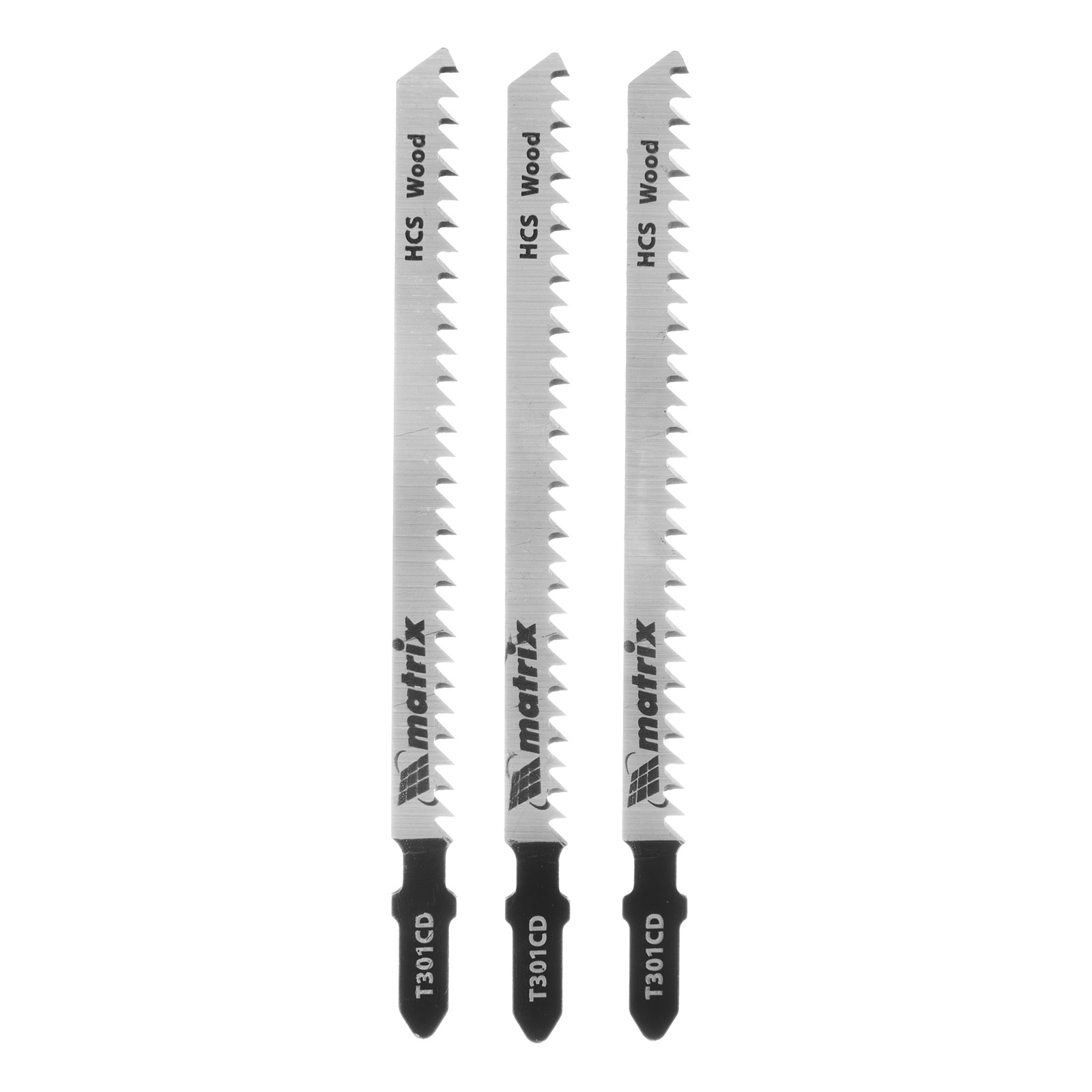 Полотна для электролобзика Matrix 78216, T301CD с рабочей длиной 90 мм и шагом зубьев 3 мм, из стали HCS, 3 шт. в упаковке, используются для работ по фанере, дереву, ДСП, ДВП и пластику. Распиливают заготовки толщиной 5-90 мм. Стандартный Т-образный хвостовик совместим с зажимами большинства современных лобзиков. Полотна подходят для профессионального и бытового использования.