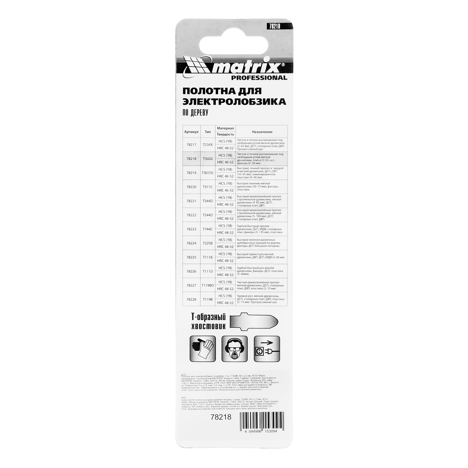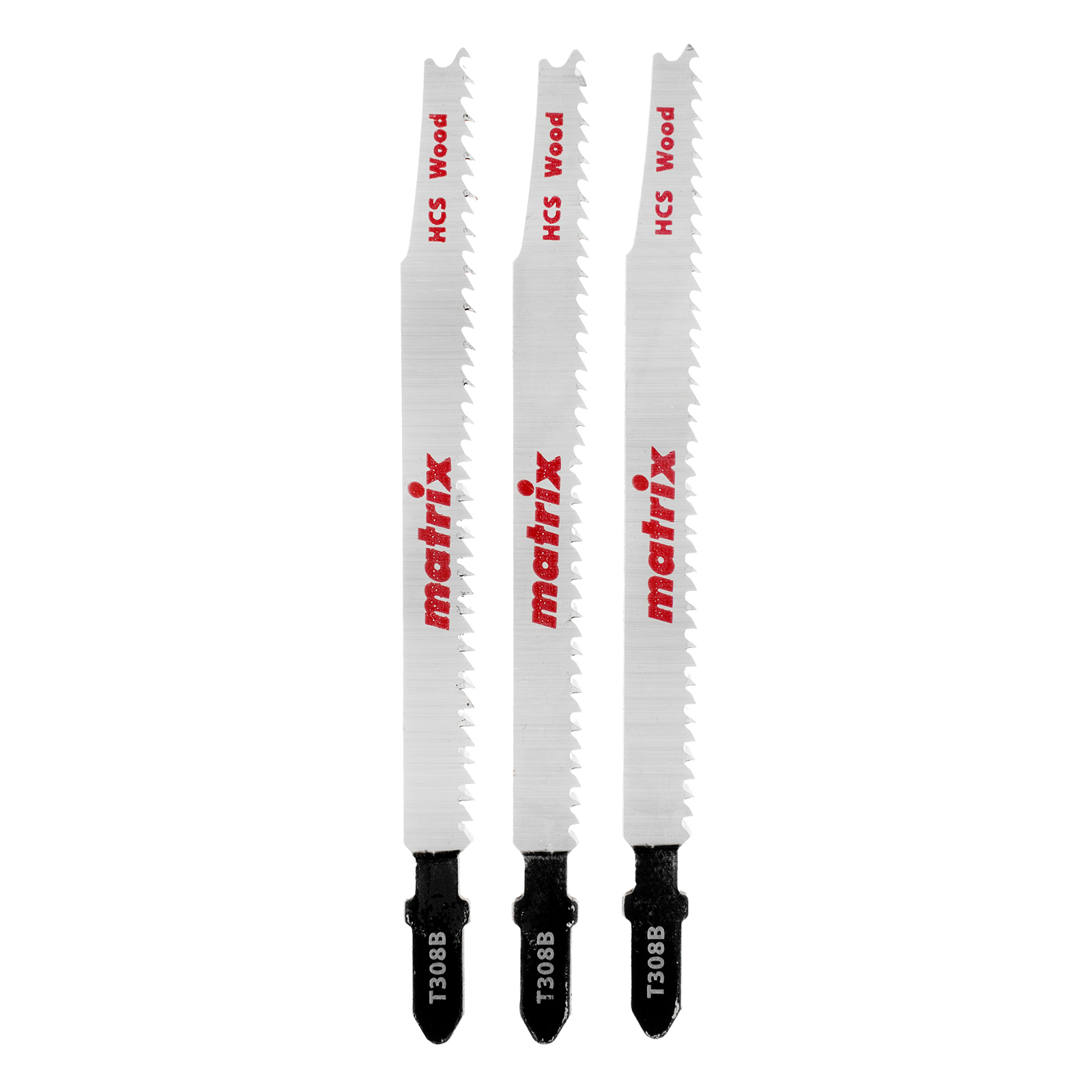 Полотна для электролобзика по дереву T308B Matrix 78218 с рабочей длиной 90 мм и шагом зубьев 2,2 мм, из стали HCS, 3 шт. в упаковке, позволяют распиливать древесину мягких пород, фанеру и ДСП толщиной 5-50 мм под свободным углом. Совместимы с электролобзиками, поддерживающими оснастки с Т-образными хвостовиками. Полотна пригодятся во время ремонта, будут полезны в столярной мастерской, дома или на даче.