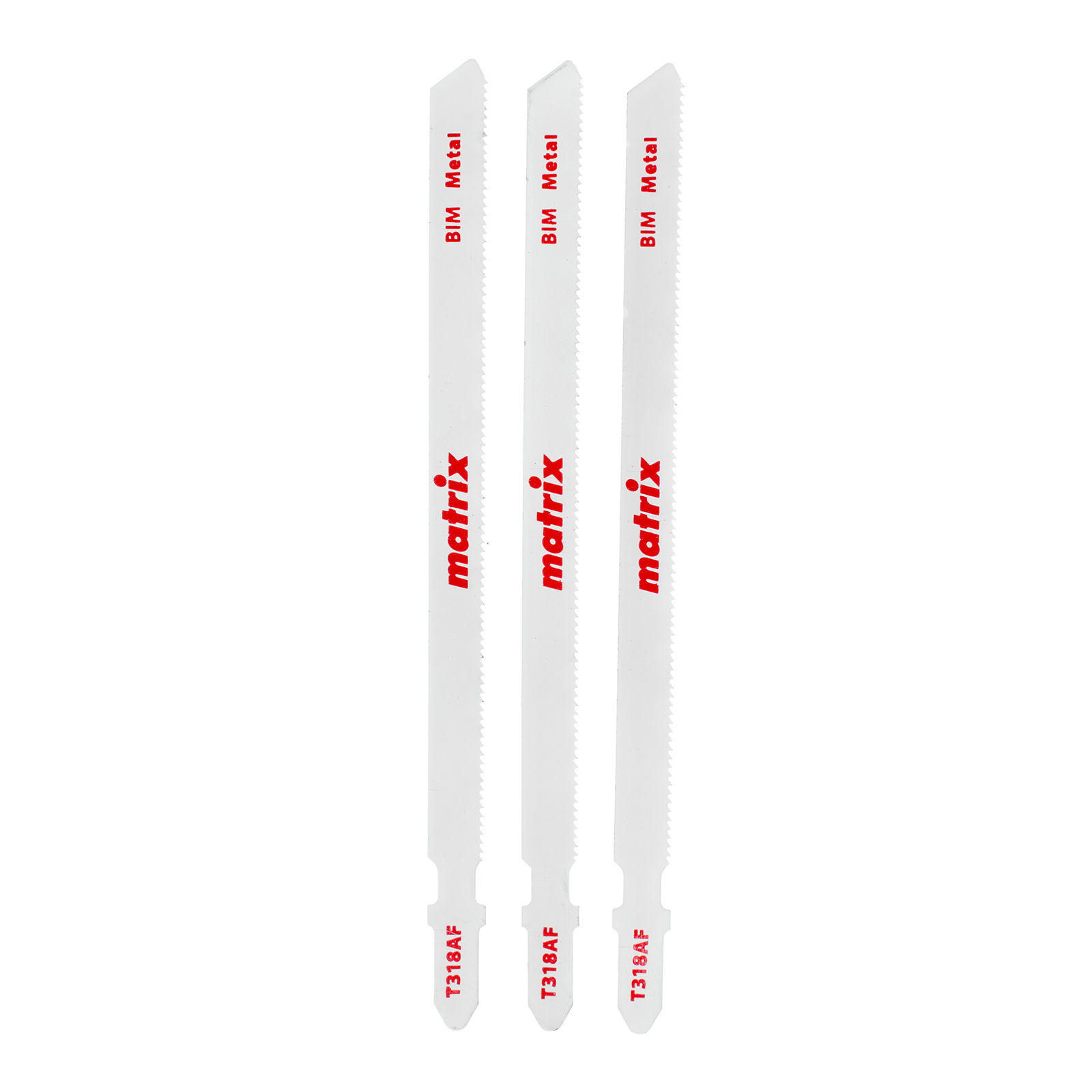 Полотна для электролобзика T318AF Matrix 78236 с рабочей длиной 110 мм и шагом зубьев 1,2 мм, биметаллические (Bimetal), 3 шт. в упаковке, предназначены для распиловки металла толщиной до 65 мм, а также труб и алюминиевых профилей. Подходят для резки цветных металлов. Пилки являются оснасткой для электролобзиков с зажимами под Т-образный хвостовик. Будут полезны при выполнении ремонтных и слесарно-монтажных работ.