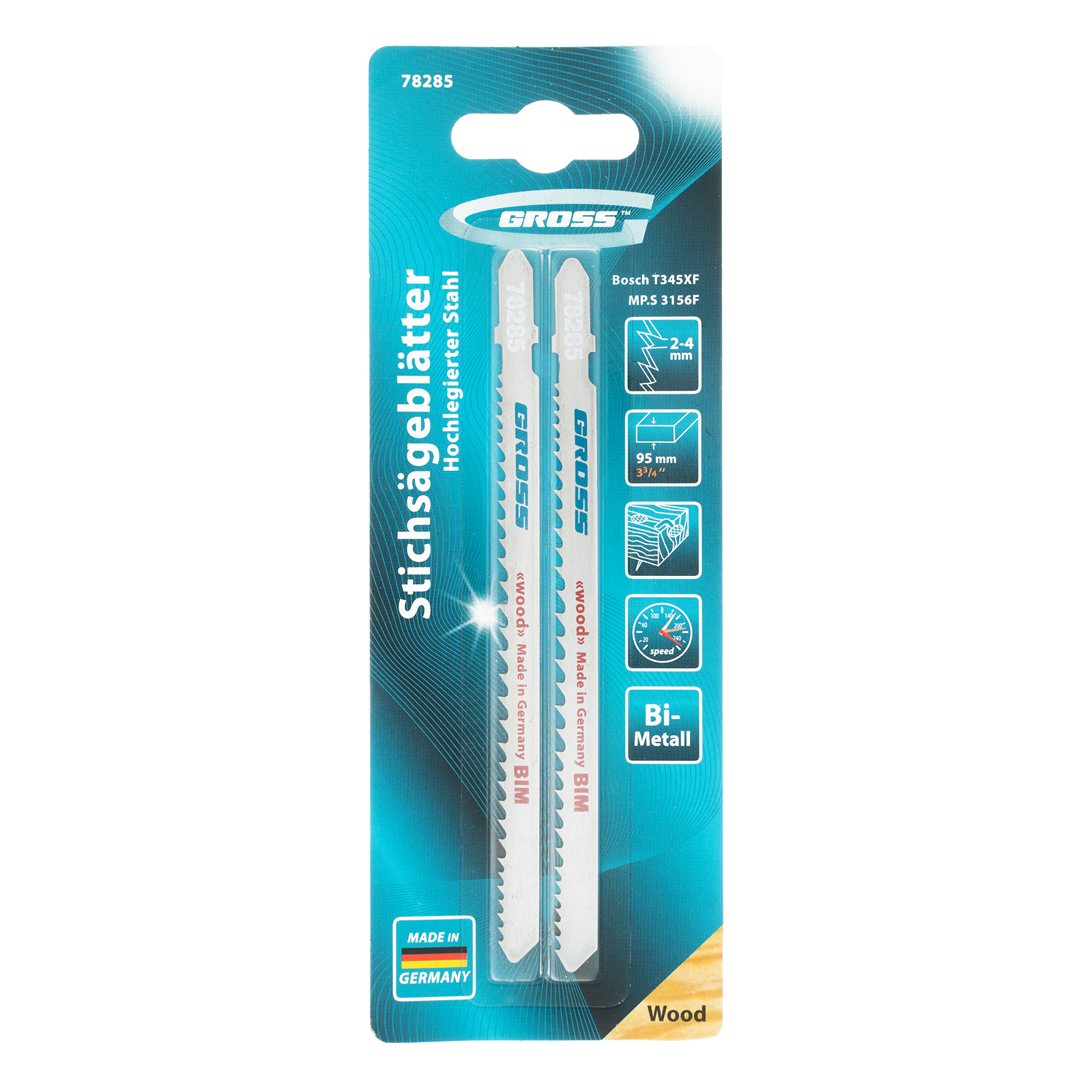 Полотна для электролобзика Gross Profi 78285, 2 шт. (3156F - T345XF), рассчитаны на пильные работы по металлу и древесине. Также они подходят для резки композитных изделий, содержащих мелкие металлические предметы: гвозди, проволоку и т.д. Полотна высокого качества относятся к профессиональному классу инструмента. За счет длины 132 мм и толщины 1,27 мм они могут распиливать заготовки толщиной до 95 мм.