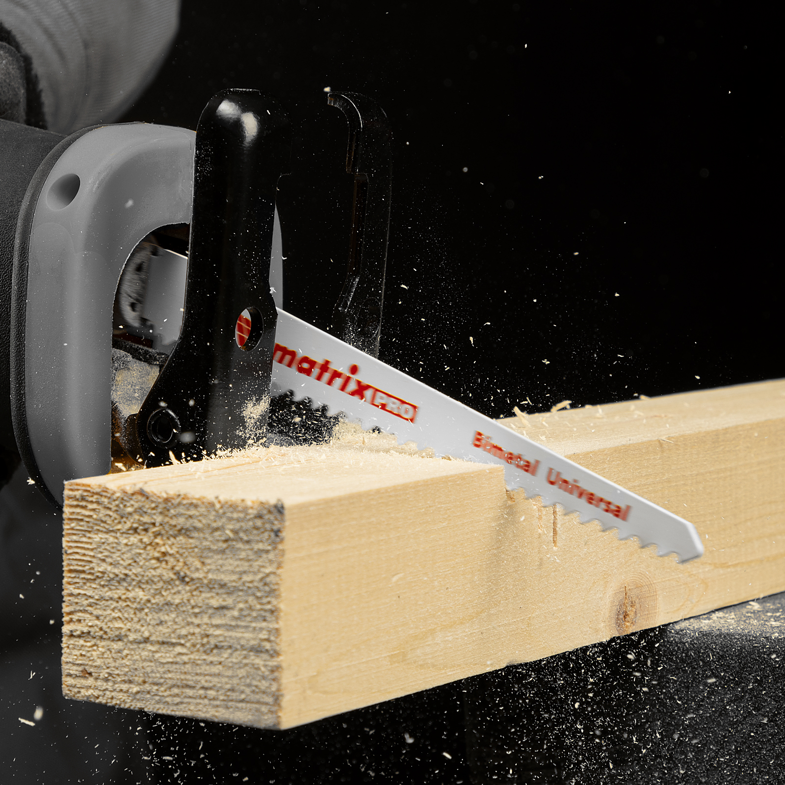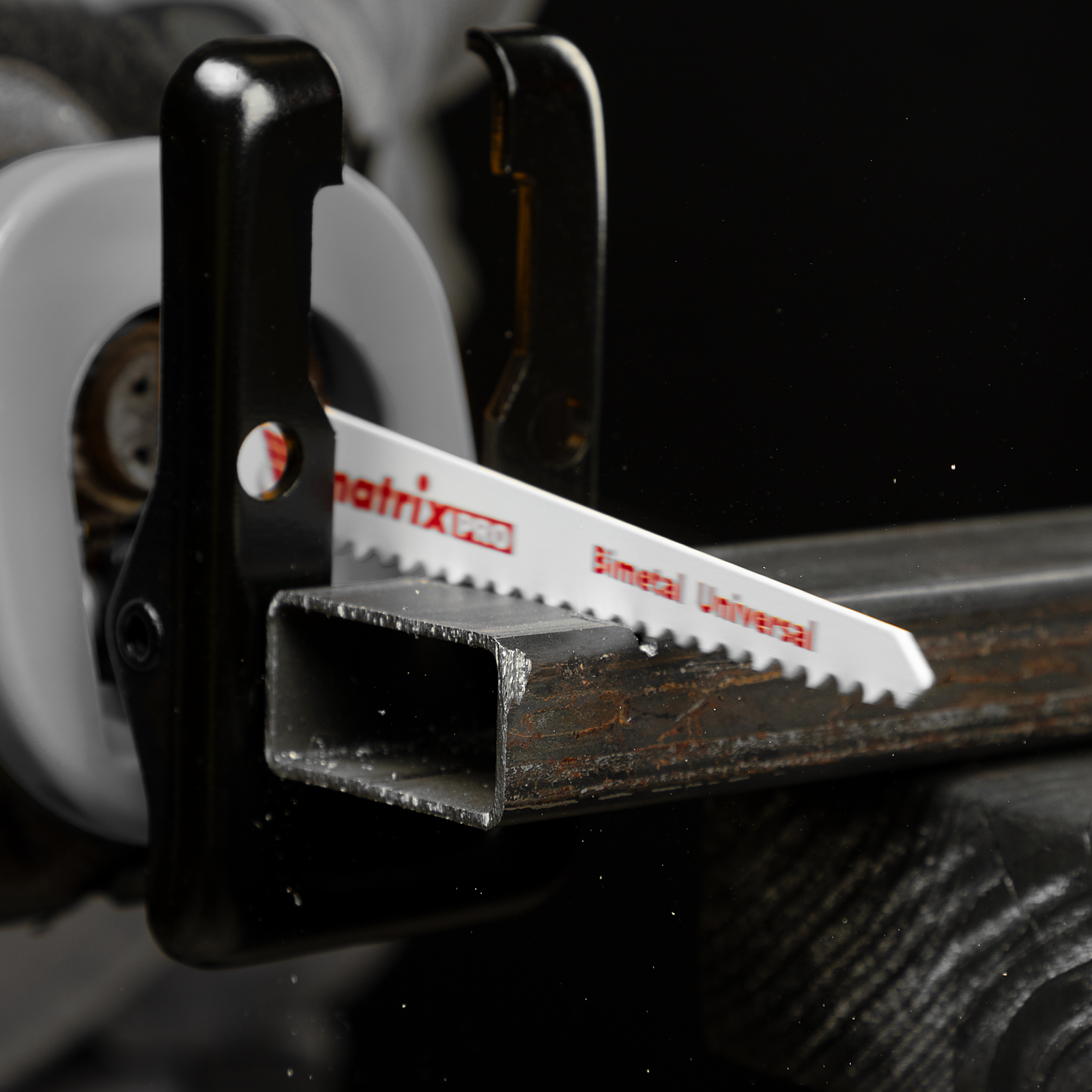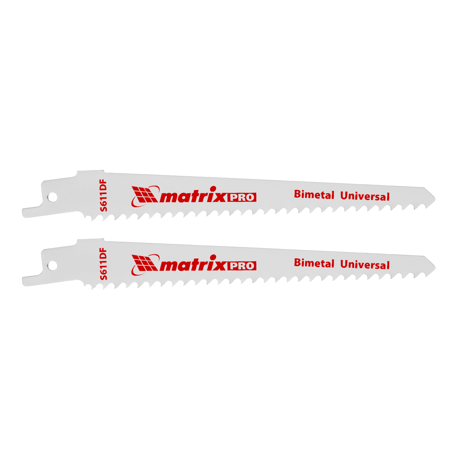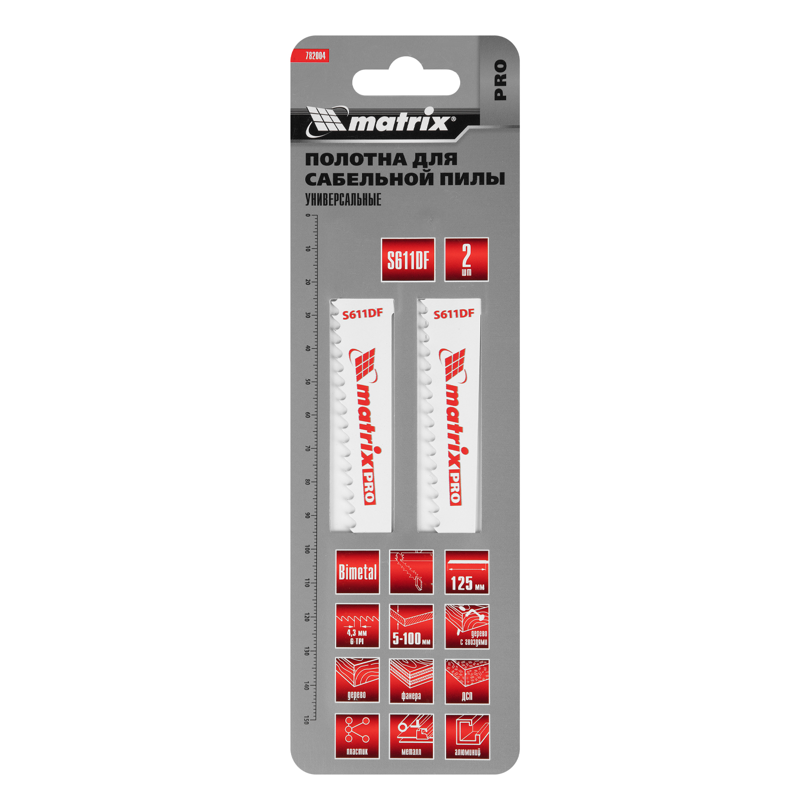 Универсальные полотна для сабельной пилы S611DF Matrix PRO 782004 с шагом зубьев 4,3 мм, биметаллические (Bimetal), 2 шт. в упаковке, имеют рабочую длину 125 мм и позволяют быстро и качественно распиливать заготовки из древесины, пластика, листового металла, фанеры, ДСП, справляются также с алюминиевыми профилями и древесиной с гвоздями. В зависимости от материала глубина распила составляет от 5 до 100 мм. Полотна пригодятся на строительной площадке, во время ремонта, демонтажа различных конструкций, будут полезны дома и на даче.