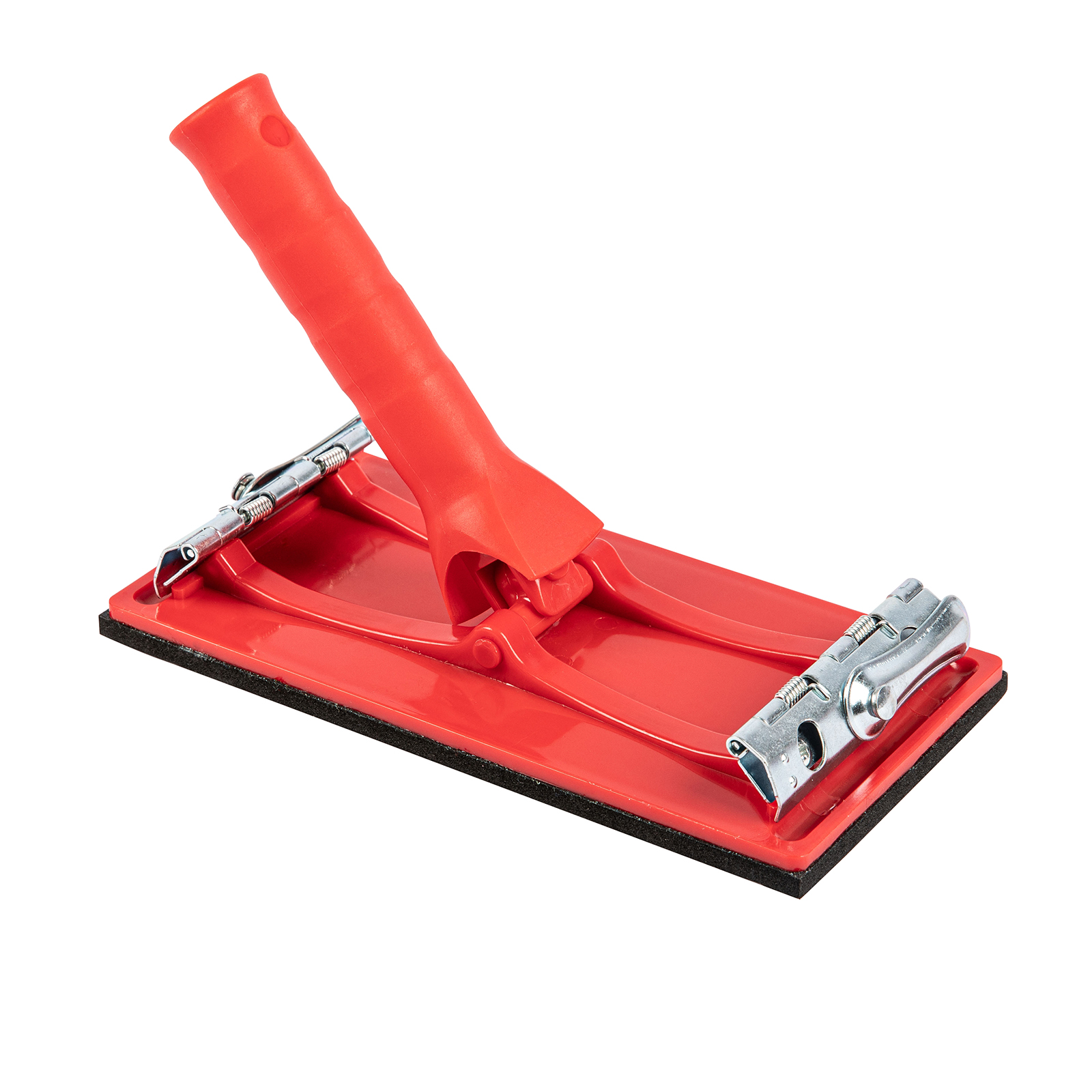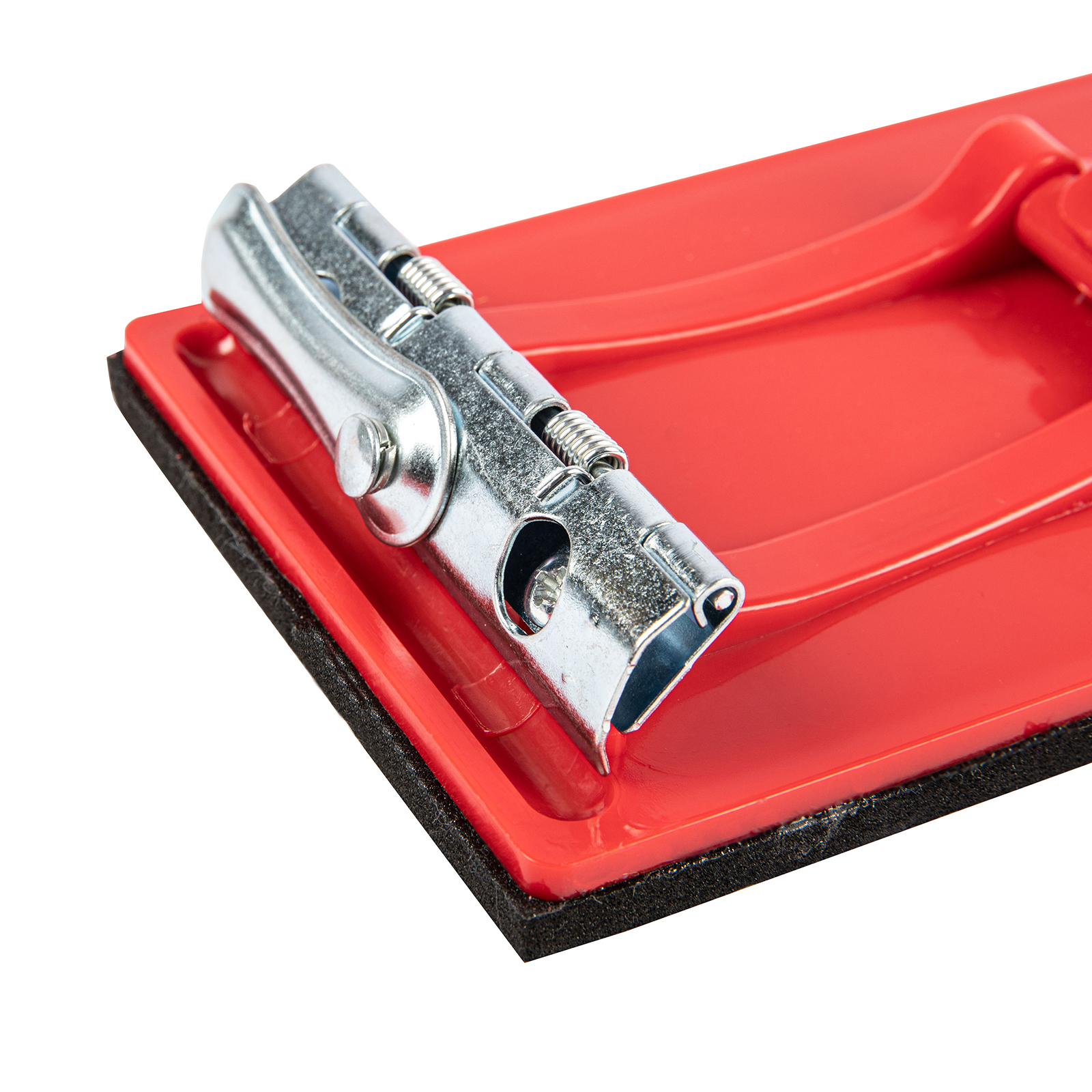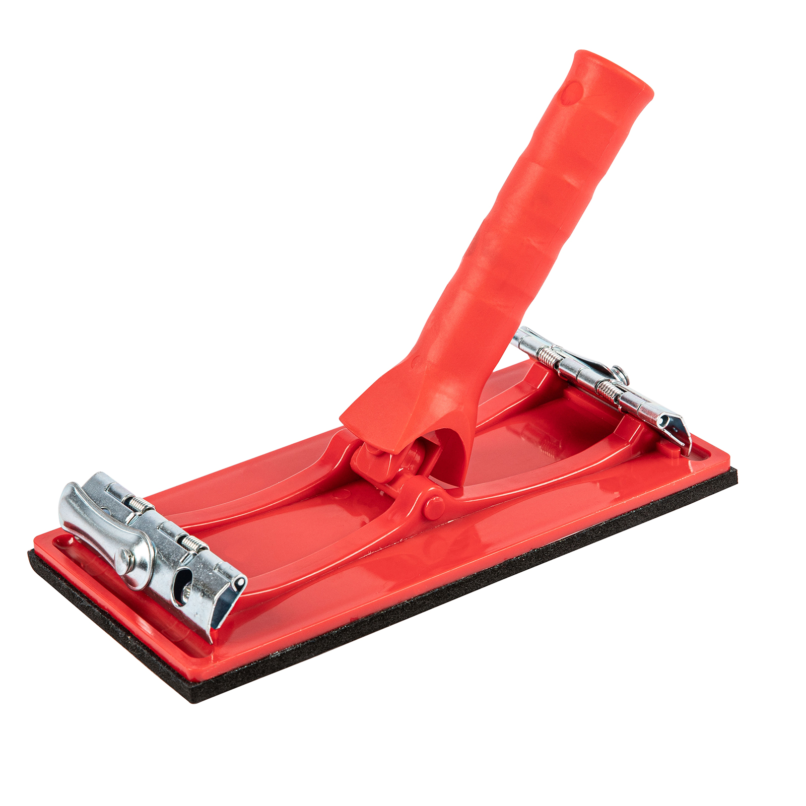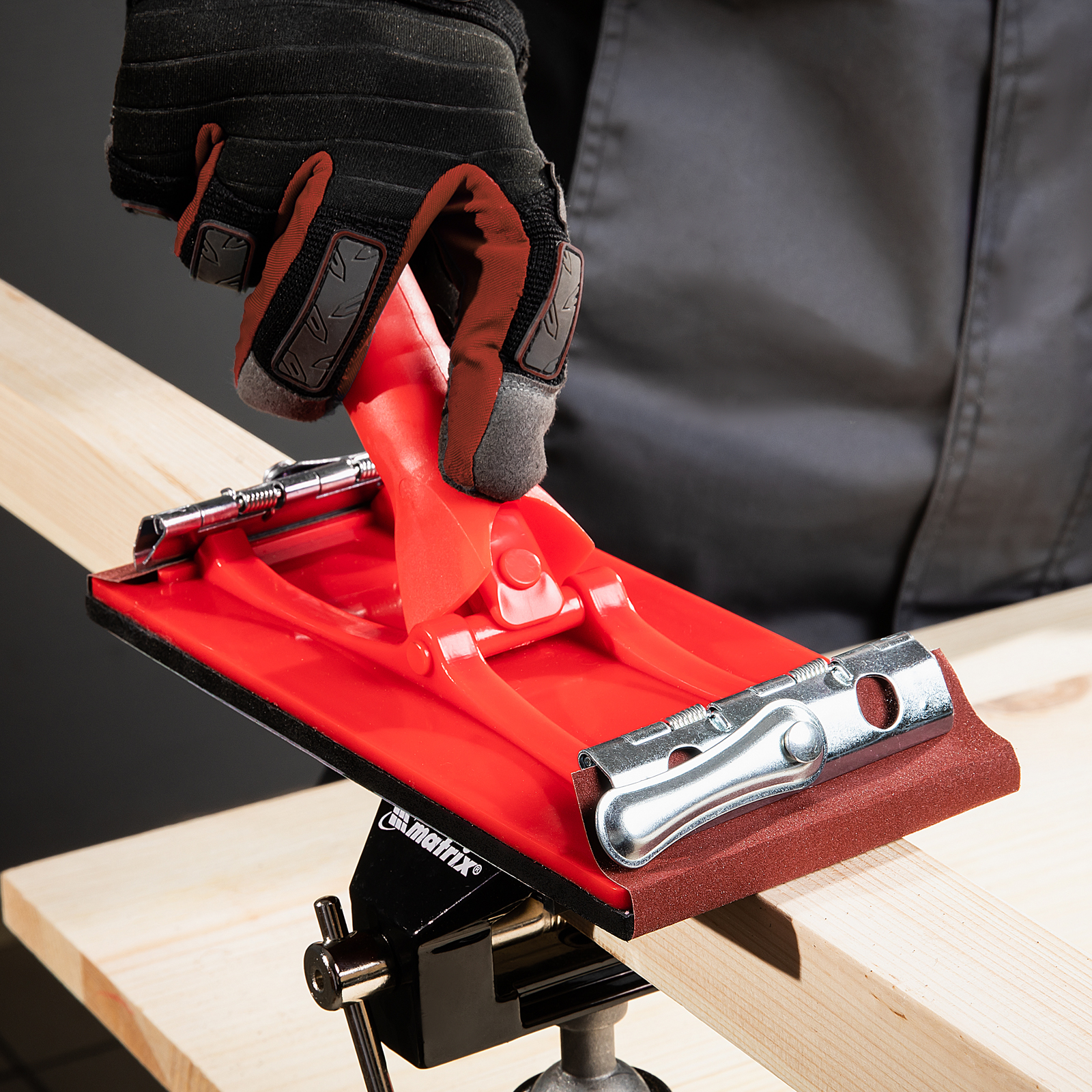 Шлифовальный брусок Matrix 75835 с подошвой размером 105 х 210 мм, с шарнирным переходником под телескопическую ручку, применяется совместно с абразивным листом или сеткой любой зернистости для обработки грунтованных и шпатлеванных поверхностей, изделий из древесины, металла, пластика и других материалов. Установка ручки позволяет шлифовать стены и потолки без стремянки, эффективно обрабатывать углы, скосы и прочие труднодоступные места.