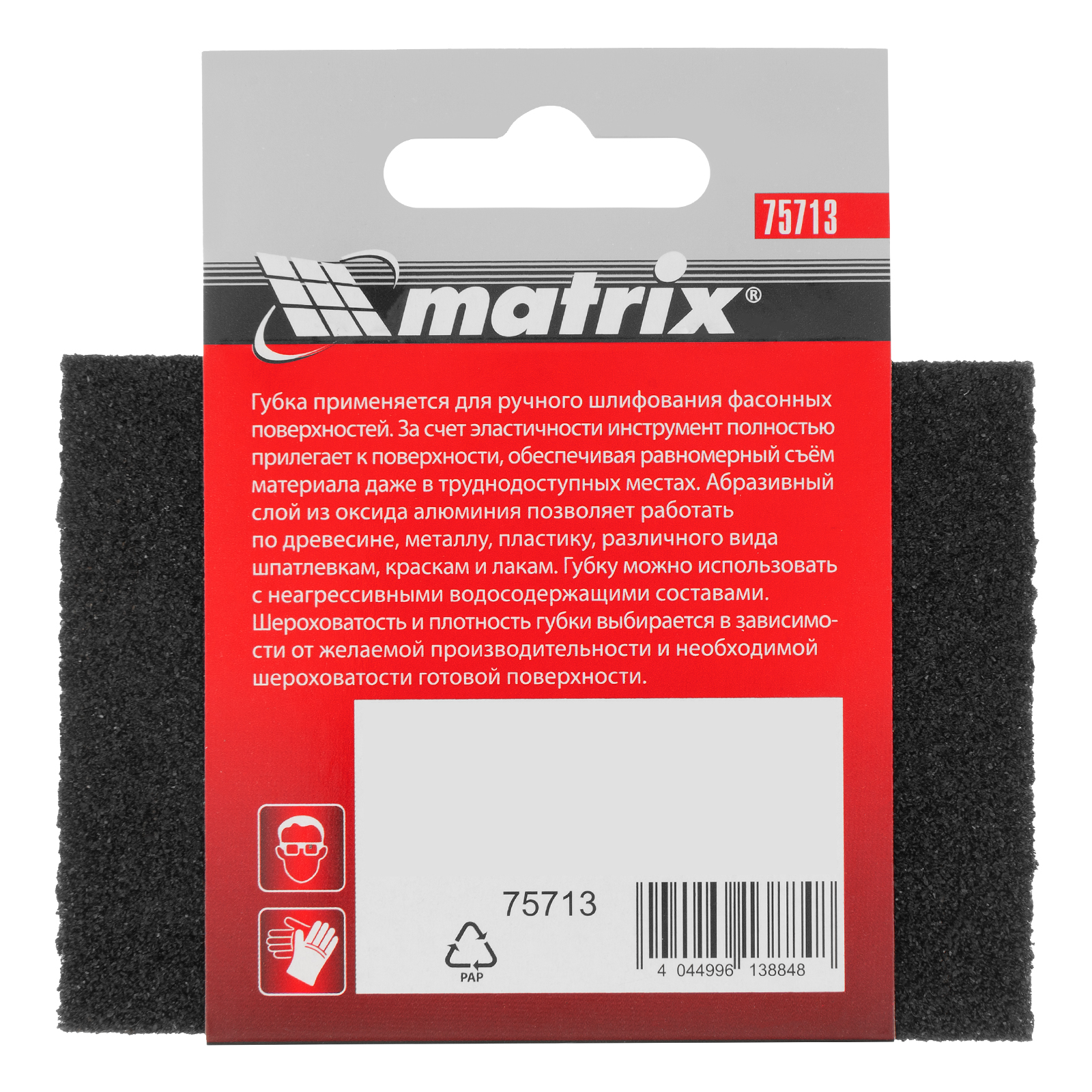 Губка для шлифования средней плотности Matrix 75713 размером 100 х 70 х 25 мм, с зернистостью P 80, используется для промежуточной шлифовки деревянных, пластиковых, металлических, шпаклеванных поверхностей, удаления слоя краски и ржавчины. Абразивная губка пригодится для проведения строительных, ремонтных, кузовных работ, будет полезна в изготовлении мебели и в быту.