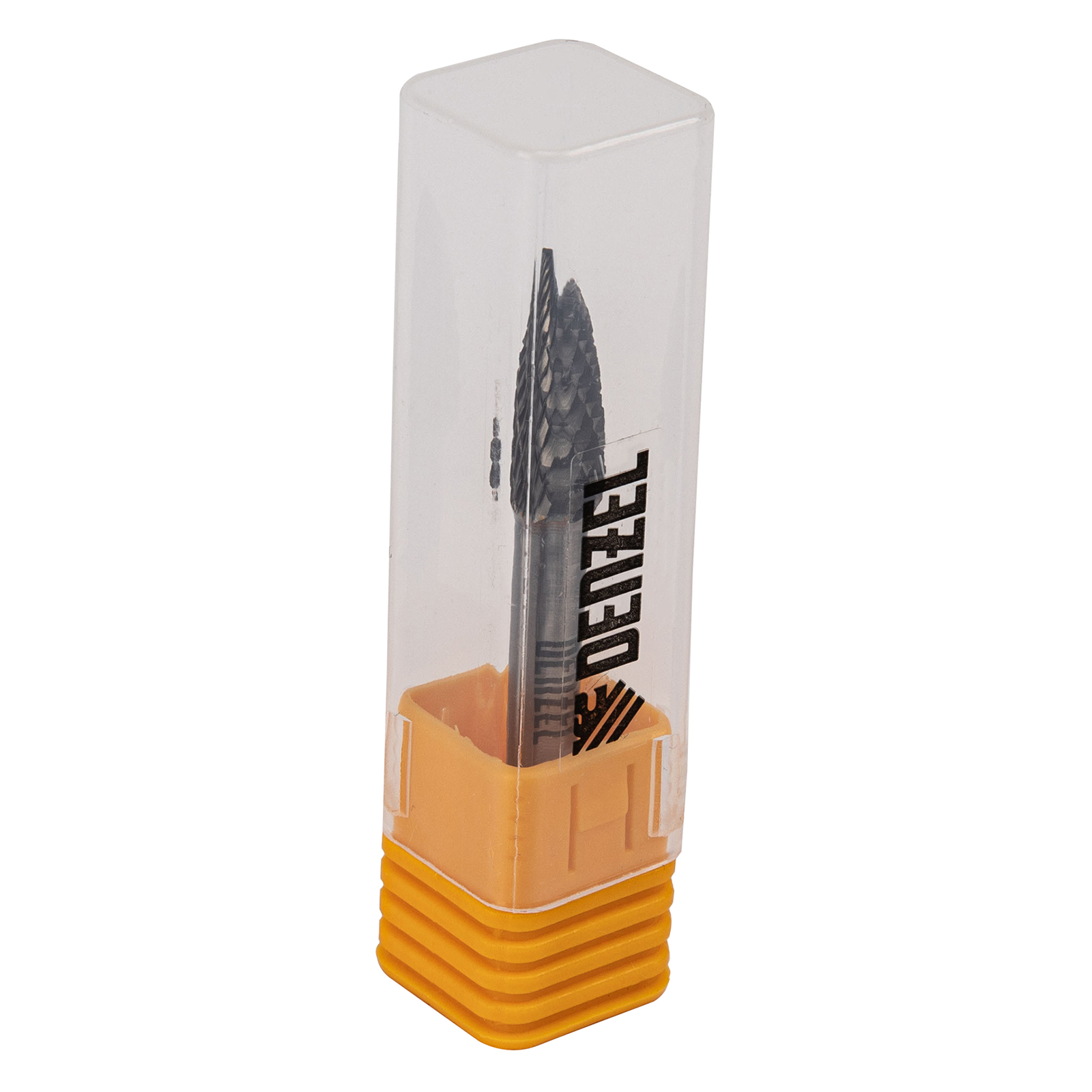 Твердосплавная борфреза по металлу Denzel 72047 с параболической заостренной рабочей частью (тип G), диаметром 8 мм, — оснастка для дрели и прямошлифовальной машины. Предназначена для выполнения работ по закаленной и нержавеющей стали, чугуну, бронзе, меди, латуни, титану. Также позволяет обрабатывать искусственный камень и металлокерамику. Заостренная режущая часть оптимальна для шлифовки радиусных поверхностей сложной формы, удаления заусенцев в узких отверстиях, формирования точных углов.