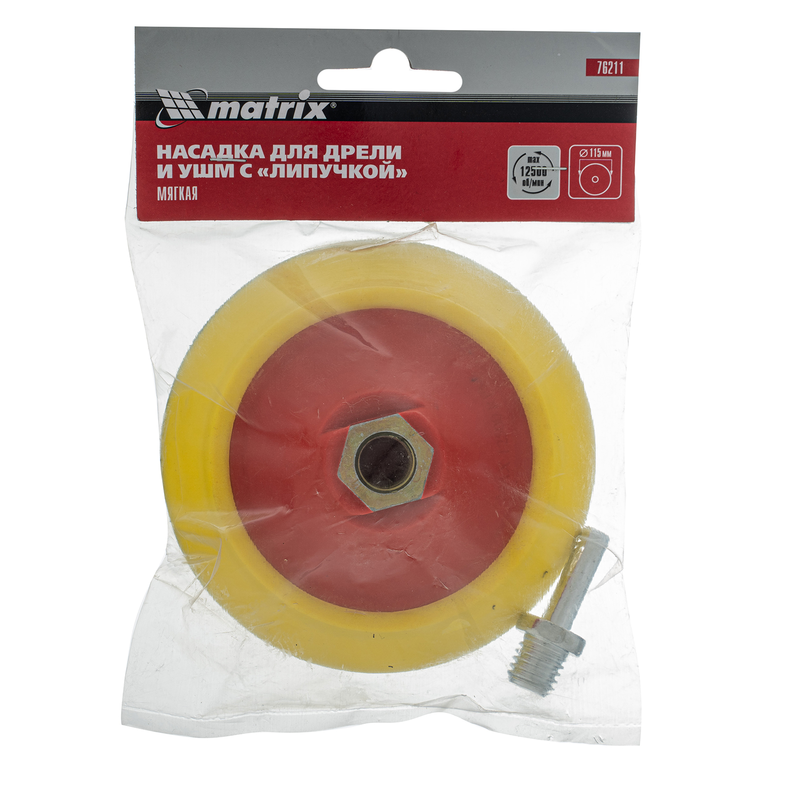 Мягкая насадка для дрели и УШМ с «липучкой» Matrix 76211 диаметром 115 мм устанавливается на дрель или болгарку с максимальной частотой вращения 12500 об/мин. Предназначена для фиксации полировальных и абразивных кругов с креплением под «липучку». Благодаря демпферной вставке из мягкого полиуретана круг плотно прилегает к обрабатываемой поверхности. Насадка используется для проведения шлифовальных и полировальных работ.