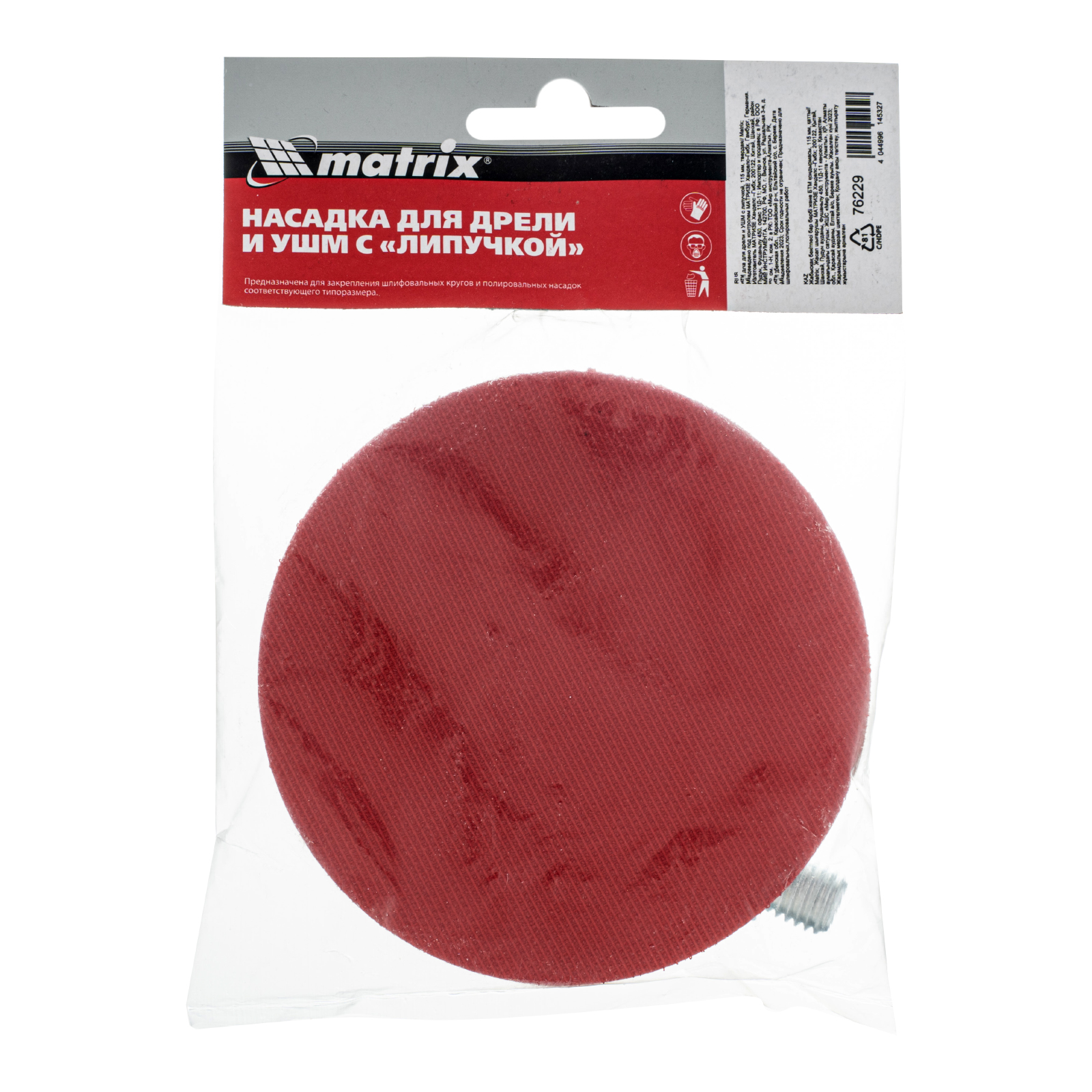 Твердая насадка для дрели и УШМ Matrix 76229 диаметром 115 мм, с «липучкой», используется совместно с углошлифовальными машинами и дрелями, работающими с частотой вращения до 12500 об/мин. Применяется для шлифовки и полировки металла, древесины и пластика. На опорную тарелку крепится абразивный или полировальный круг с системой фиксации velcro. Насадка изготовлена из прочного полипропилена и обеспечивает высокую производительность во время черновой обработки.